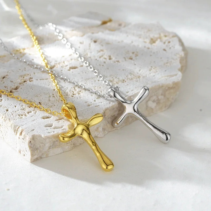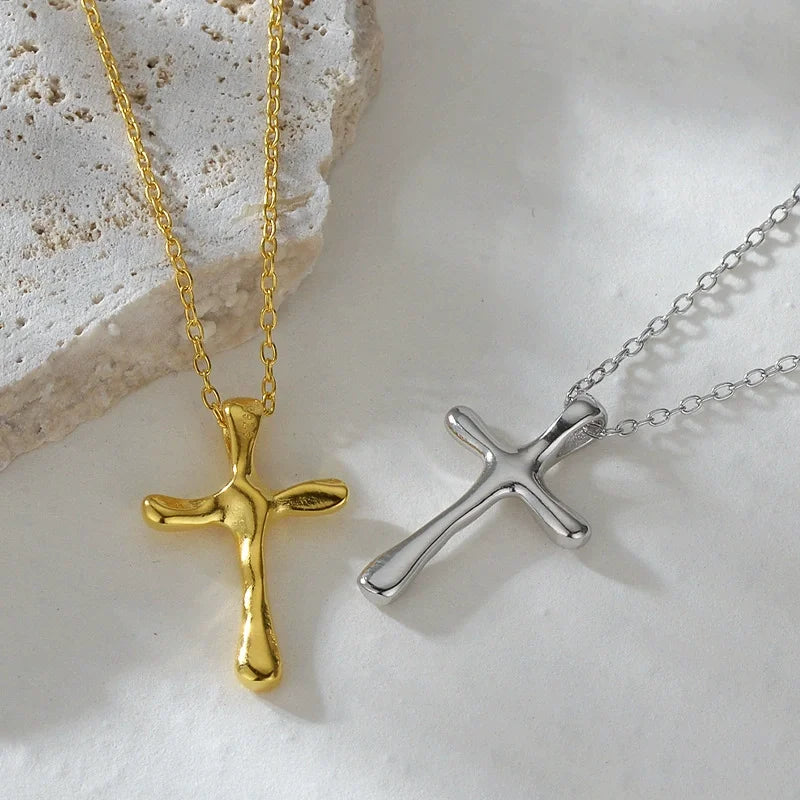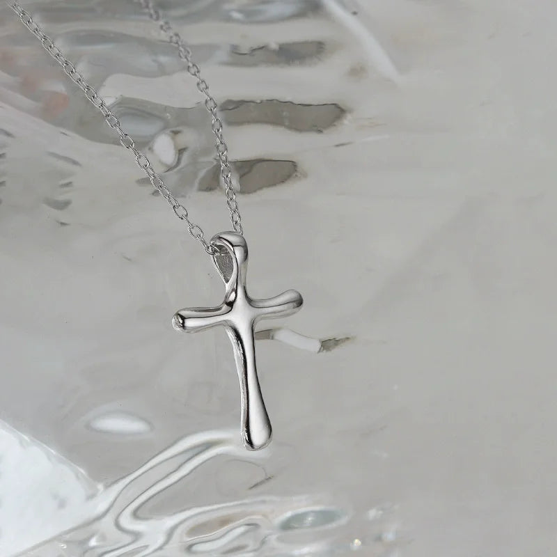 Minimalist 925 Sterling Silver Hammered Cross Pendant Necklace for Men & Women Simple Unisex Religious Adjustable ChainJewelry