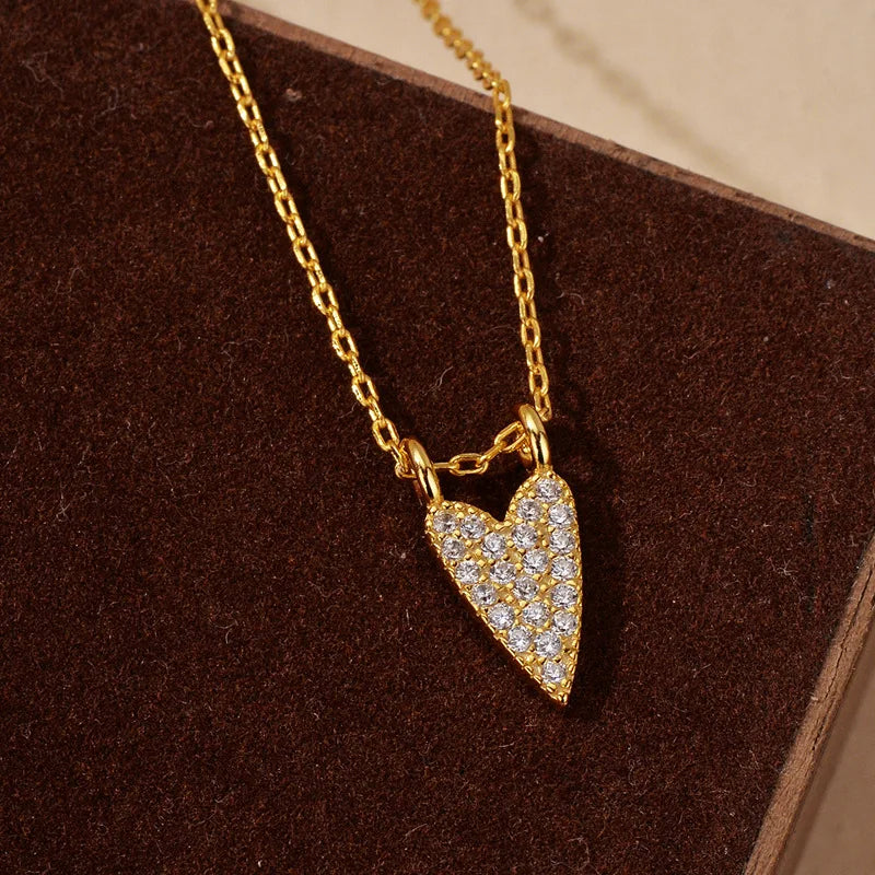 Fashion Fine Jewelry S925 Silver Gold Plated Cubic Zirconia Heart Pendant Necklace for Women Gift
