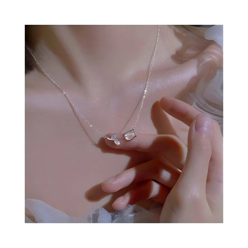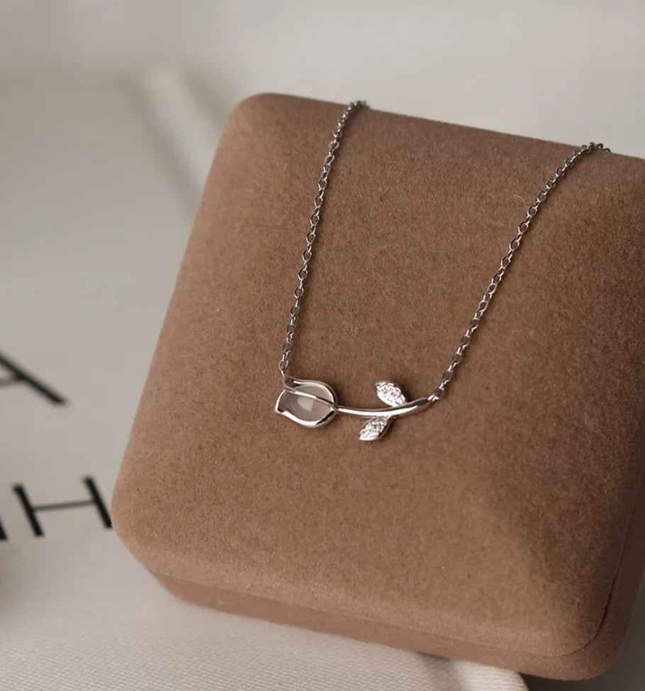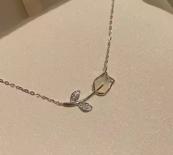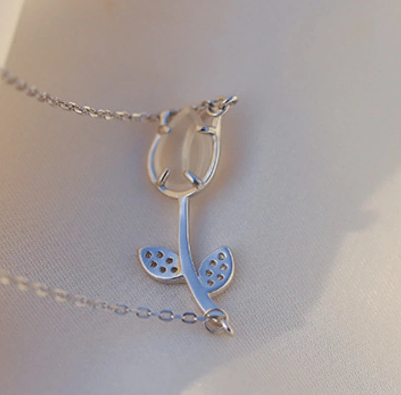 Fashion Tulip Moonstone Necklace High Quality 925 Sterling Silver Necklace Temperament Girl Jewelry Necklace for Dating