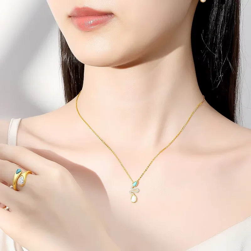 Trendy Gold-plated Opal Turquoise Snake Bracelet 925 Silver Zirconia Women's Fine Jewelry Birthday Gift