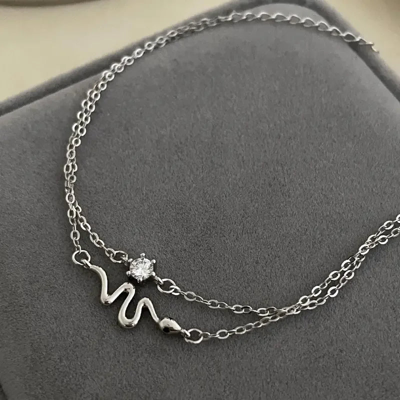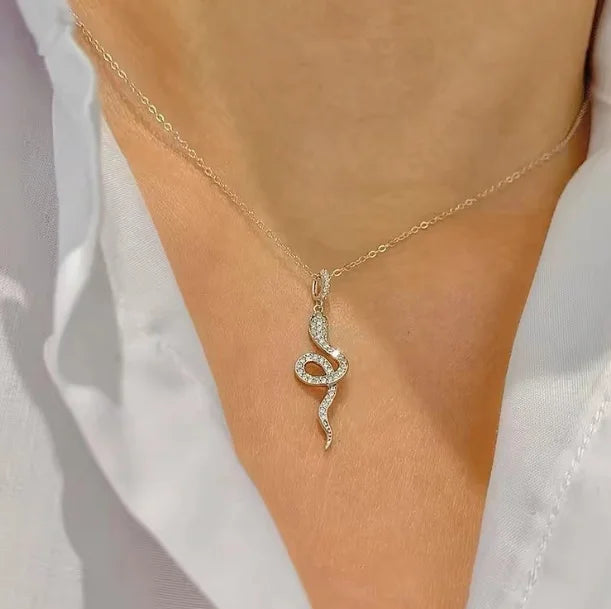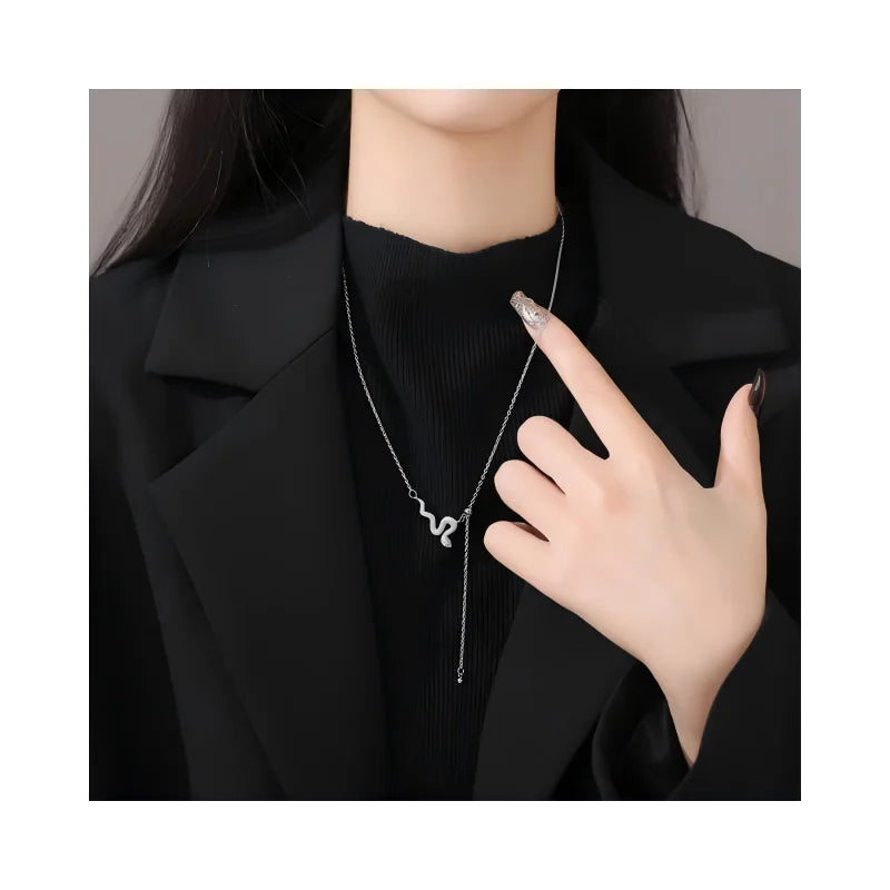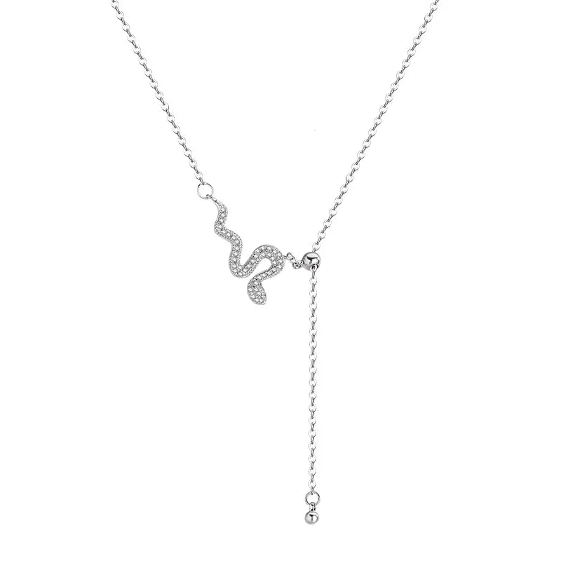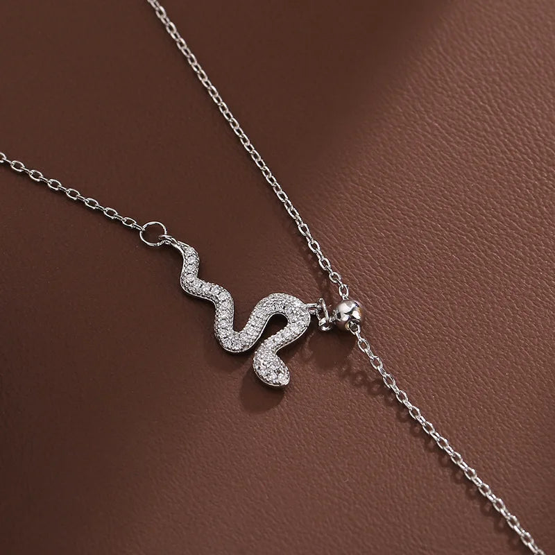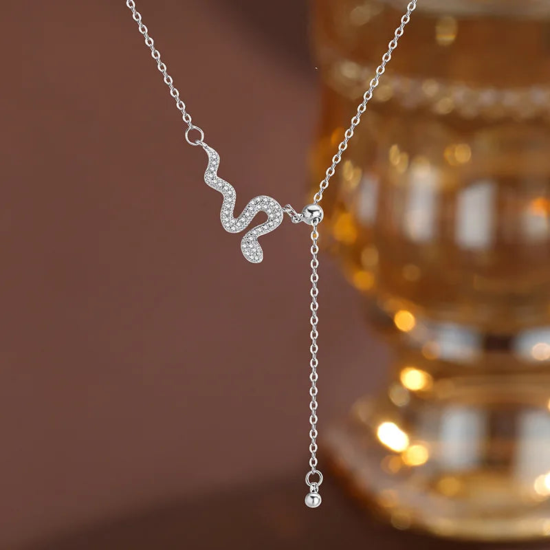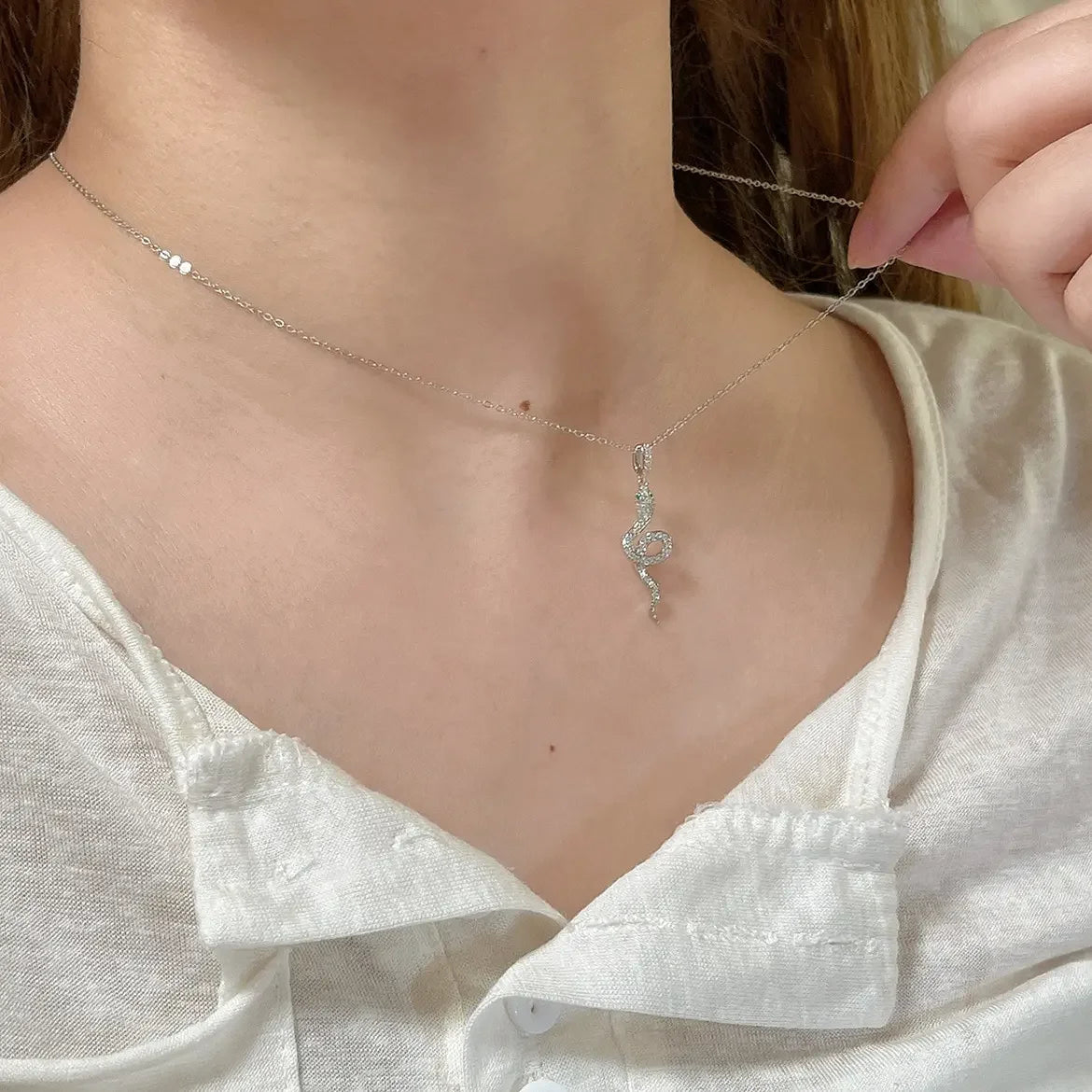 Fashion Personalized 925 Sterling Silver Crystal Diamond Snake Pendant Necklace Elegant Collarbone Chain Ladies Birthday Gift