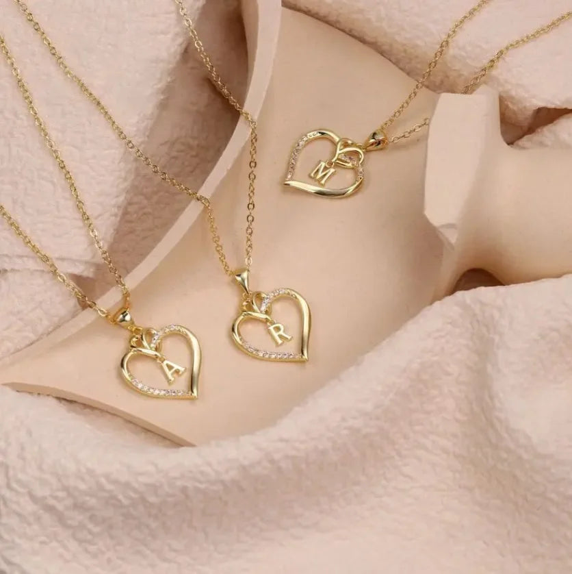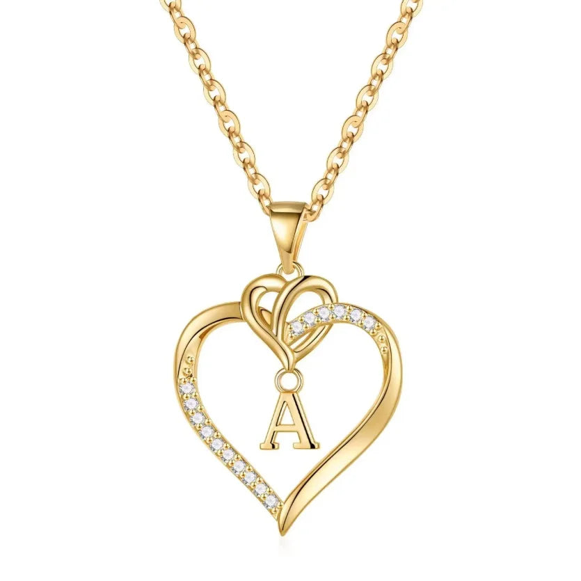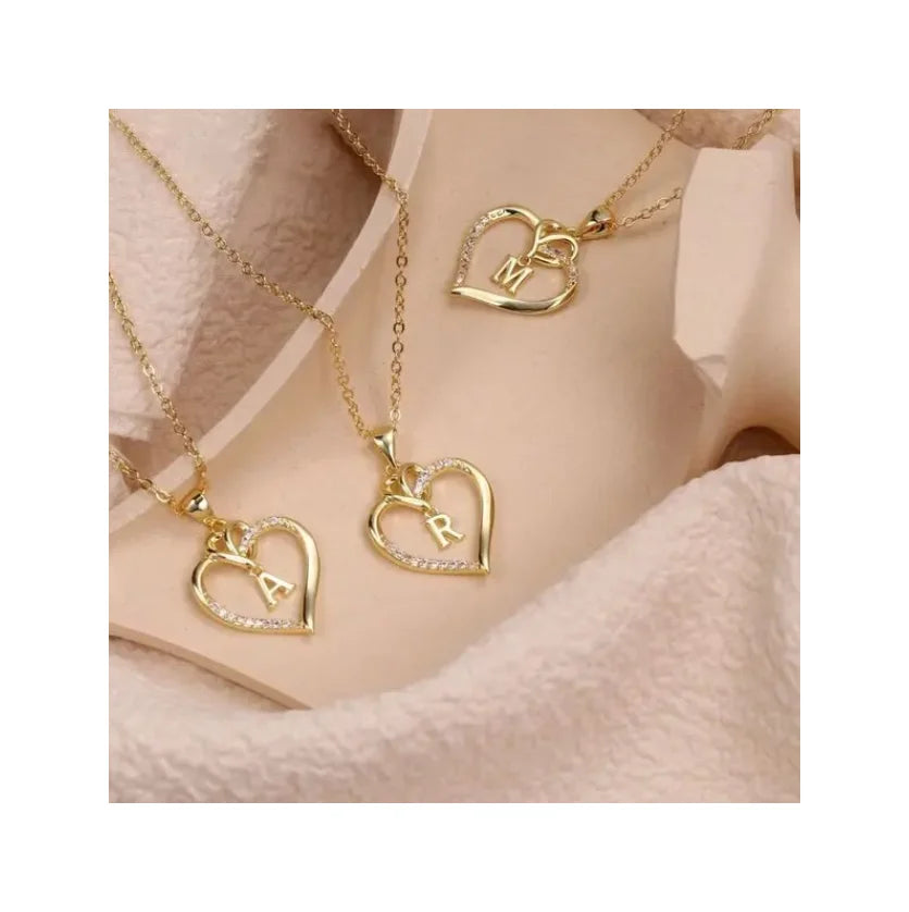 Fashion Cubic Zirconia Gold Plated Necklaces With Alphabet Letters Dainty Sterling Silver Heart Pendant Necklace Women's Jewelry