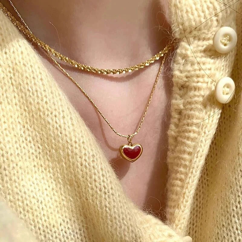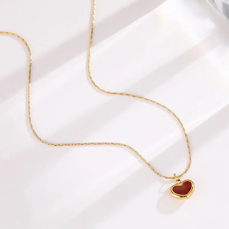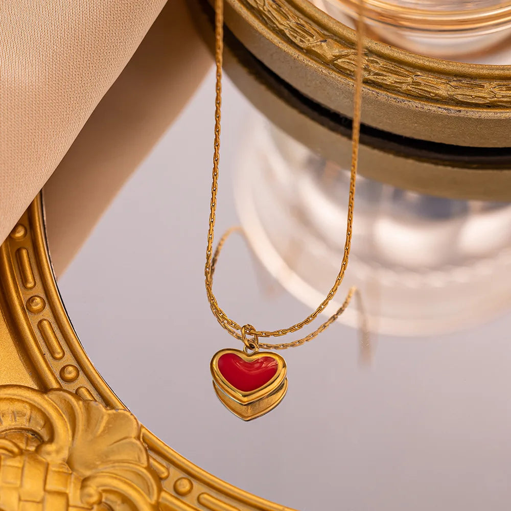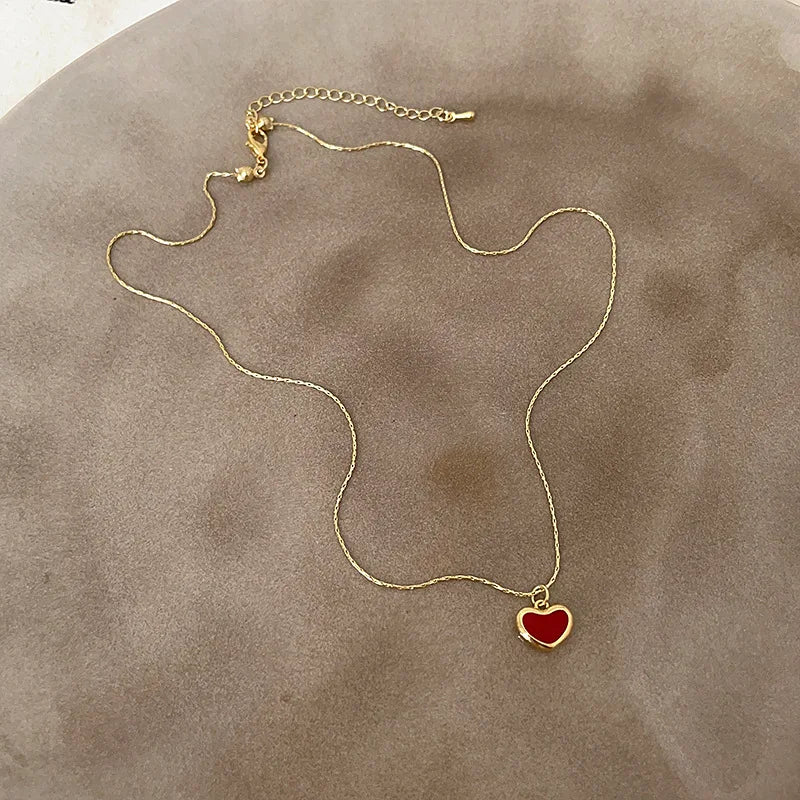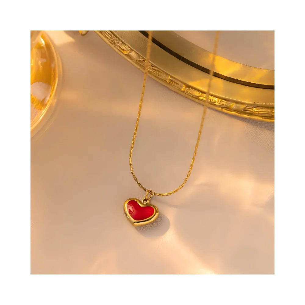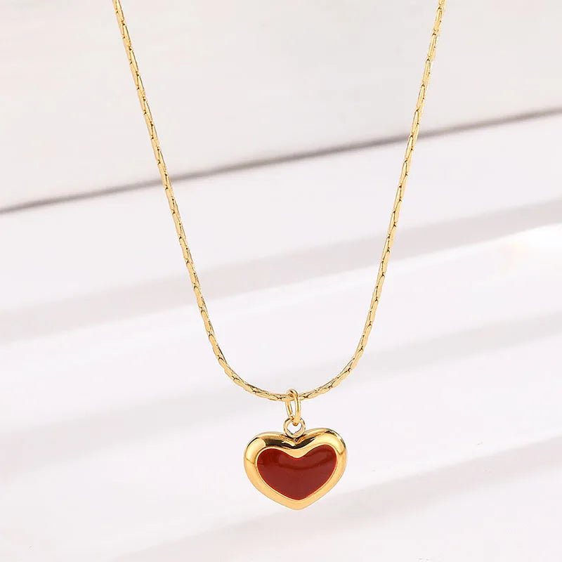 High Quality Love Titanium Steel Necklace Gold Chain Red Heart Necklace for Women Valentine Day Gift