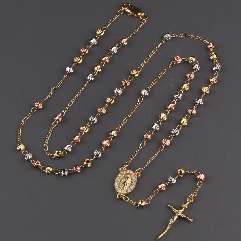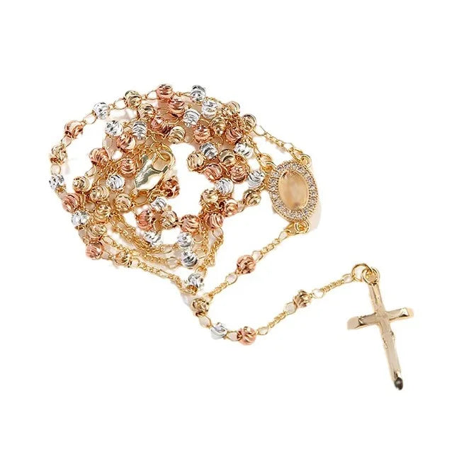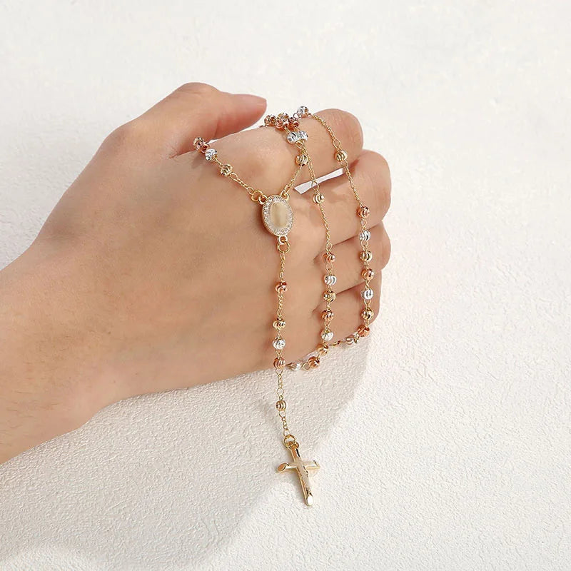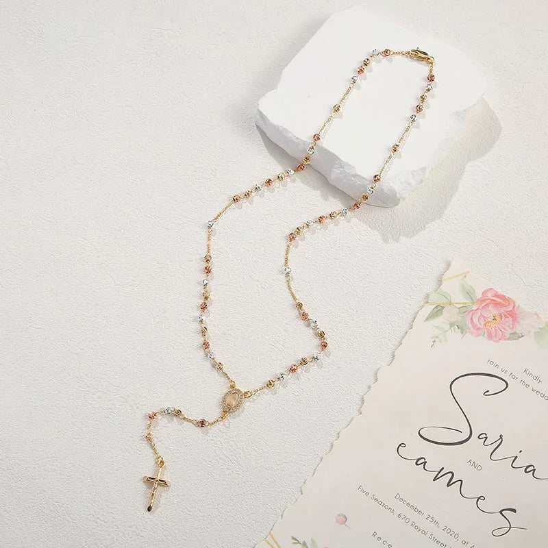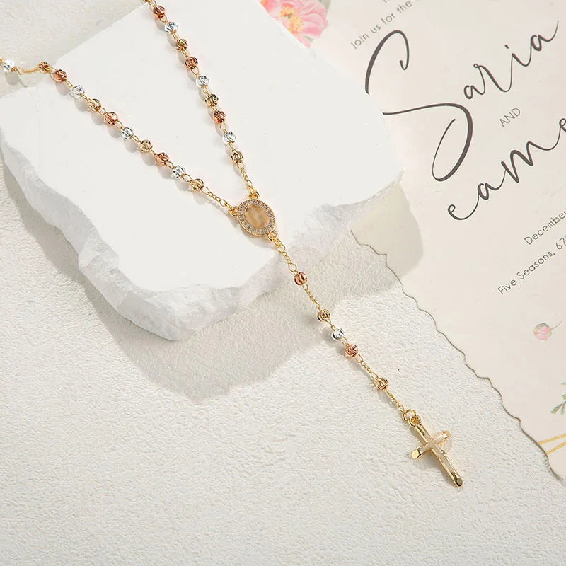 Faithful Fashion Tricolor Virgin Mary Necklace 14K Gold Plated Religious Jewelry for Women