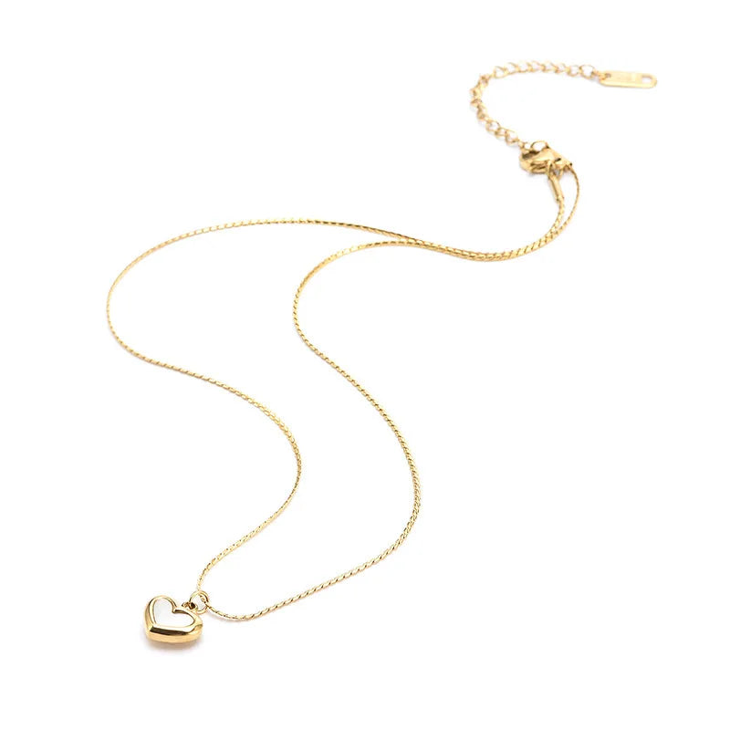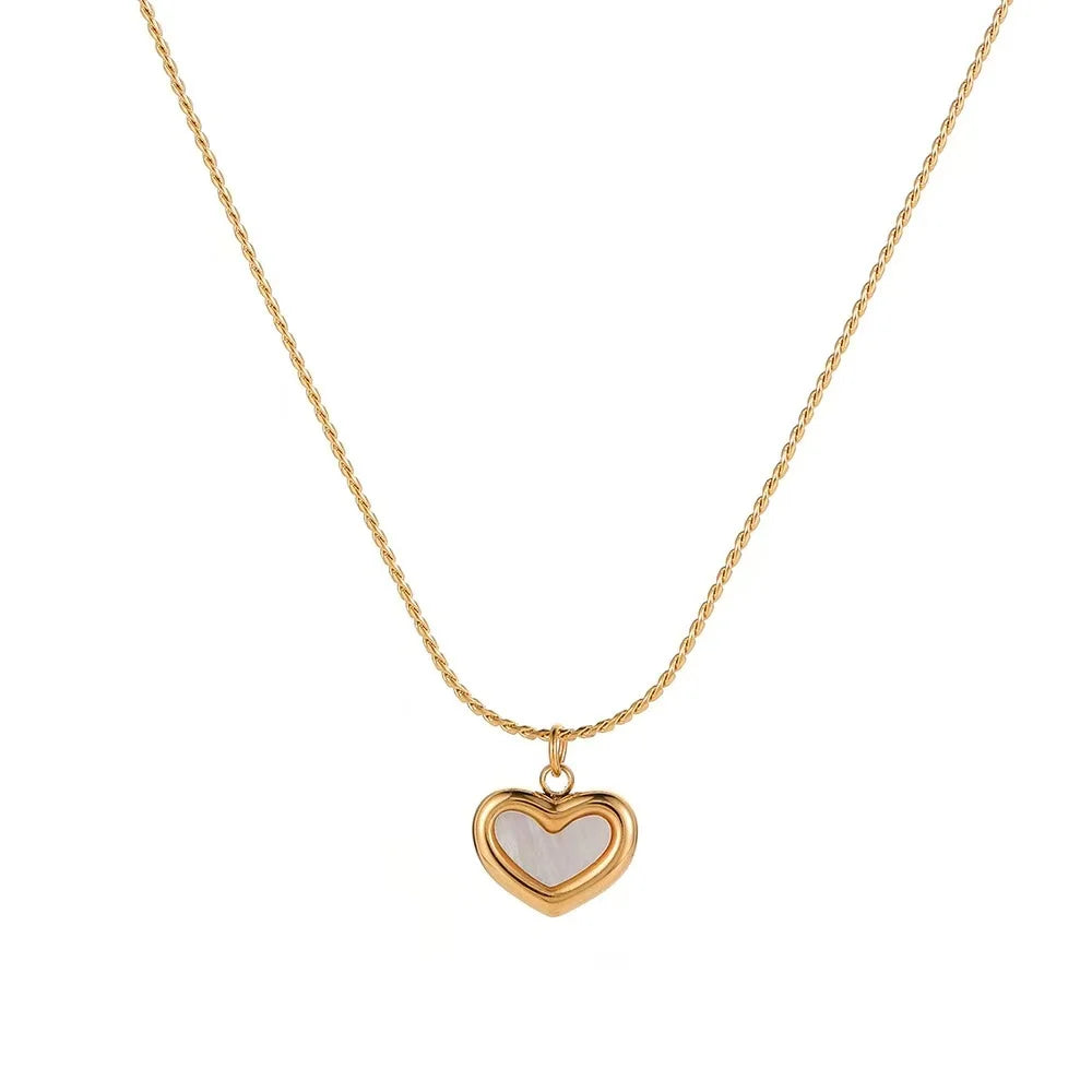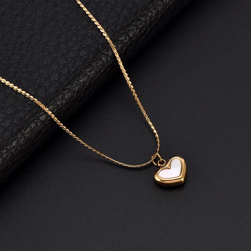 18K Gold Plated Emerald Heart Pendant Necklace Vintage Stainless Steel Shell Heart Pendant Necklace Jewelry for Woman