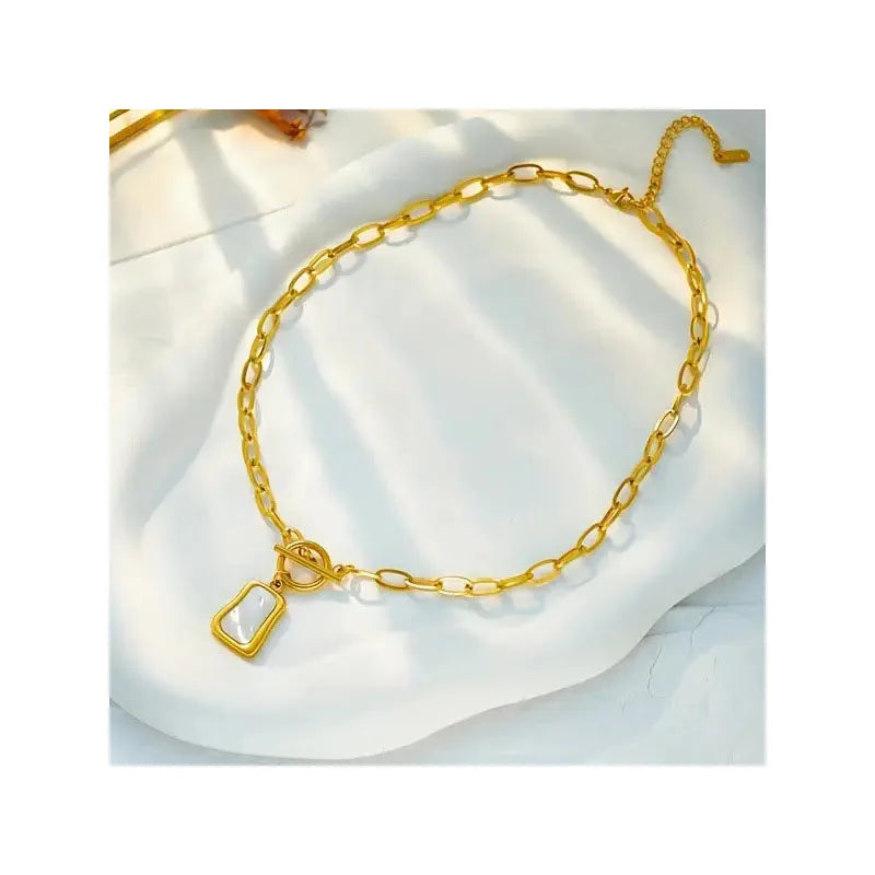 Edelstahl Schmuck 18k Gold Plated Pendant Necklace Fashion Geometric Trapezoidal Pearl Chain Necklace for Woman