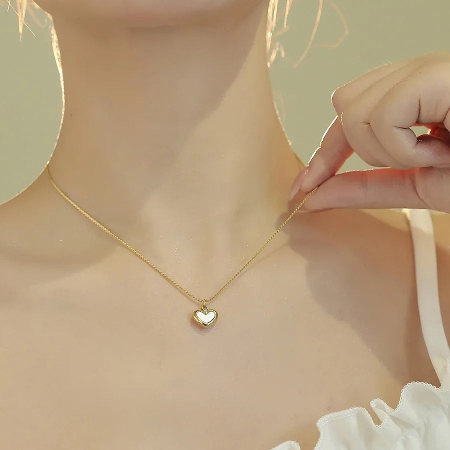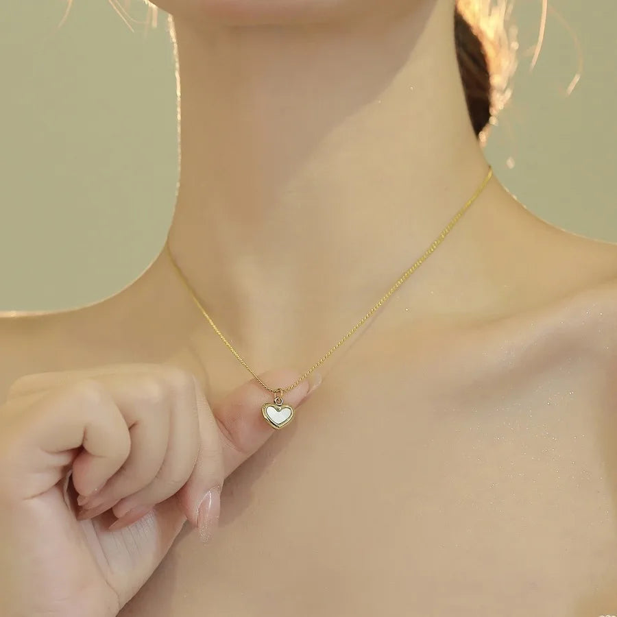 High Quality Love Titanium Steel Necklace Gold Chain White Heart Enamel Necklace for Women Valentine Day Gift