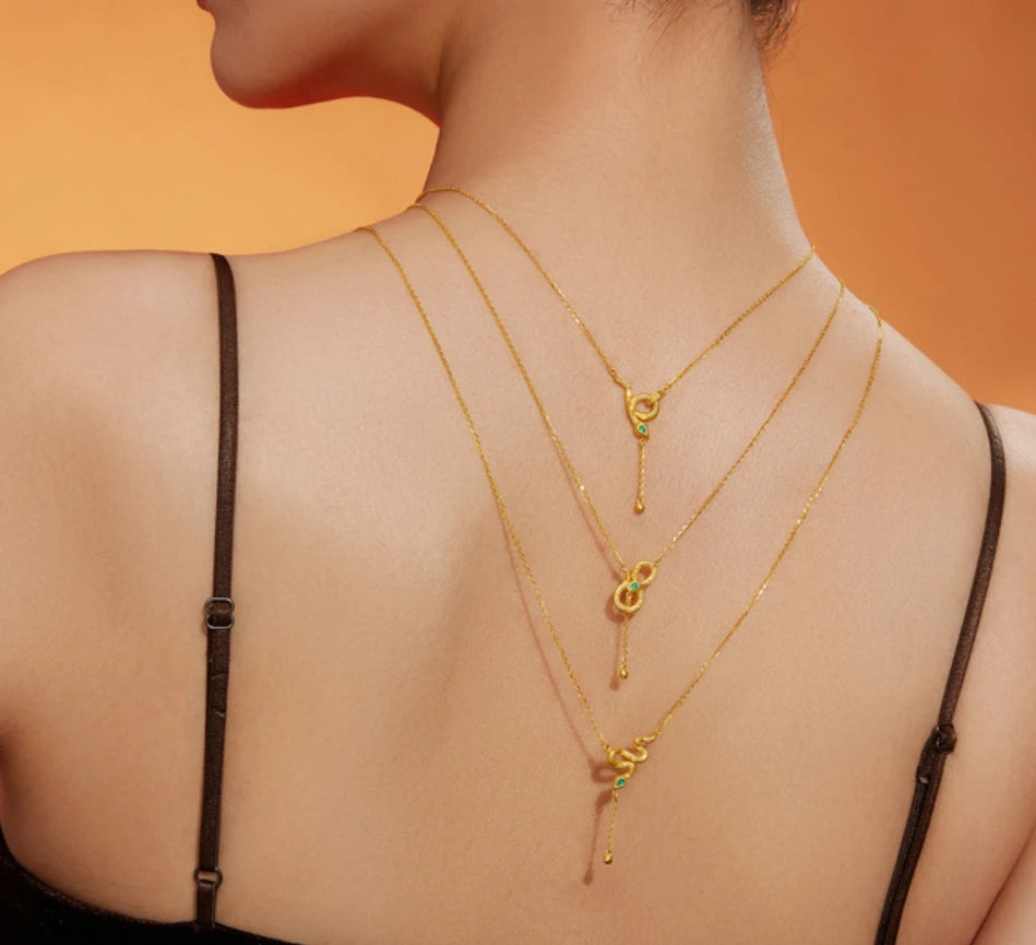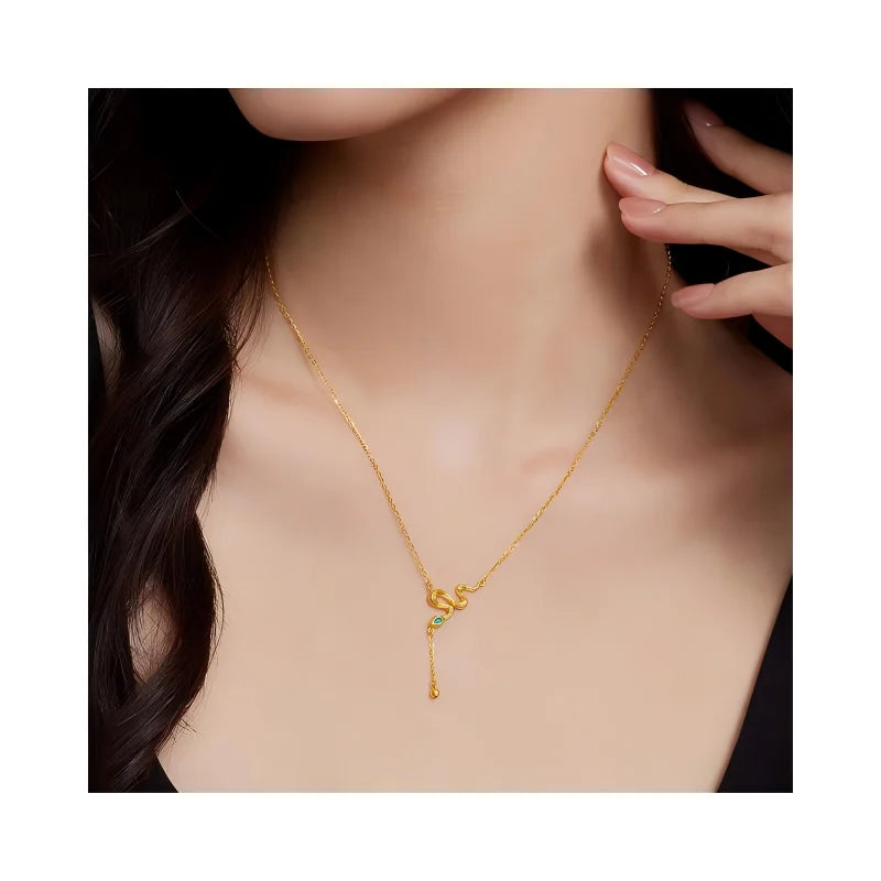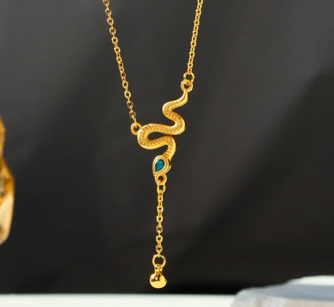 Luxury Fashion Gold Spirit Snake Pendant Niche Copper Plated Animal Ladies Necklace for New Year Gift