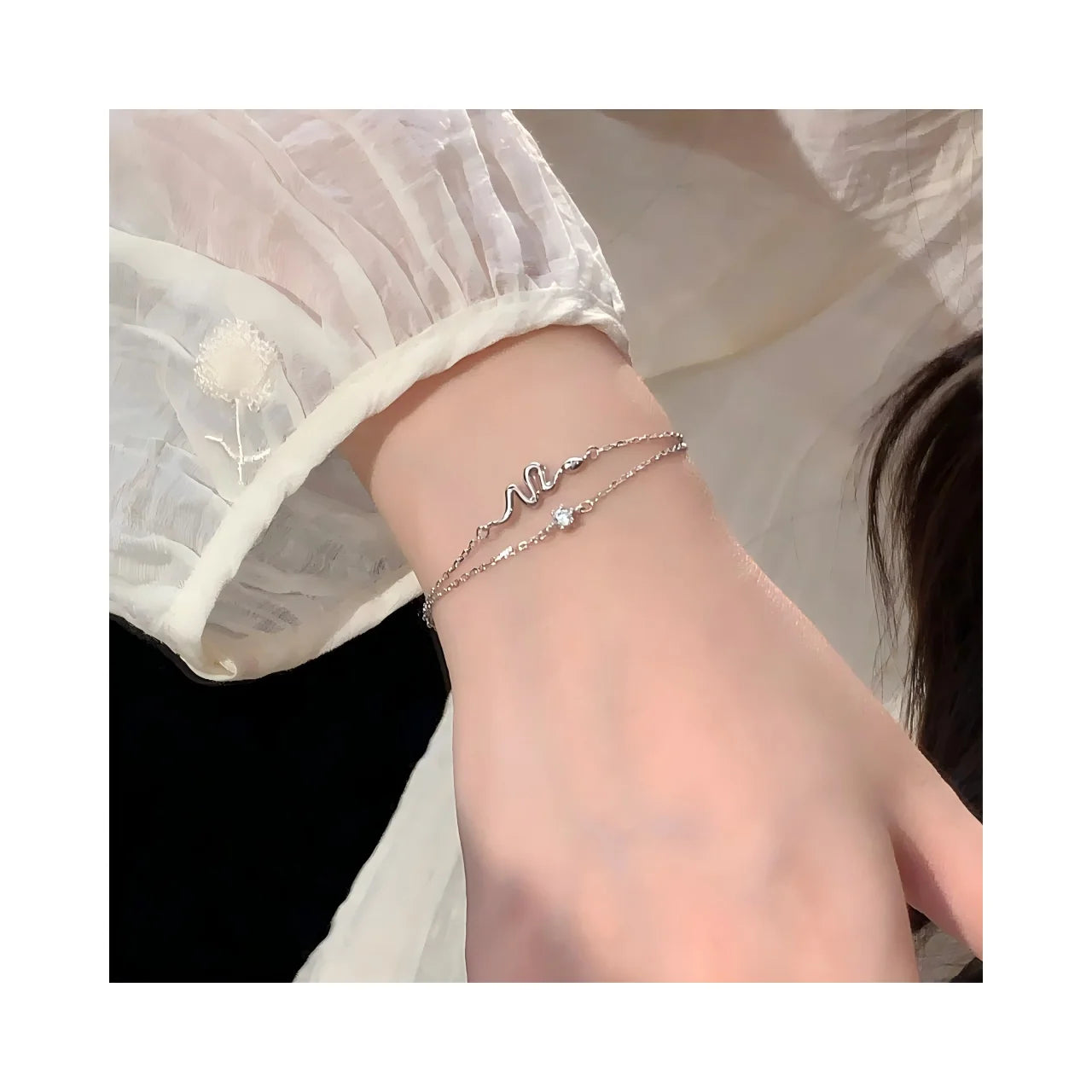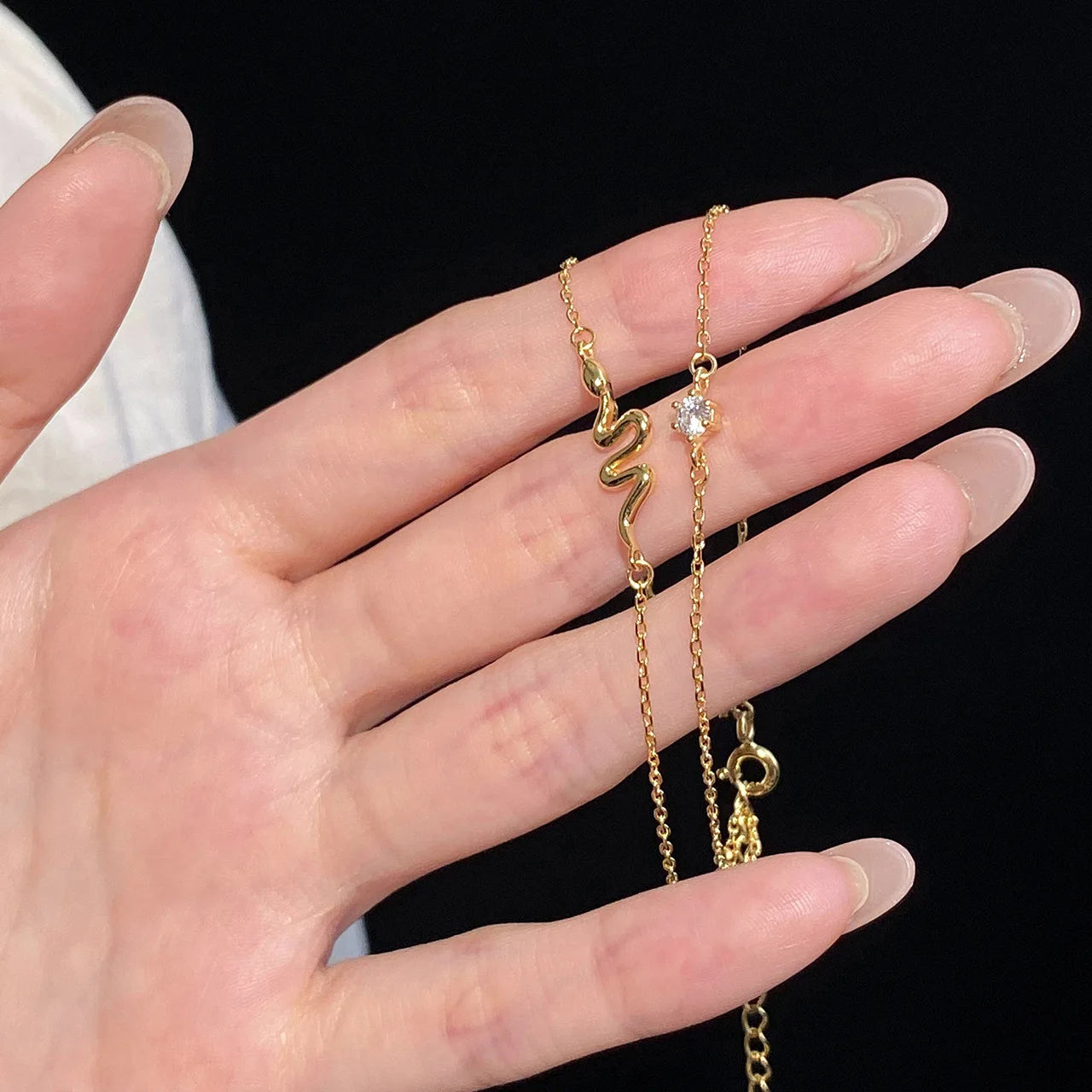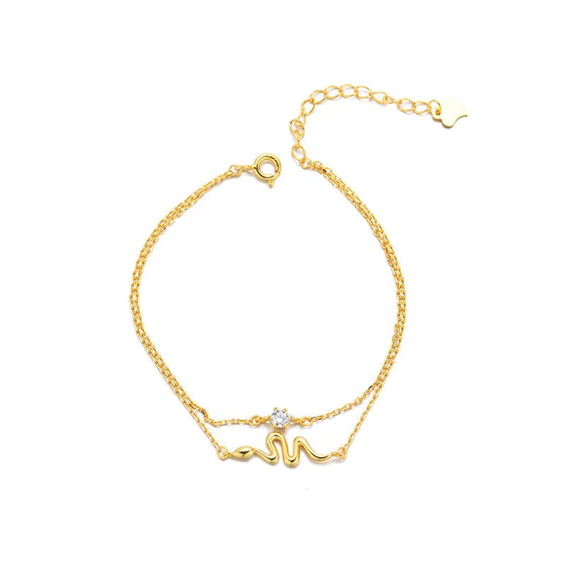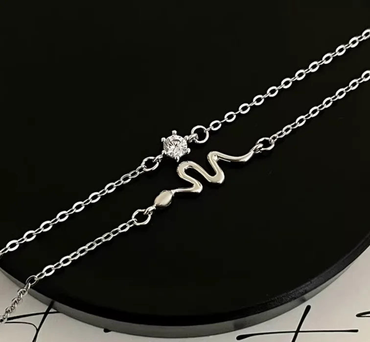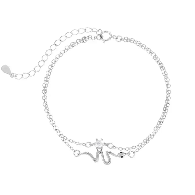 New Wave Snake Double Cross Bracelet 925 Silver Zirconia Animal Bracelet Ladies New Year Gift