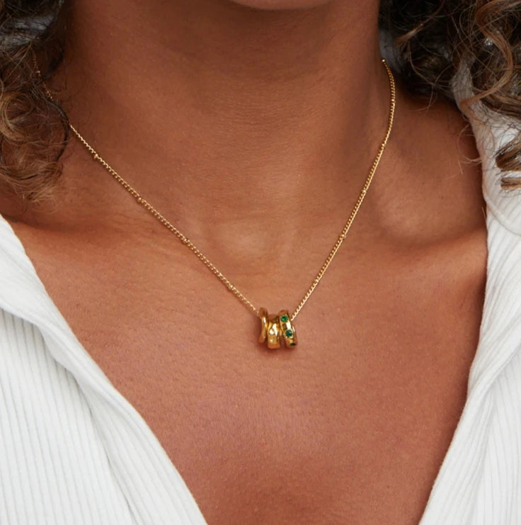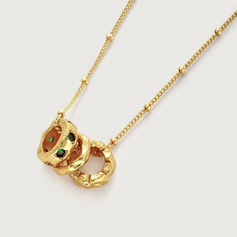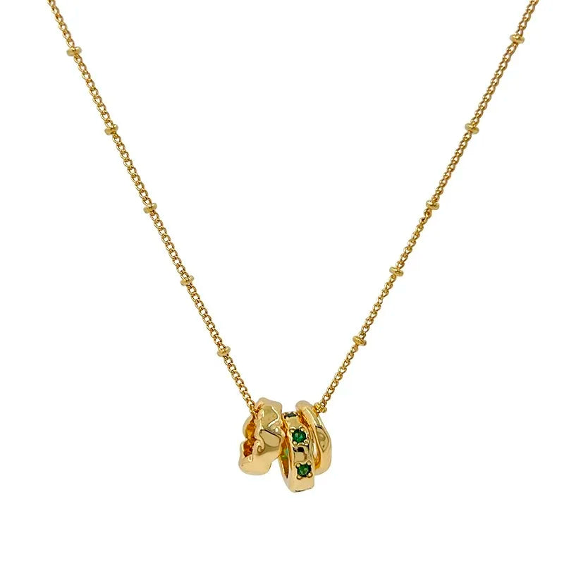 Titanium Steel Inlaid Zircon Pendant Necklace Green Detachable Zircon Ring Charm Necklace Hot Selling Three Ring Buckle Necklace