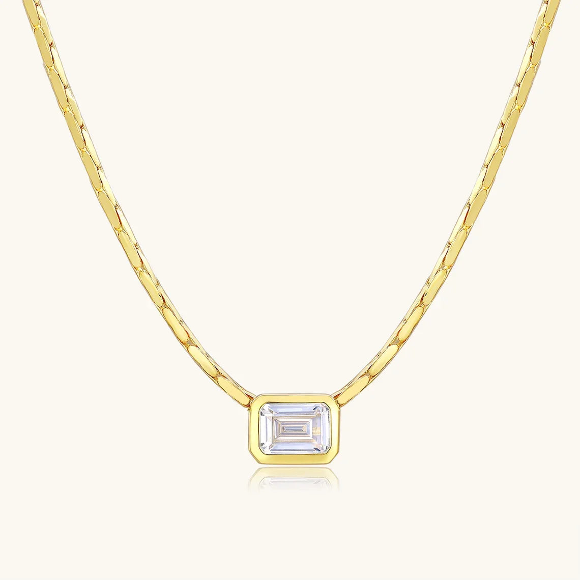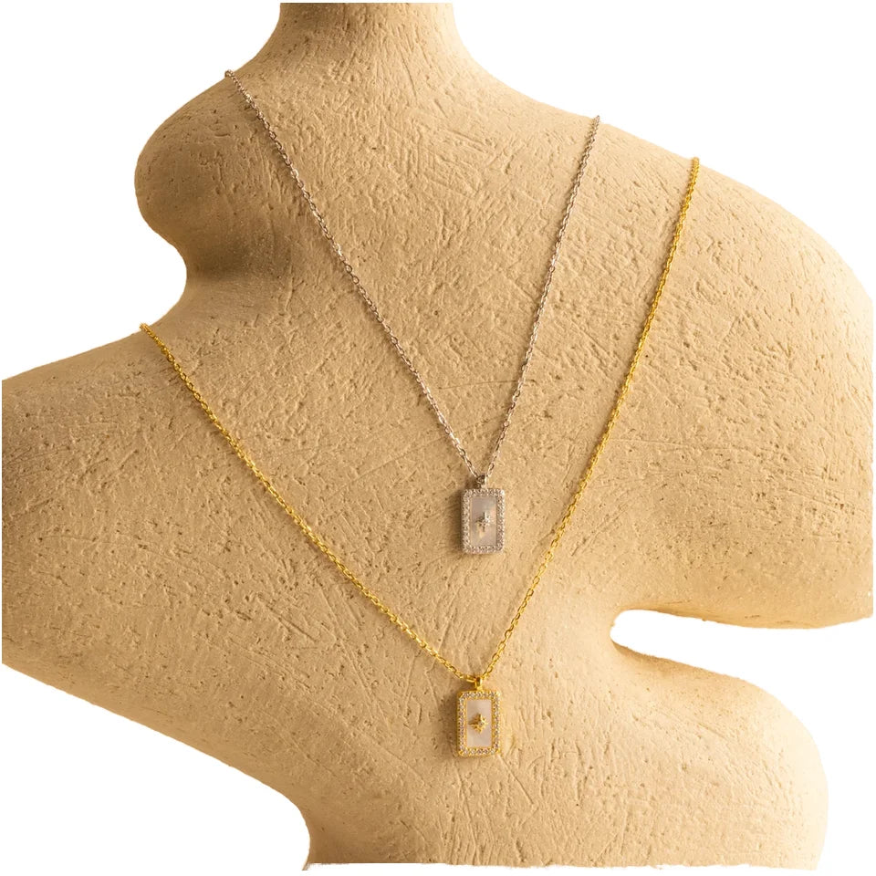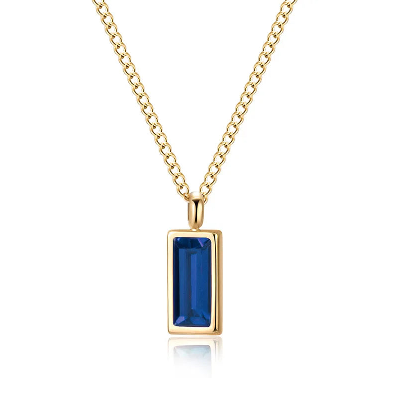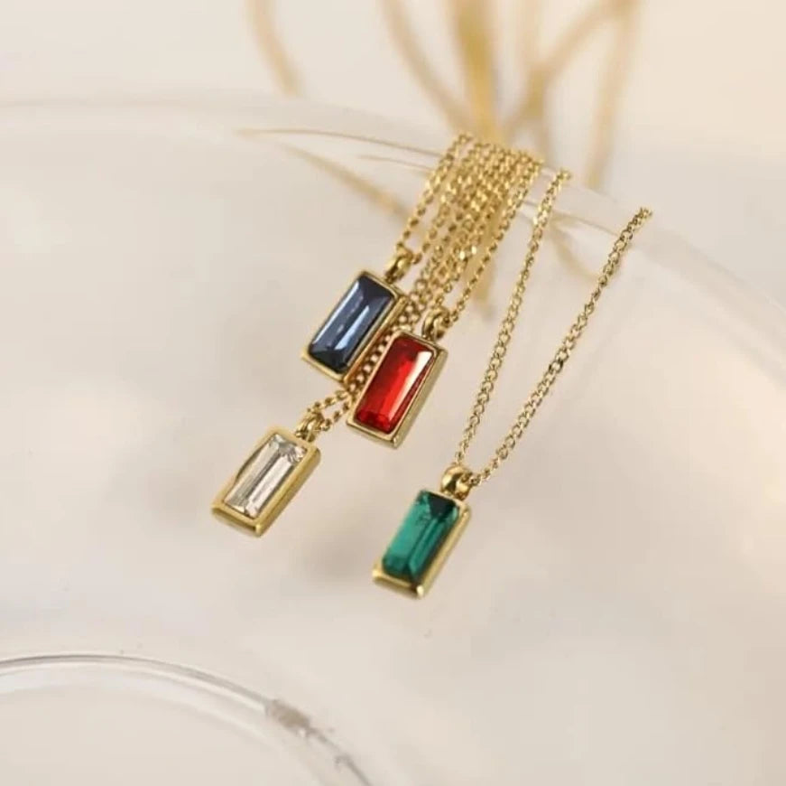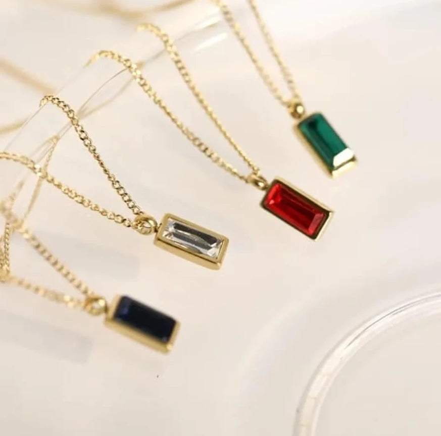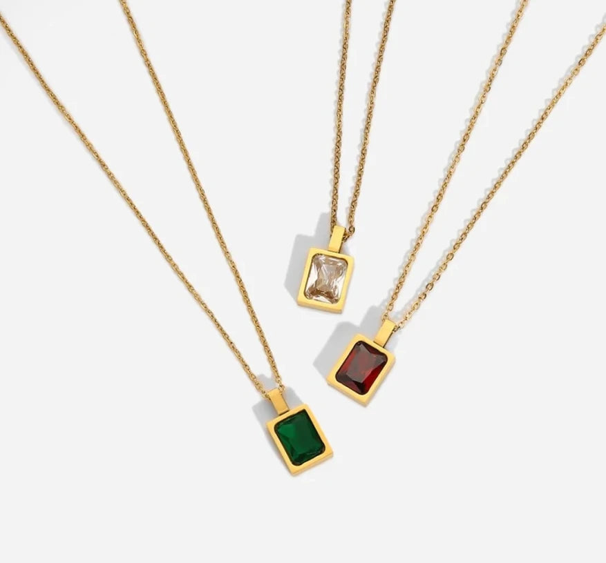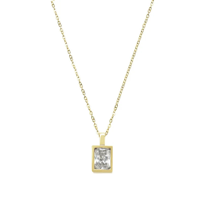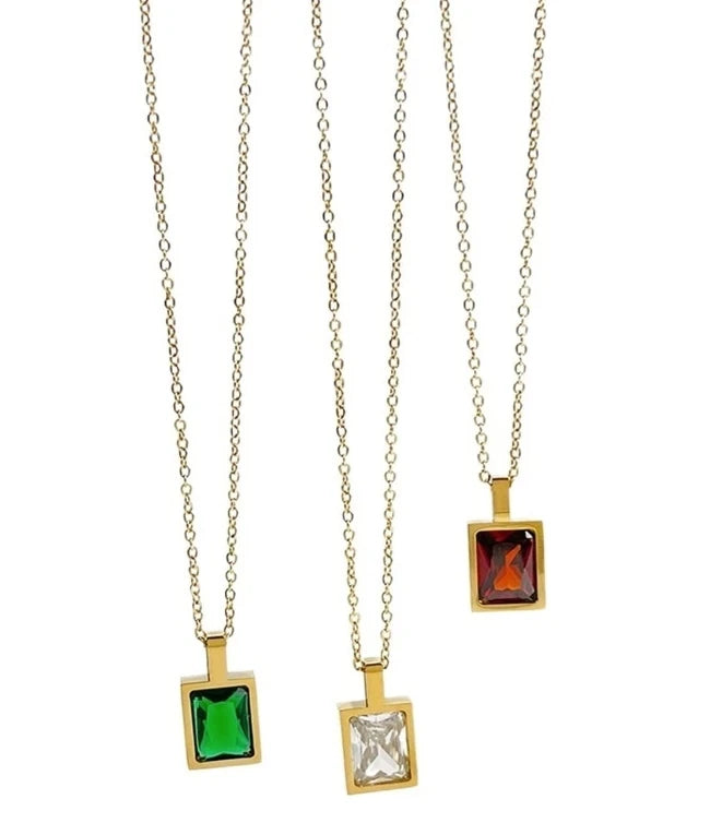 Mini Rectangle Zircon Stone Charm Necklace Stainless Steel Waterproof Gold Plated Fashion Square Pendant Necklace for Women