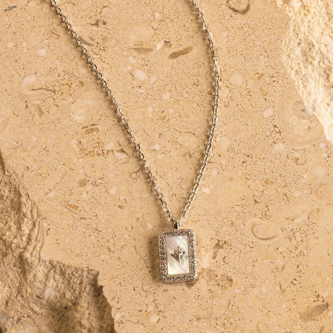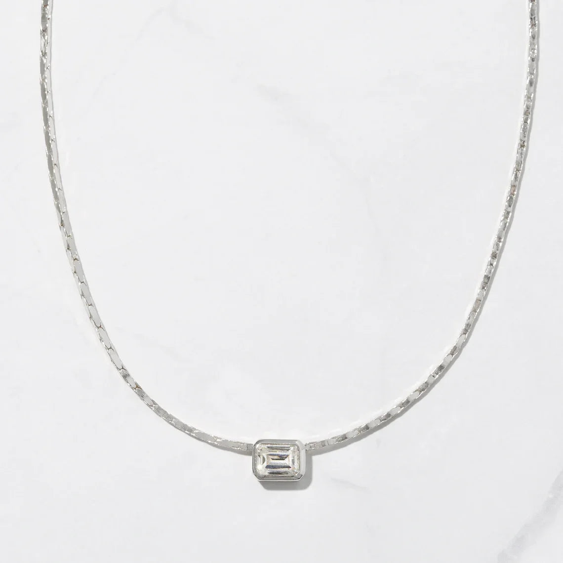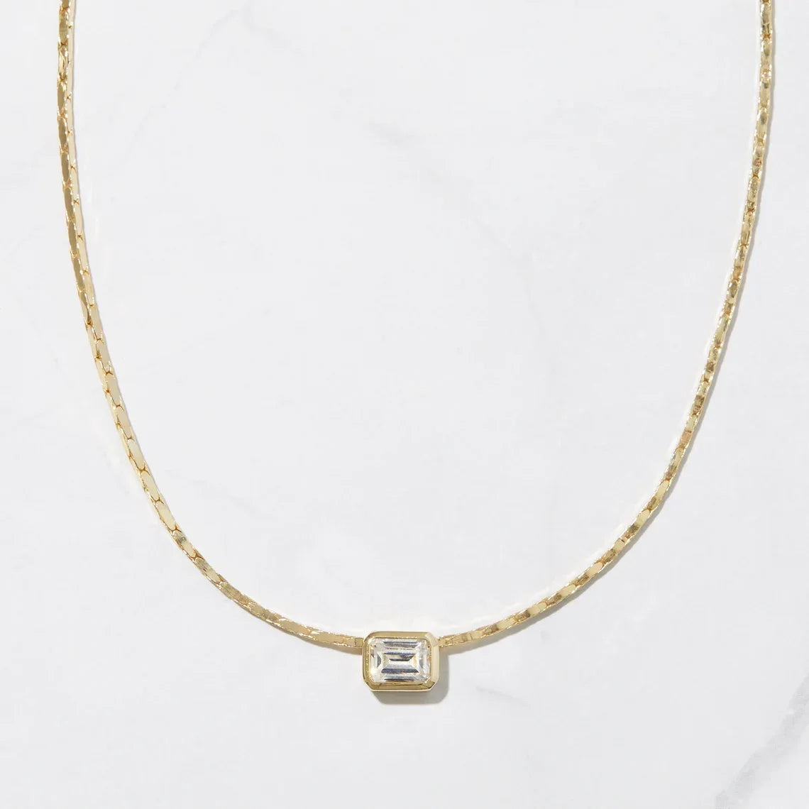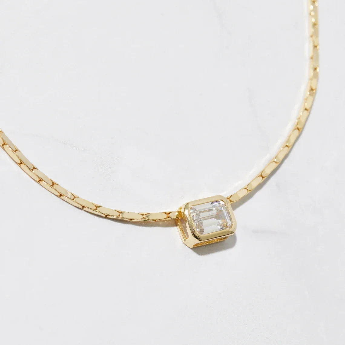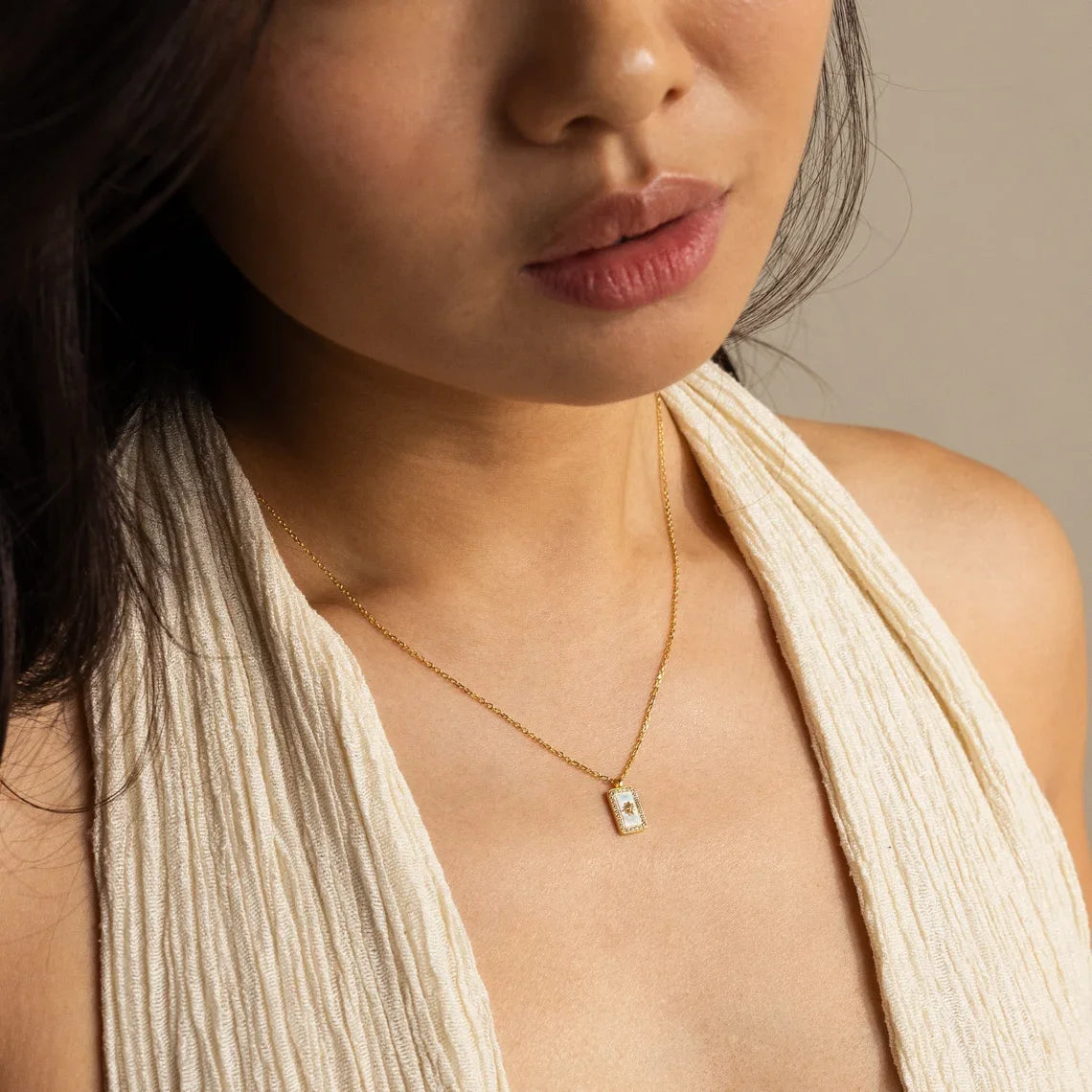 Mini Rectangle Zircon Stone Charm Necklace Stainless Steel Waterproof Gold Plated Fashion Square Pendant Necklace for Women
