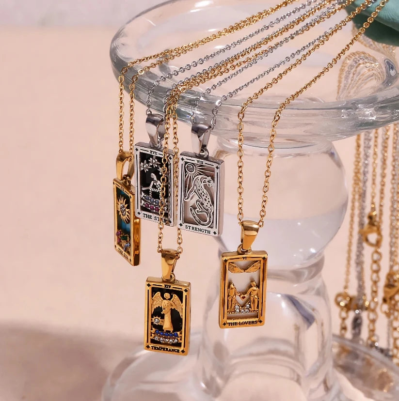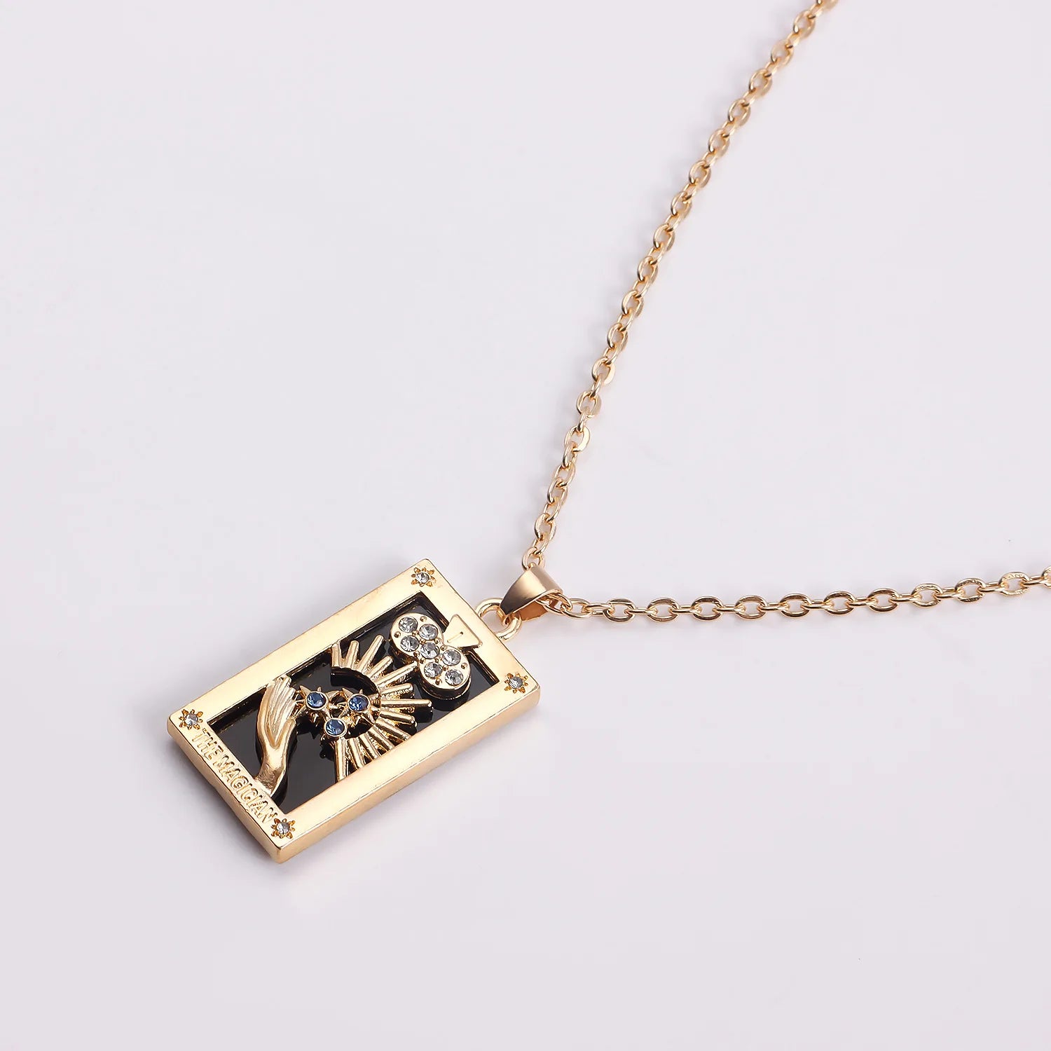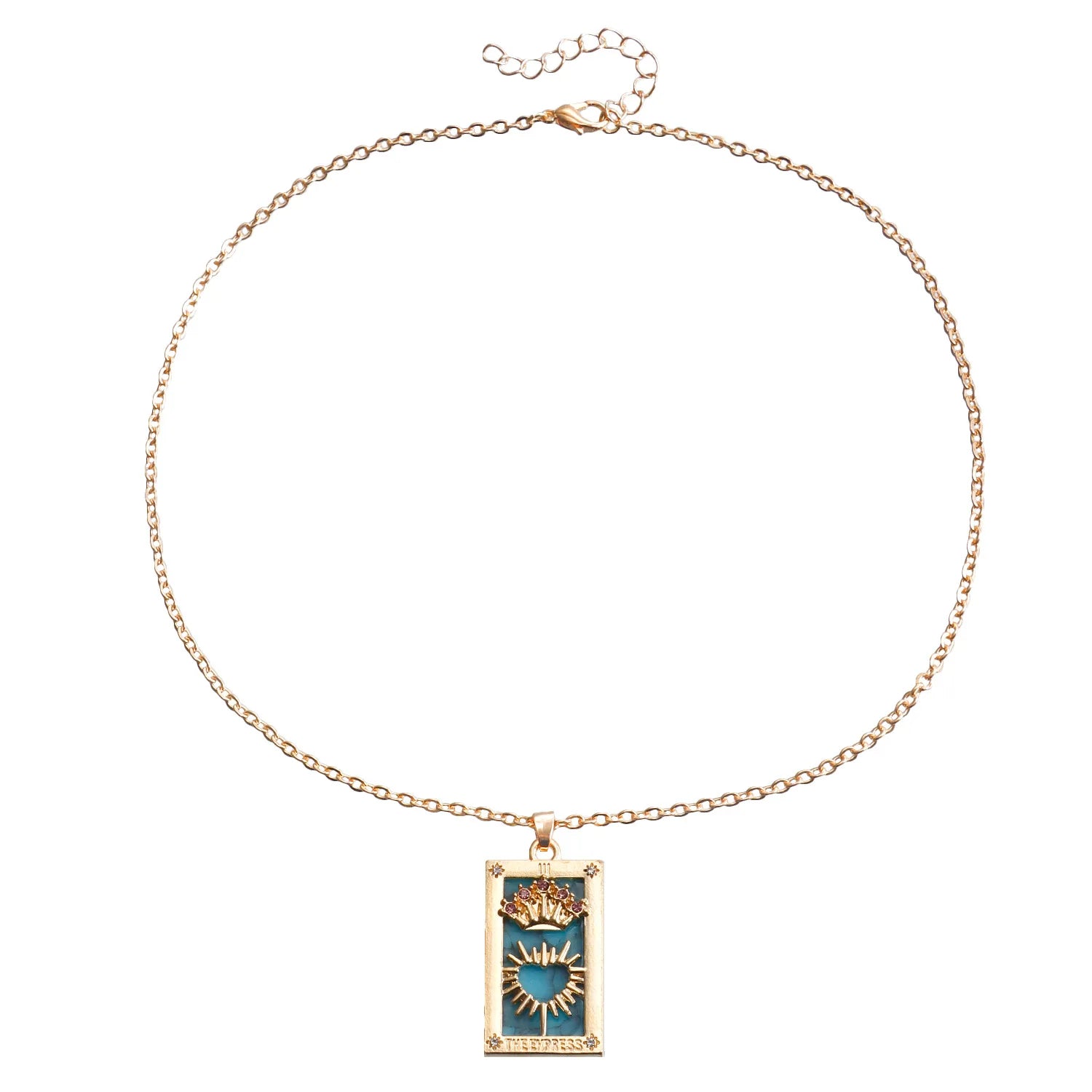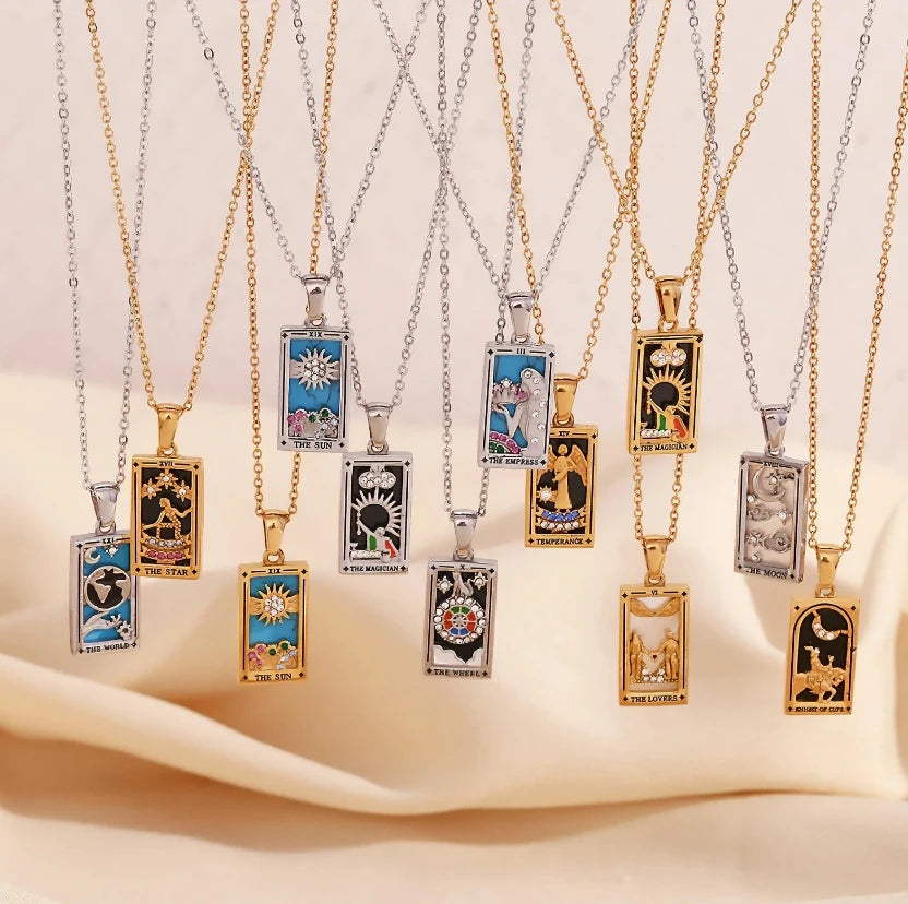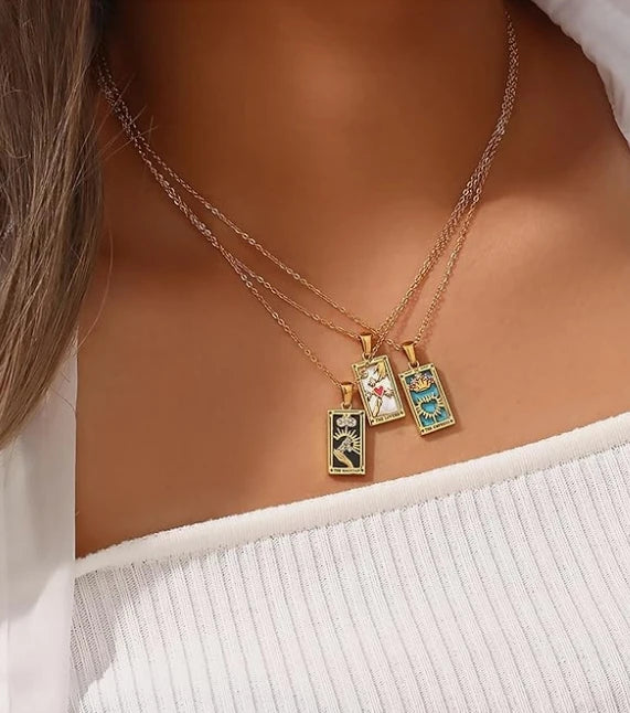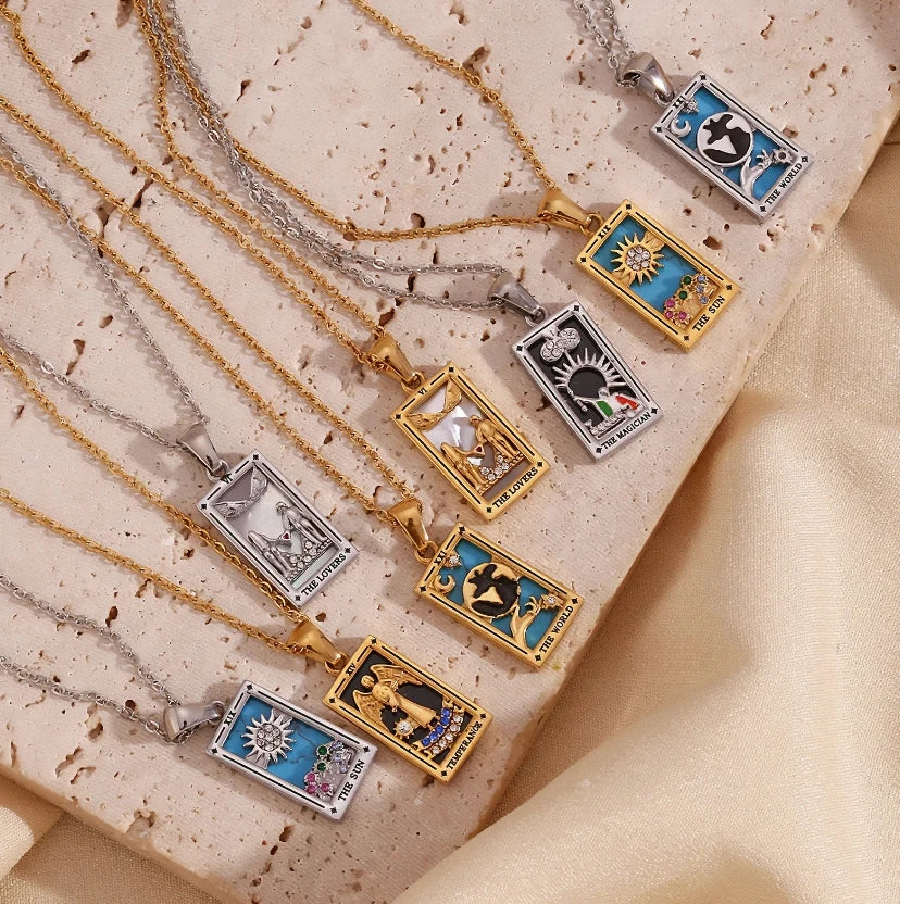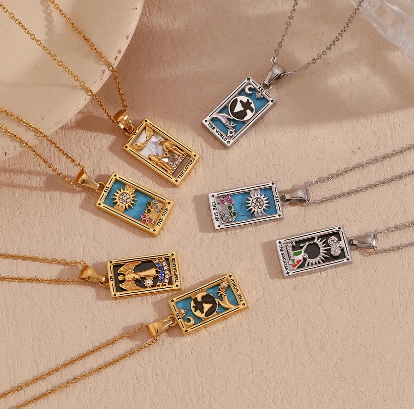 Stainless Steel Alloy Decorative Tarot Card Pendant Necklace Vintage Colorful Charm Necklace Lucky Talisman for Women