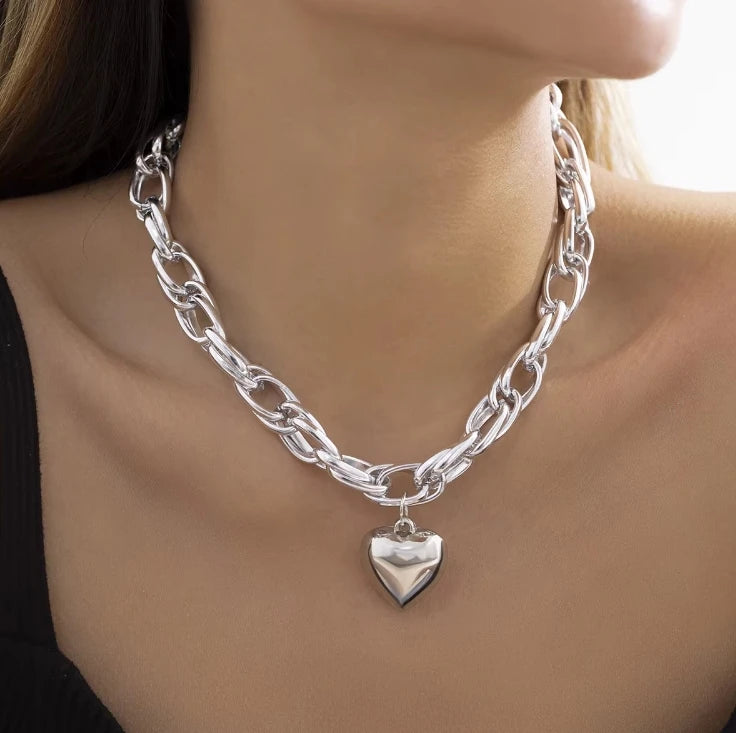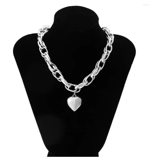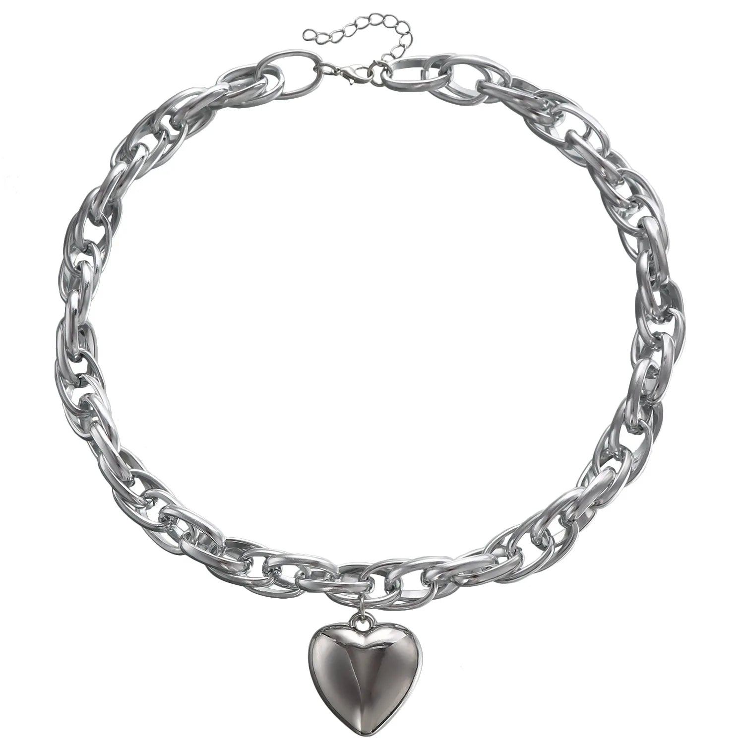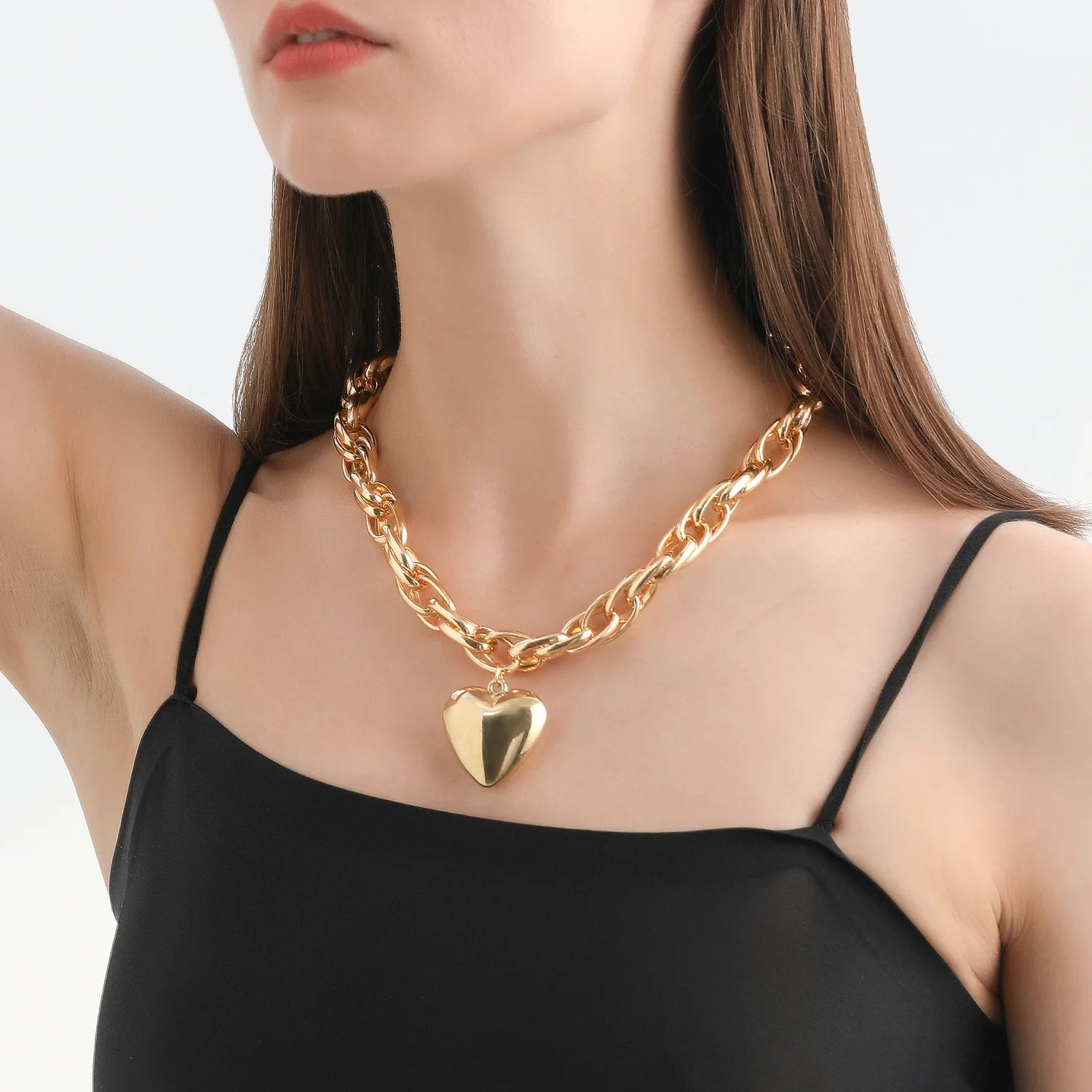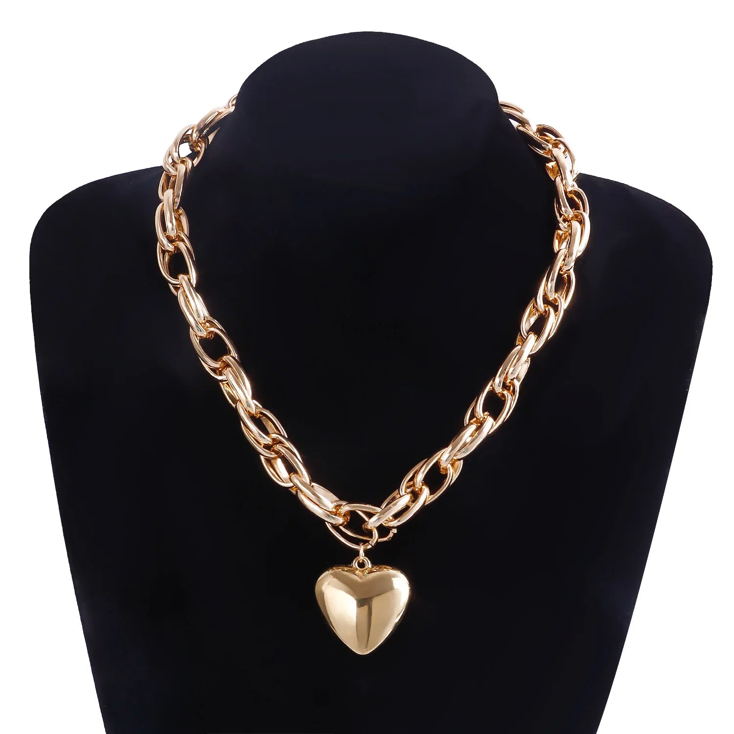 Chunky Gold Heart Pendant Necklaces Unique Punk Cross Chain Necklace Cold Style Hollow Out Thick Statement Chain for Women