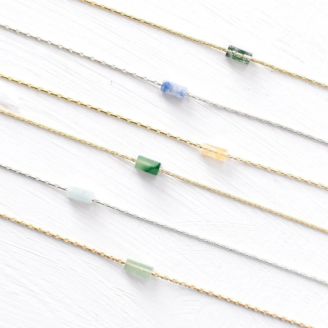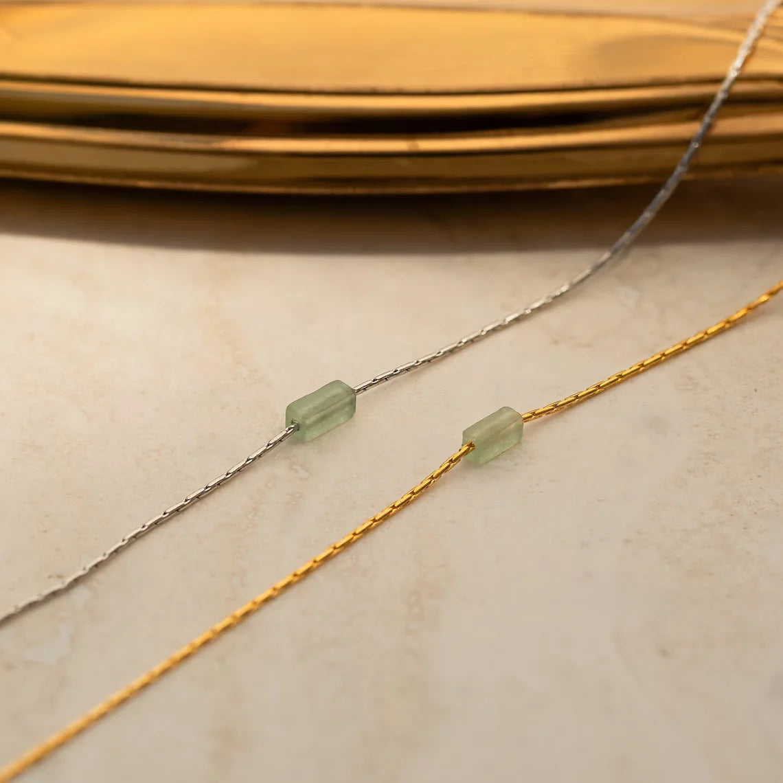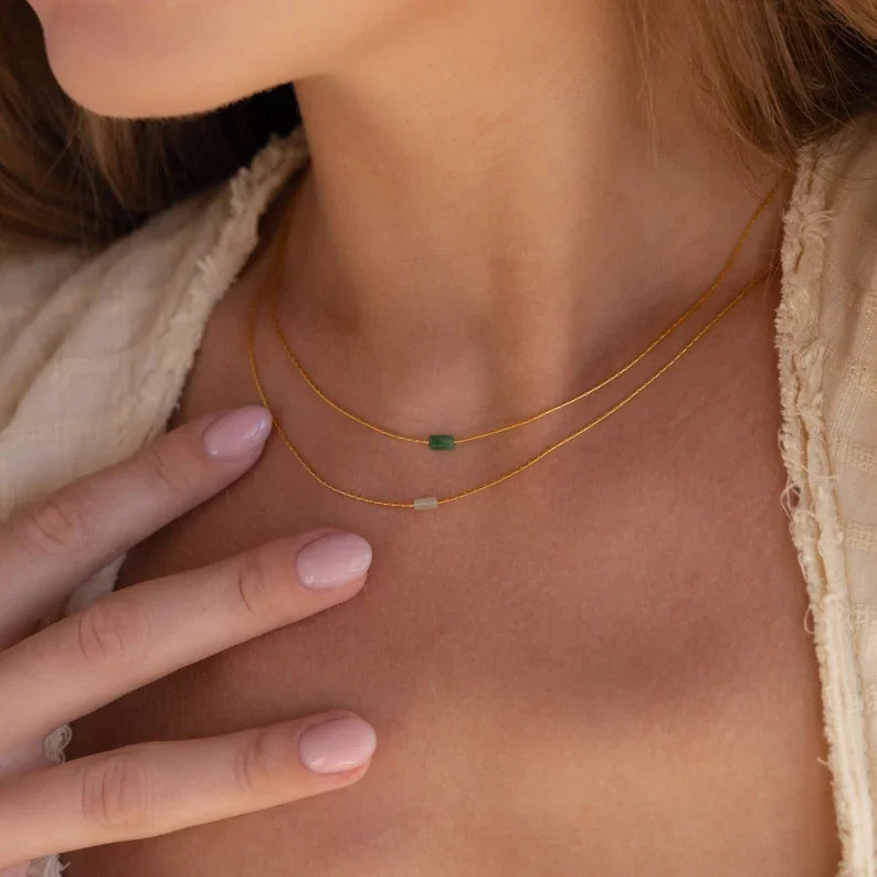 Dainty Womens Jade Necklace 18k Gold Plated Stainless Steel Tiny Jade Necklaces Green Zircon Gemstone Jewelry