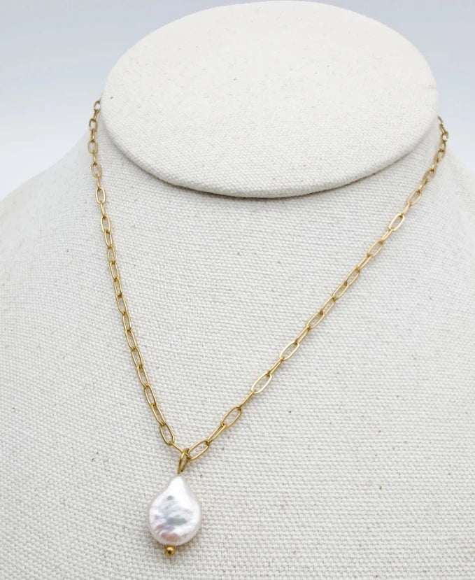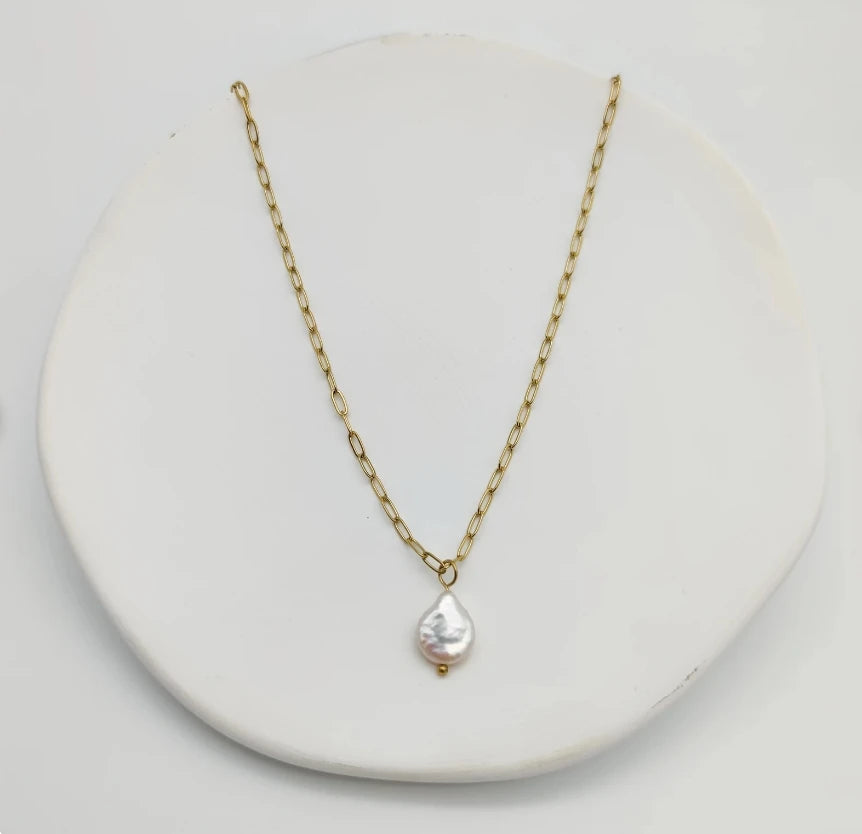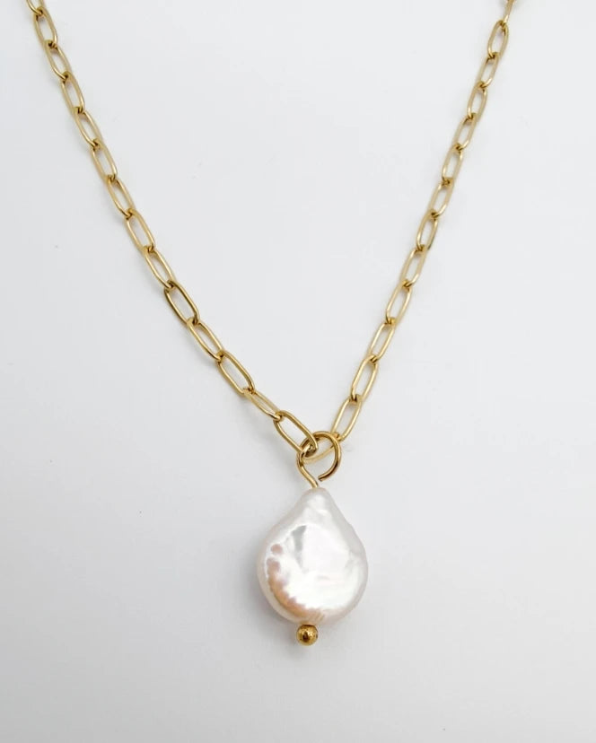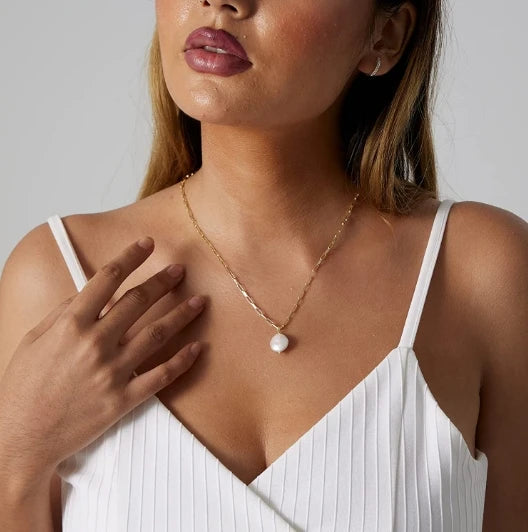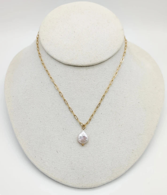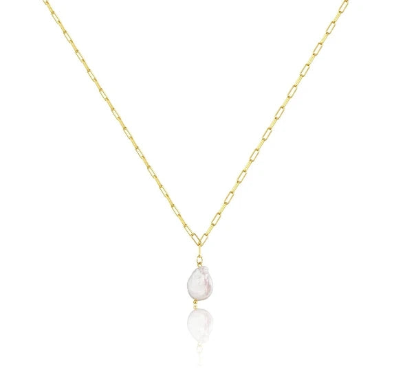 Dainty Pearl Pendant Necklaces 18k Gold-Plated Paper Clip Chain Baroque Pearl Pendant Irregular Pearl Necklace for Women