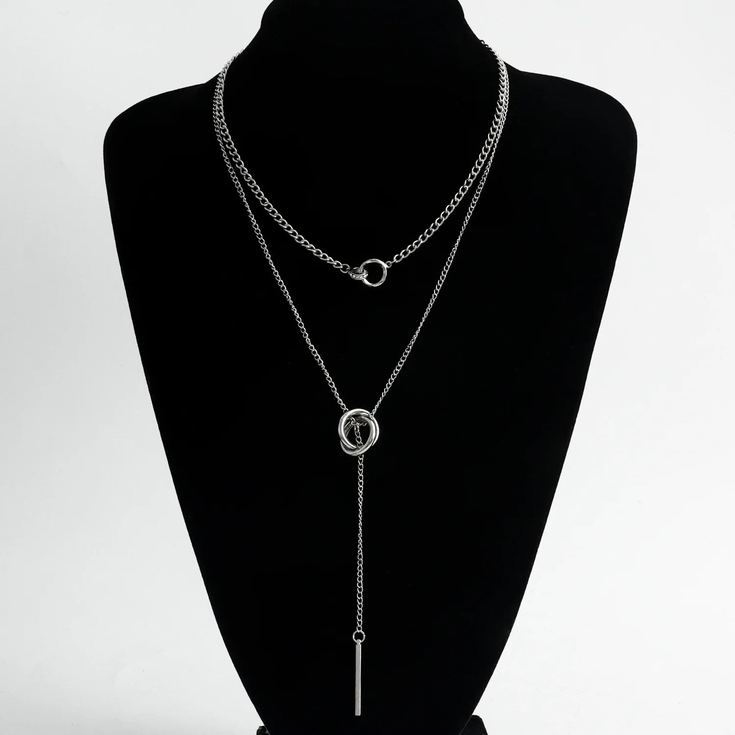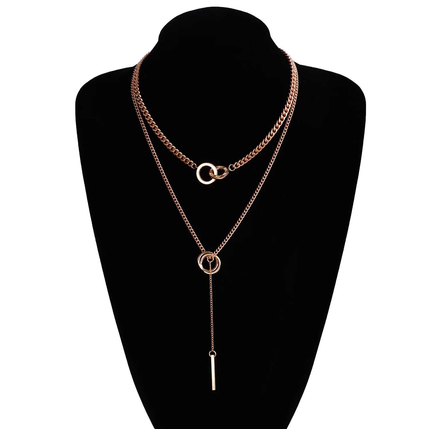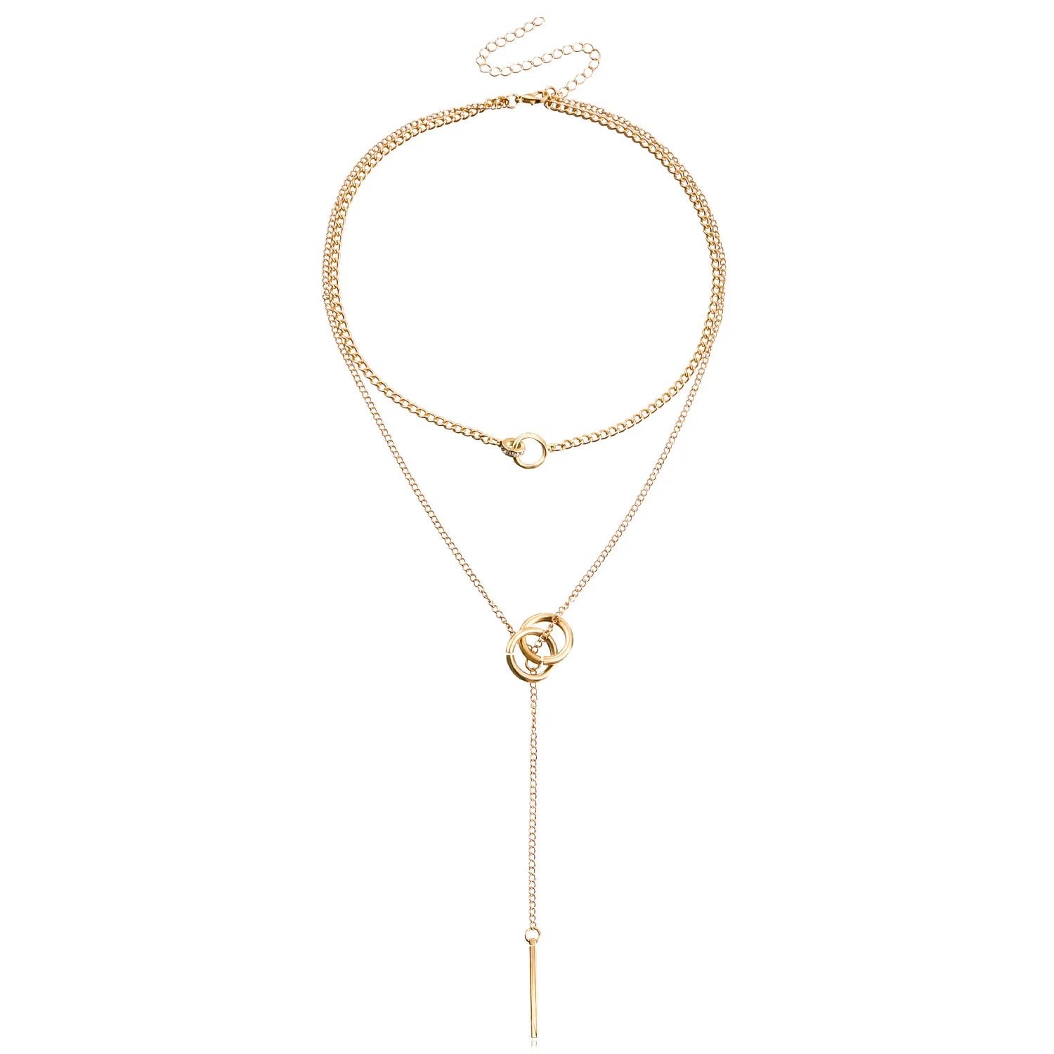 Gold Plated Double Layer O-Ring Long Stick Pendant Chain Necklace Fashion Gold Silver Two Color Tassel Necklaces for Women