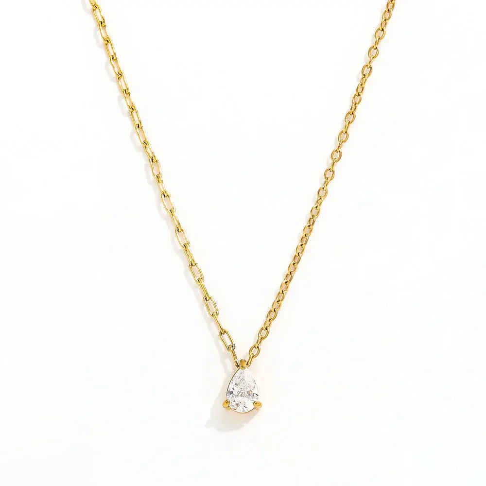 New Trend Teardrop Diamond Necklace for Women 14K Gold Plated Pear Diamond Necklace Custom Round Cut Drill Chain Necklace