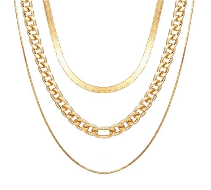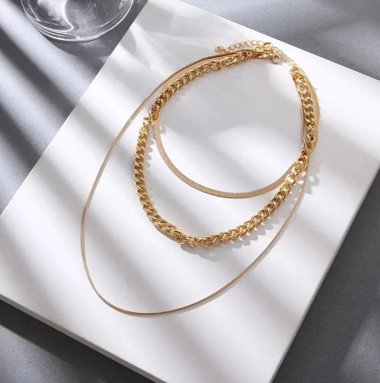 Snake Golden Plated Chain Necklace 3 Tier Female Fashion Punk Style Metal Multi-layer Long Chain Pendant for Women Girls