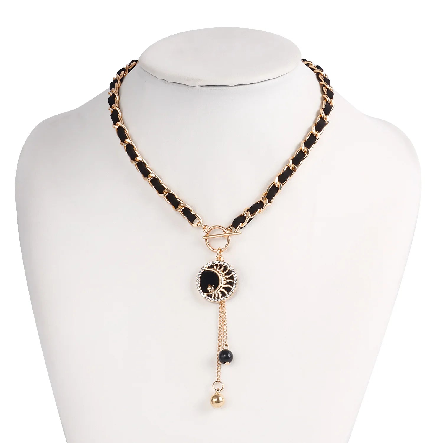 Black Heart Choker Ball Bead Pendant Necklace Black Velvet Wrap Gold Chain Necklace Minimalist Toggle Clasp Necklace for Girls
