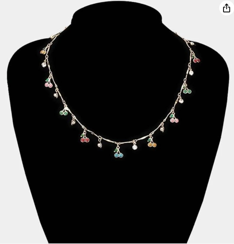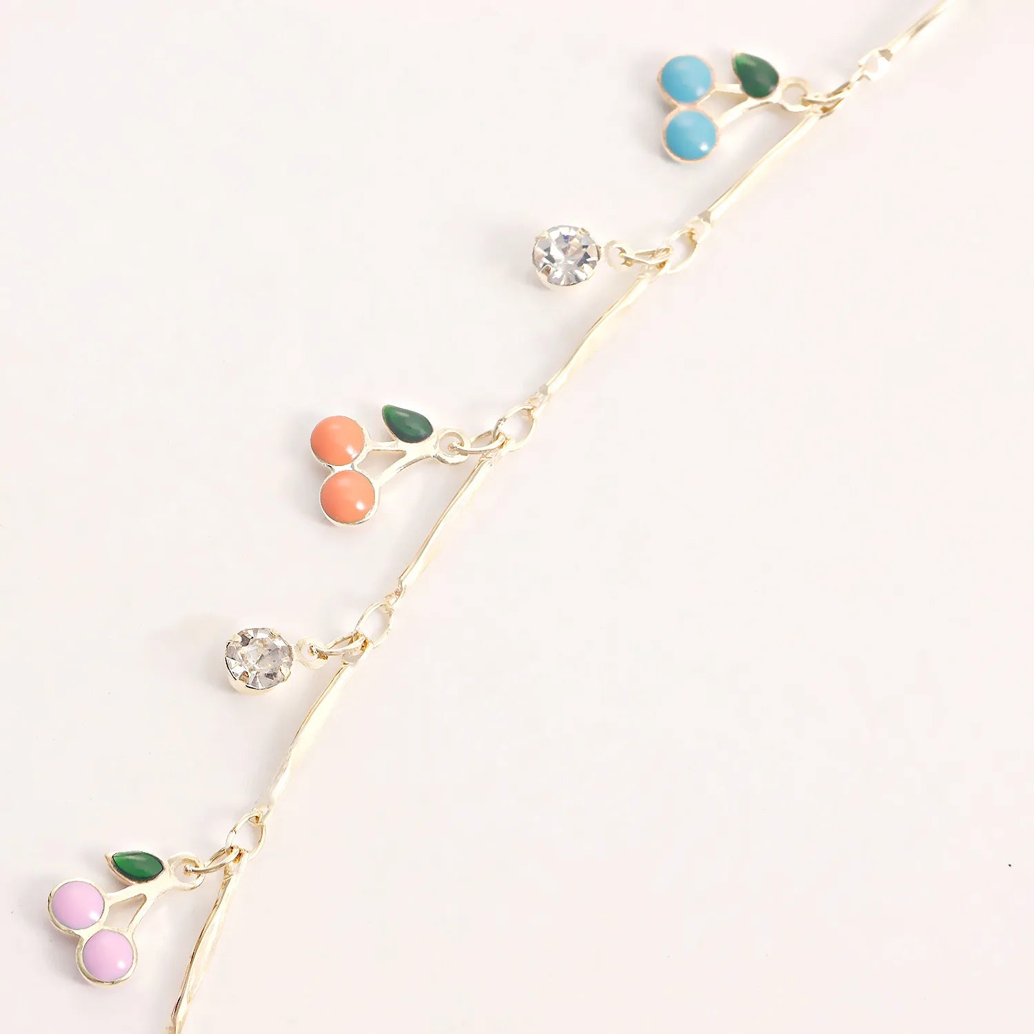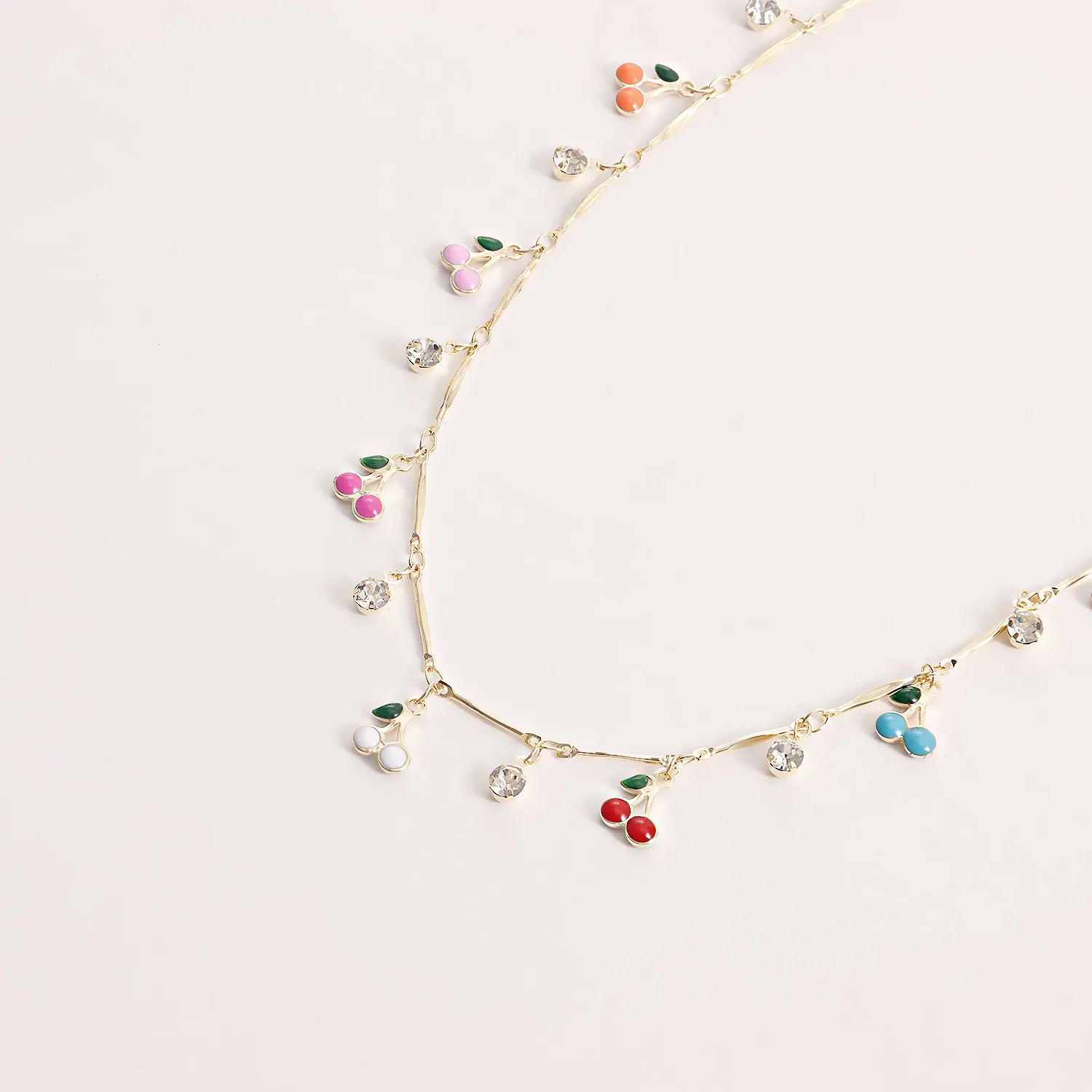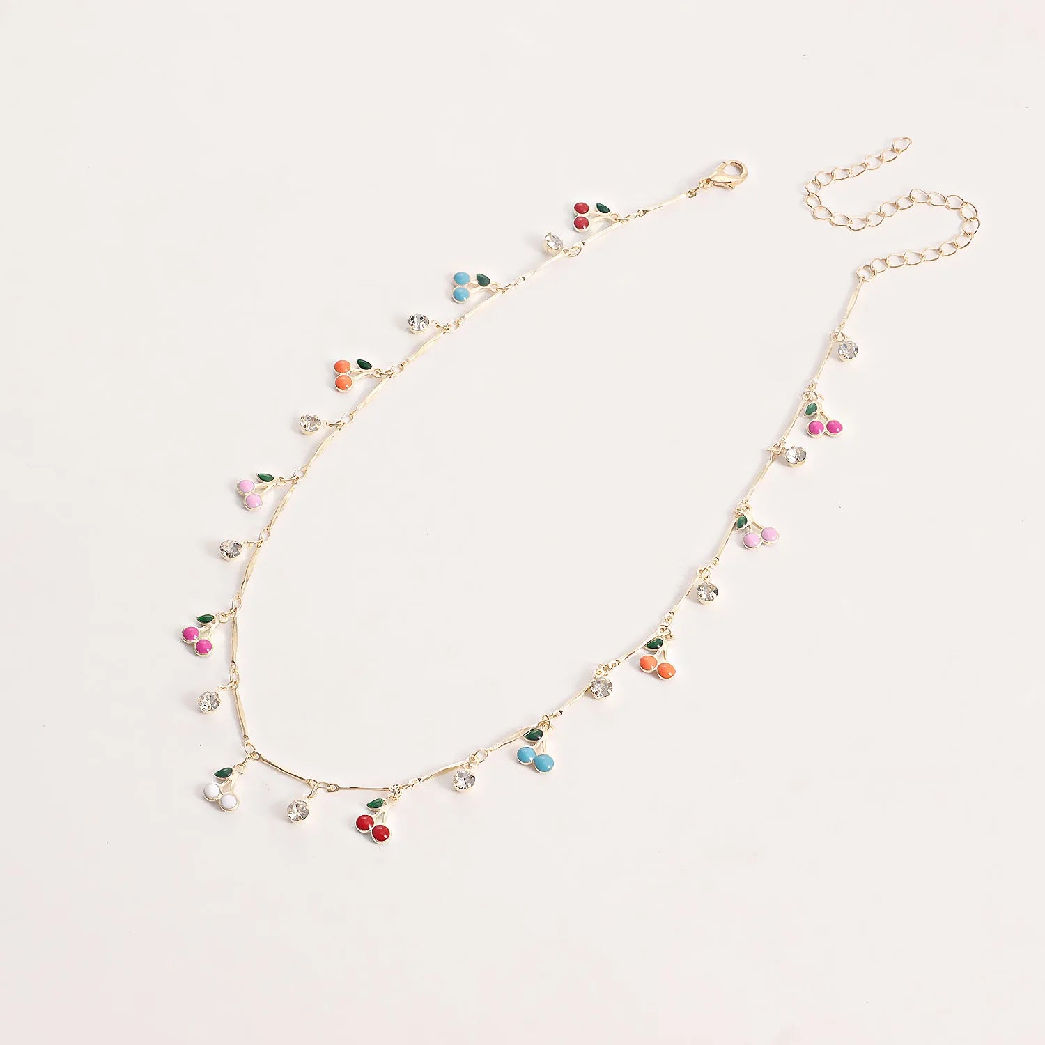 Women's Dainty Gold Chain Necklace with Colorful Cherry Charm Pendant Fruit Beaded Choker-Fashionable Choker Necklace