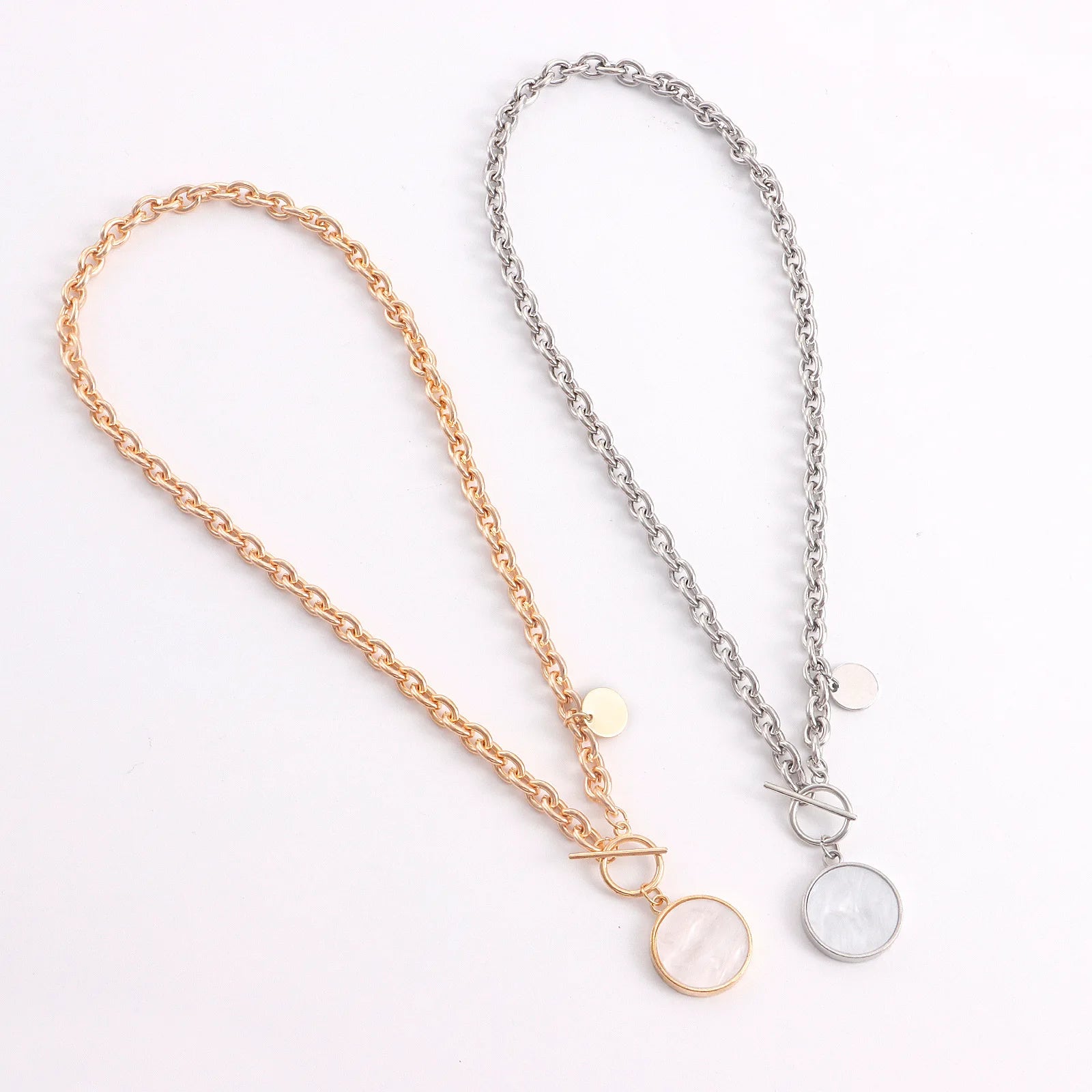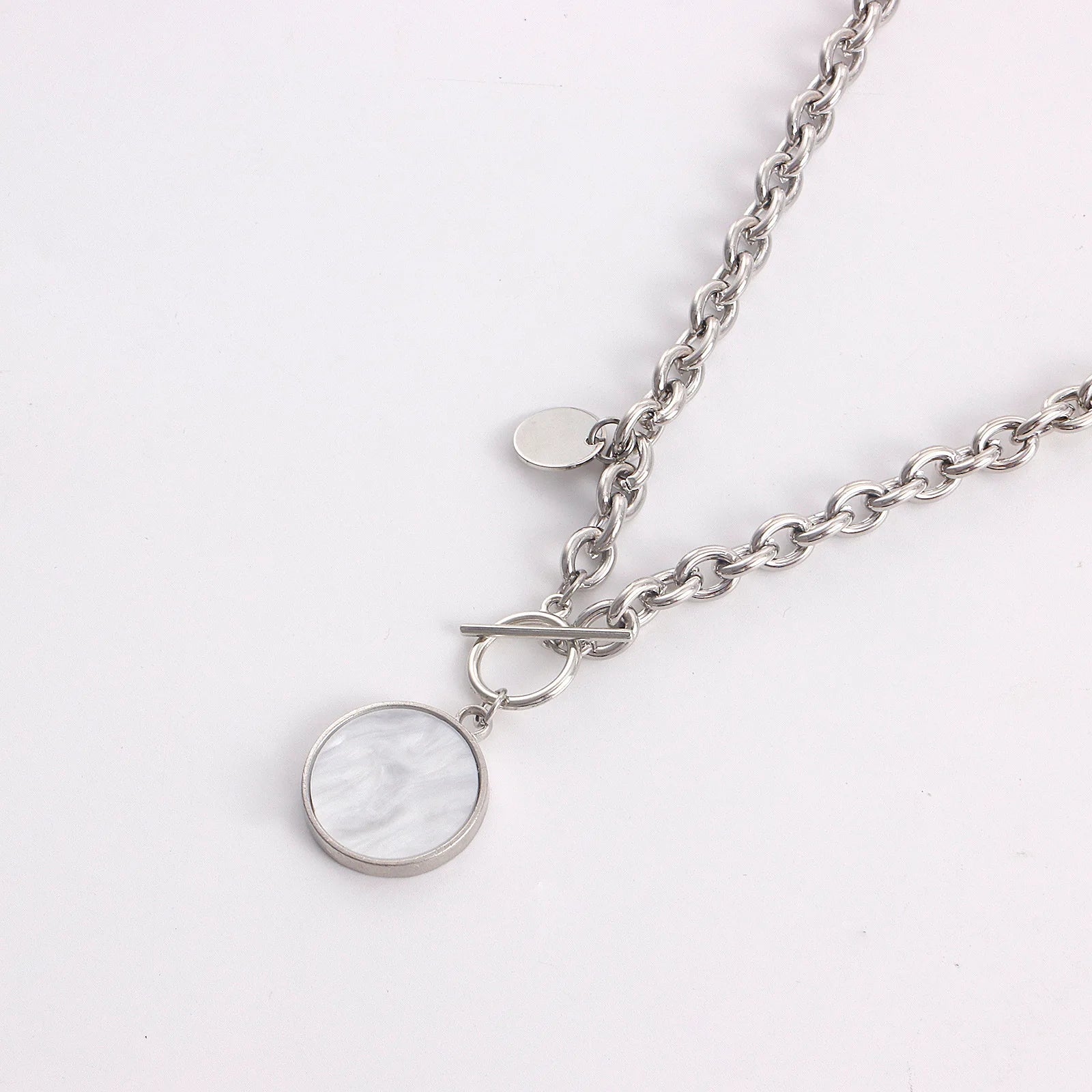 Fashion Round White Fritillary Pendant Necklaces OT Clasp Necklace Vintage Coin Pendant Toggle Clasp Necklaces Jewelry for Women