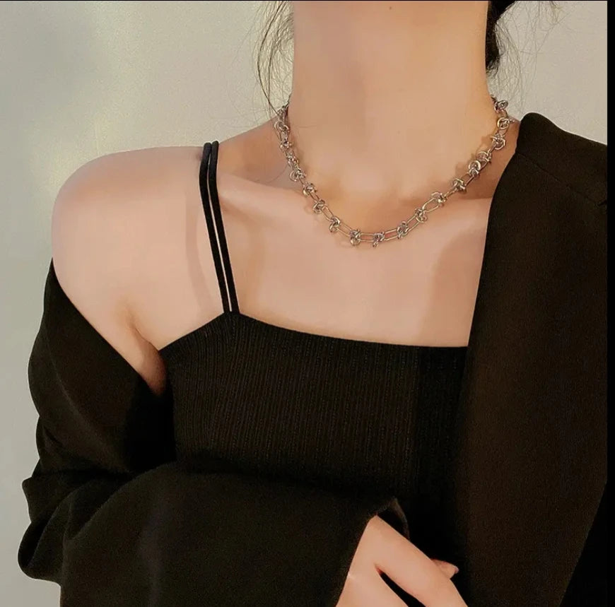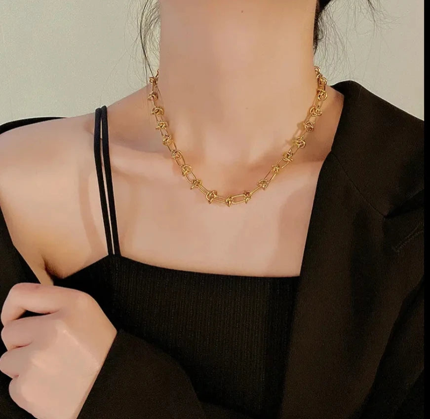 Necklace Stainless Steel Waterproof Rope Knot Shape Chain Necklace Vintage Gold Color Knot Clavicle Fashion Necklace for Women