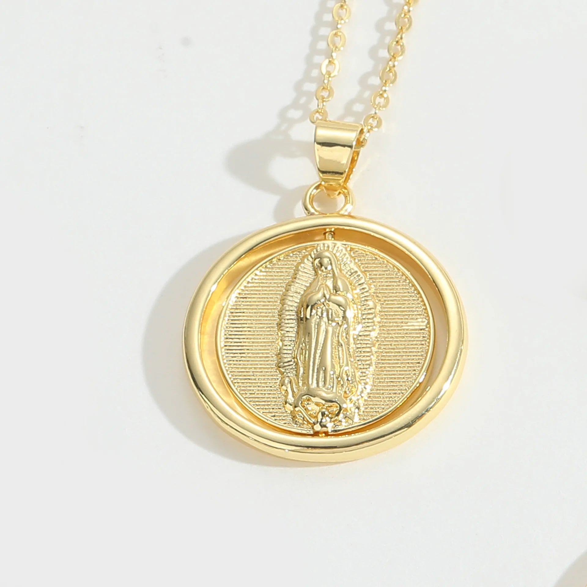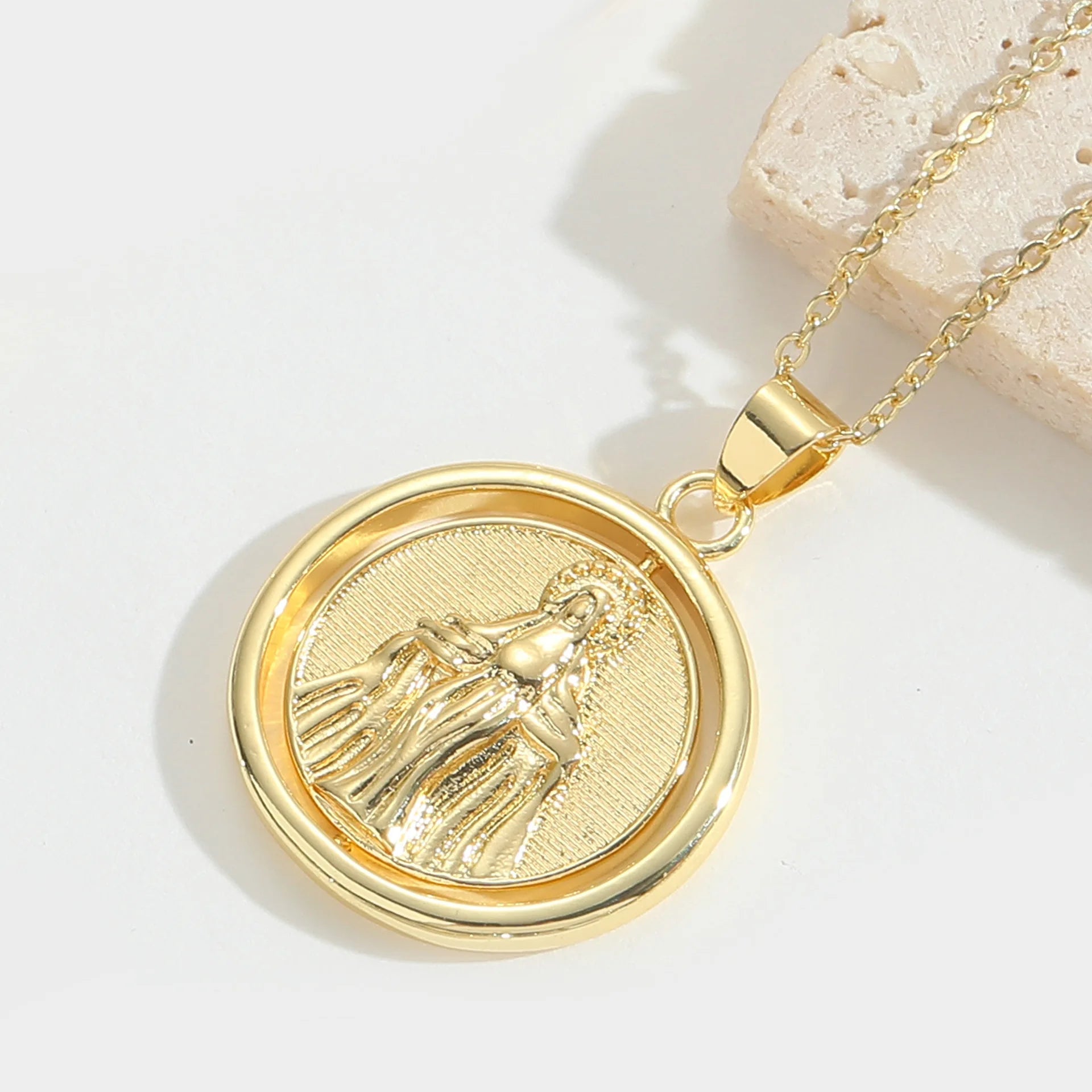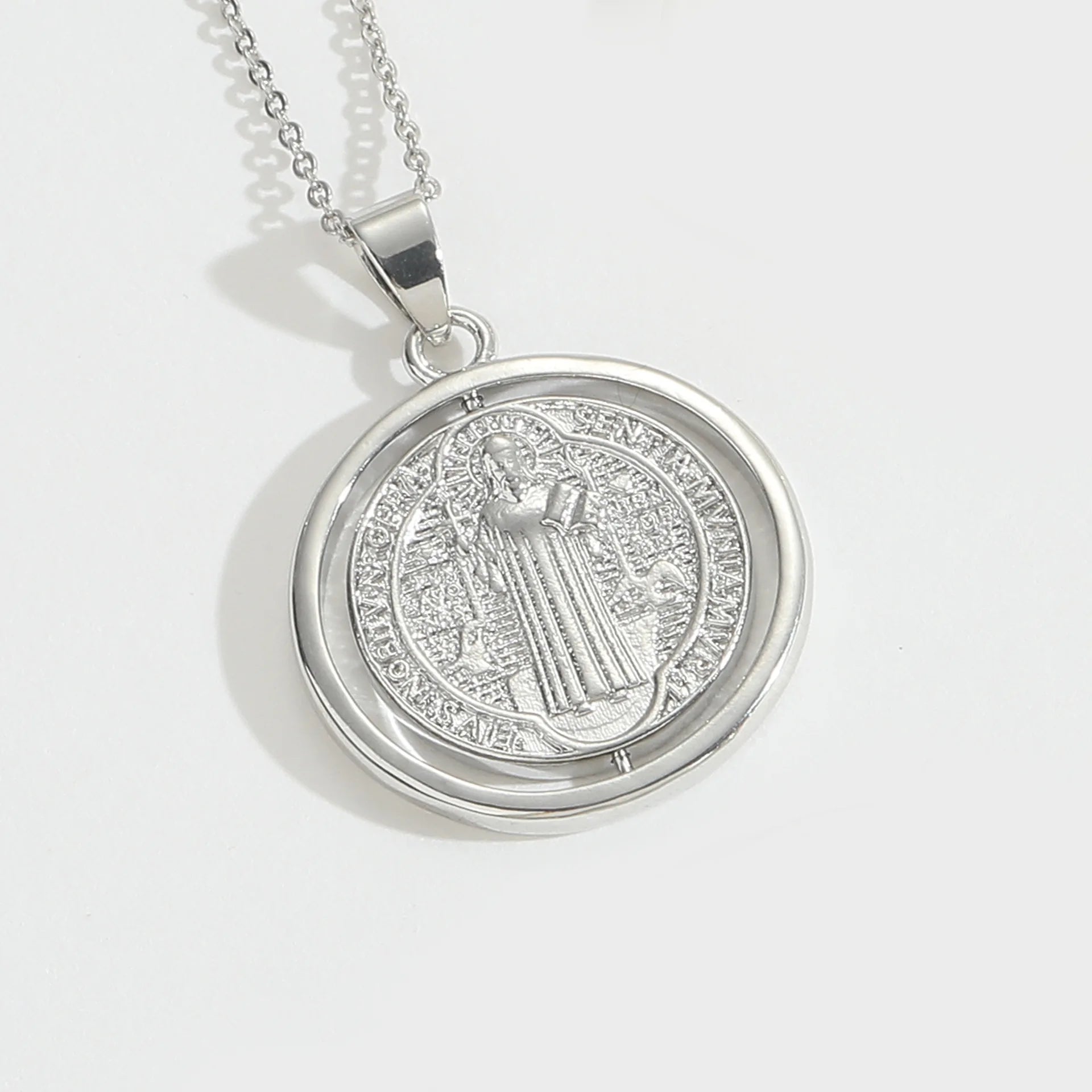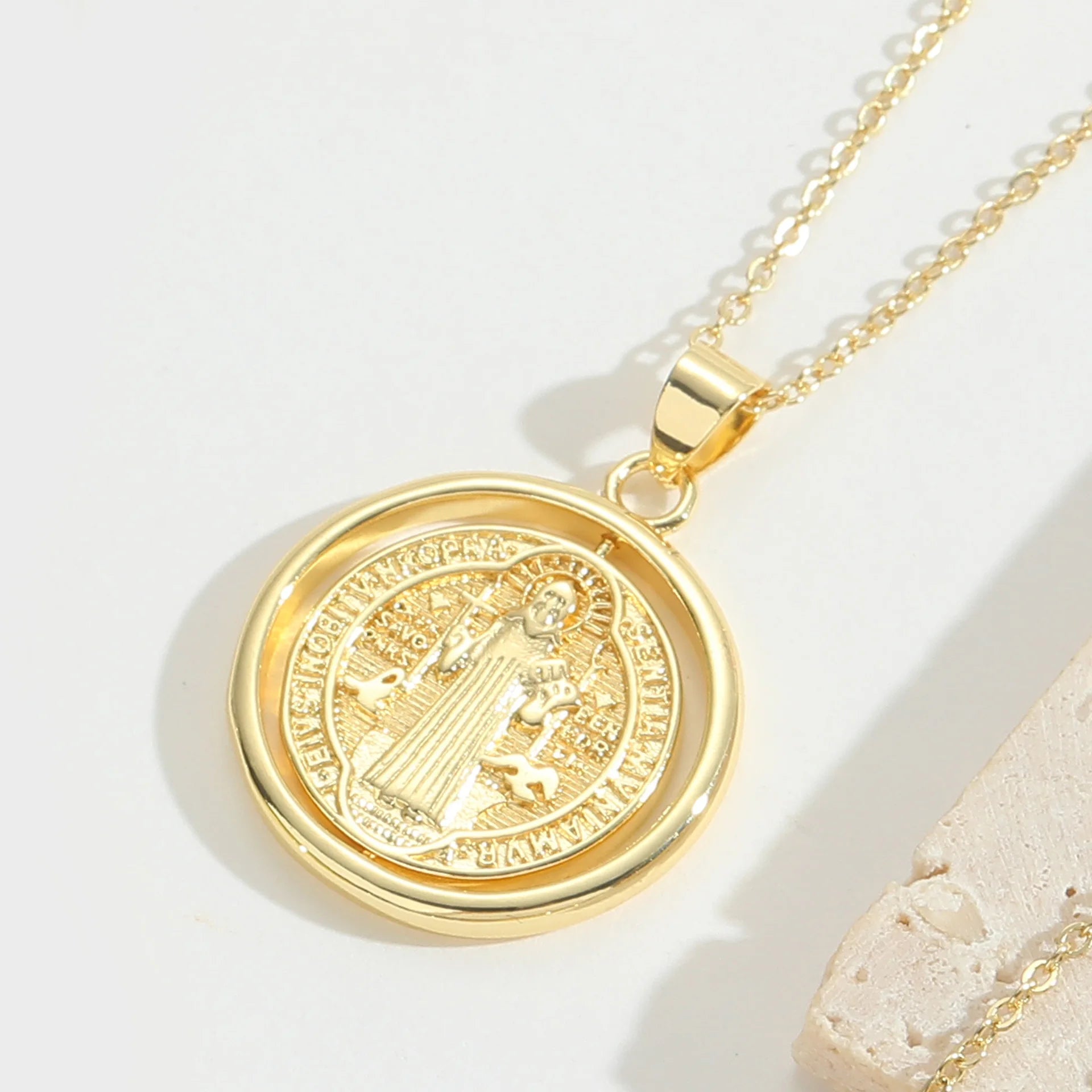 Elegant 18K Gold Plated Saint Benedict Medal Necklace Vintage Style Rotatable Pendant Copper Jewelry for Women Men Perfect Gift