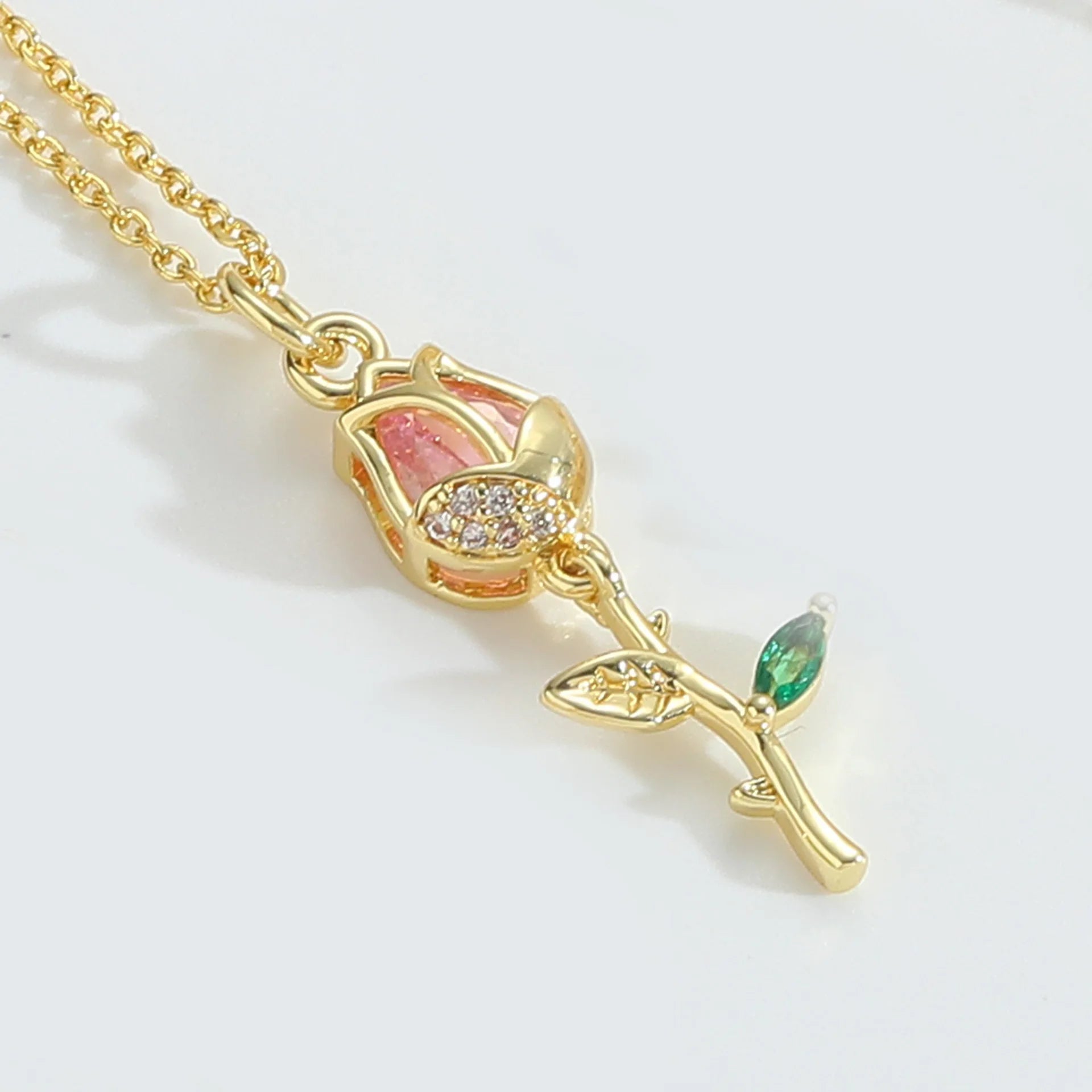 Wholesale 18k PVD Gold Plated Stainless Steel Necklace Hypoallergenic Waterproof Rose & Hummingbird Pendant Jewelry for Women