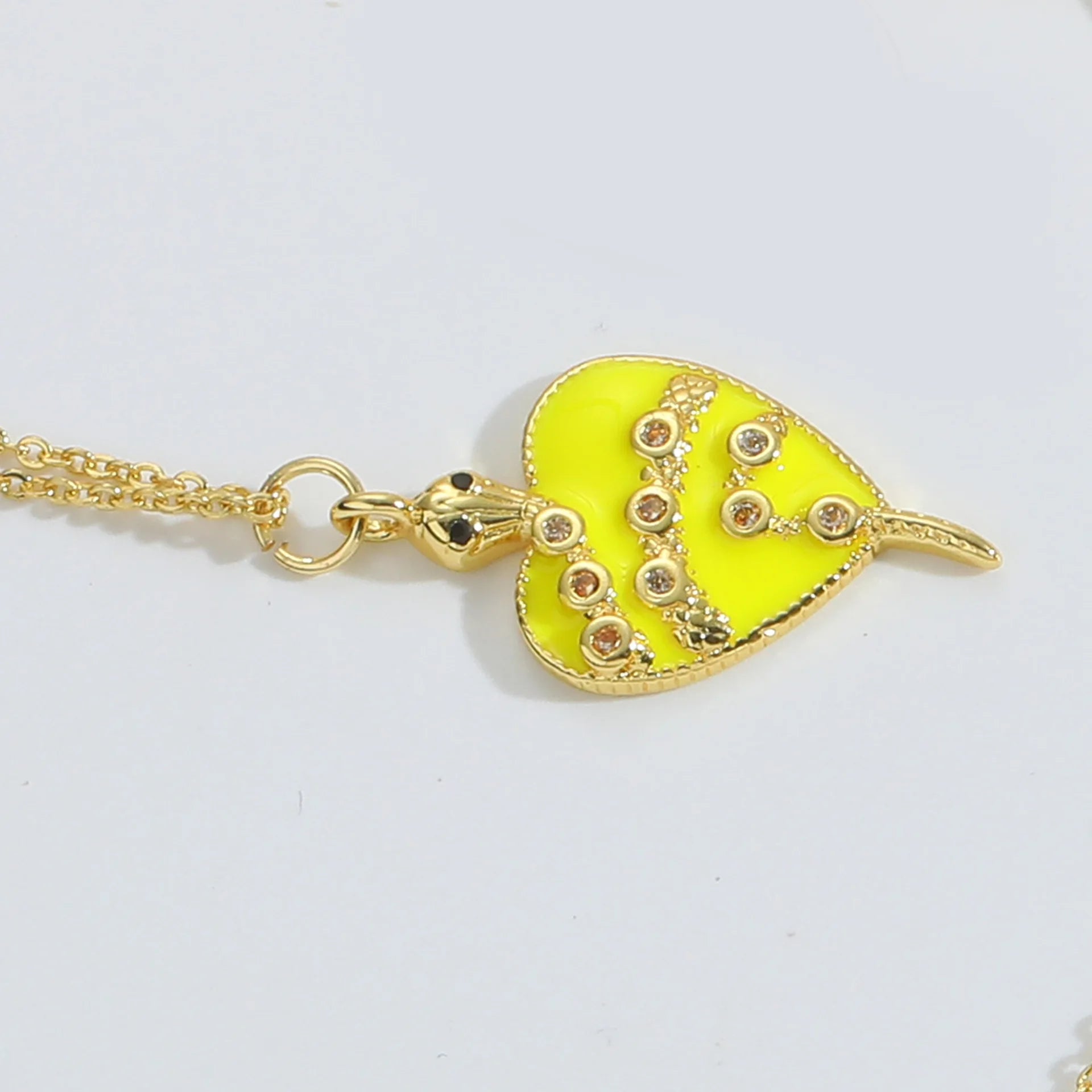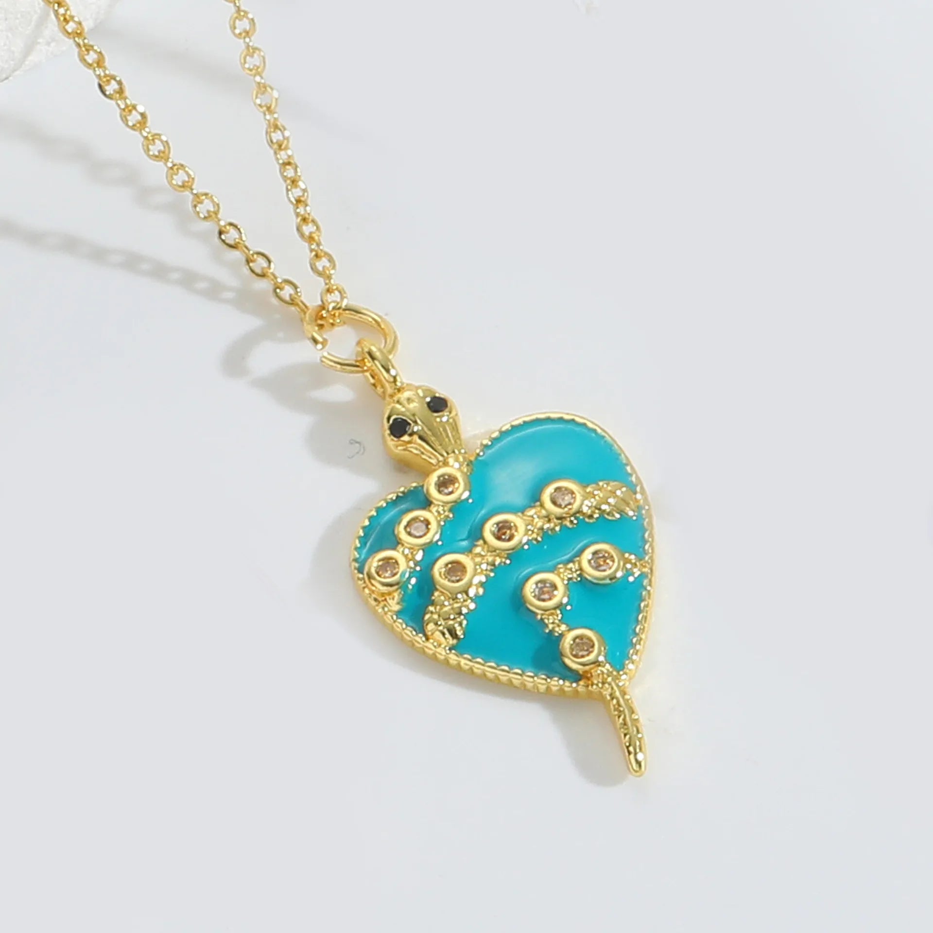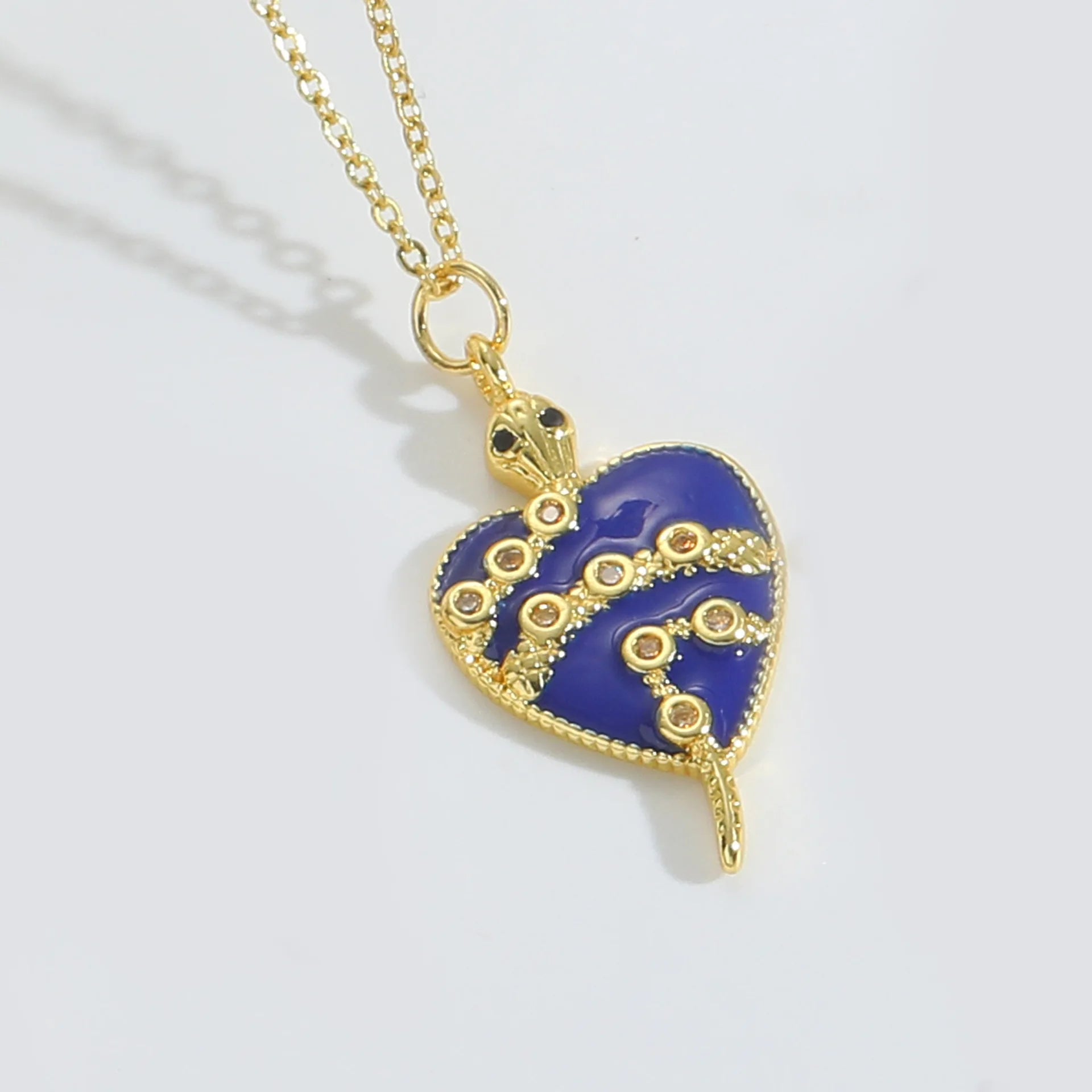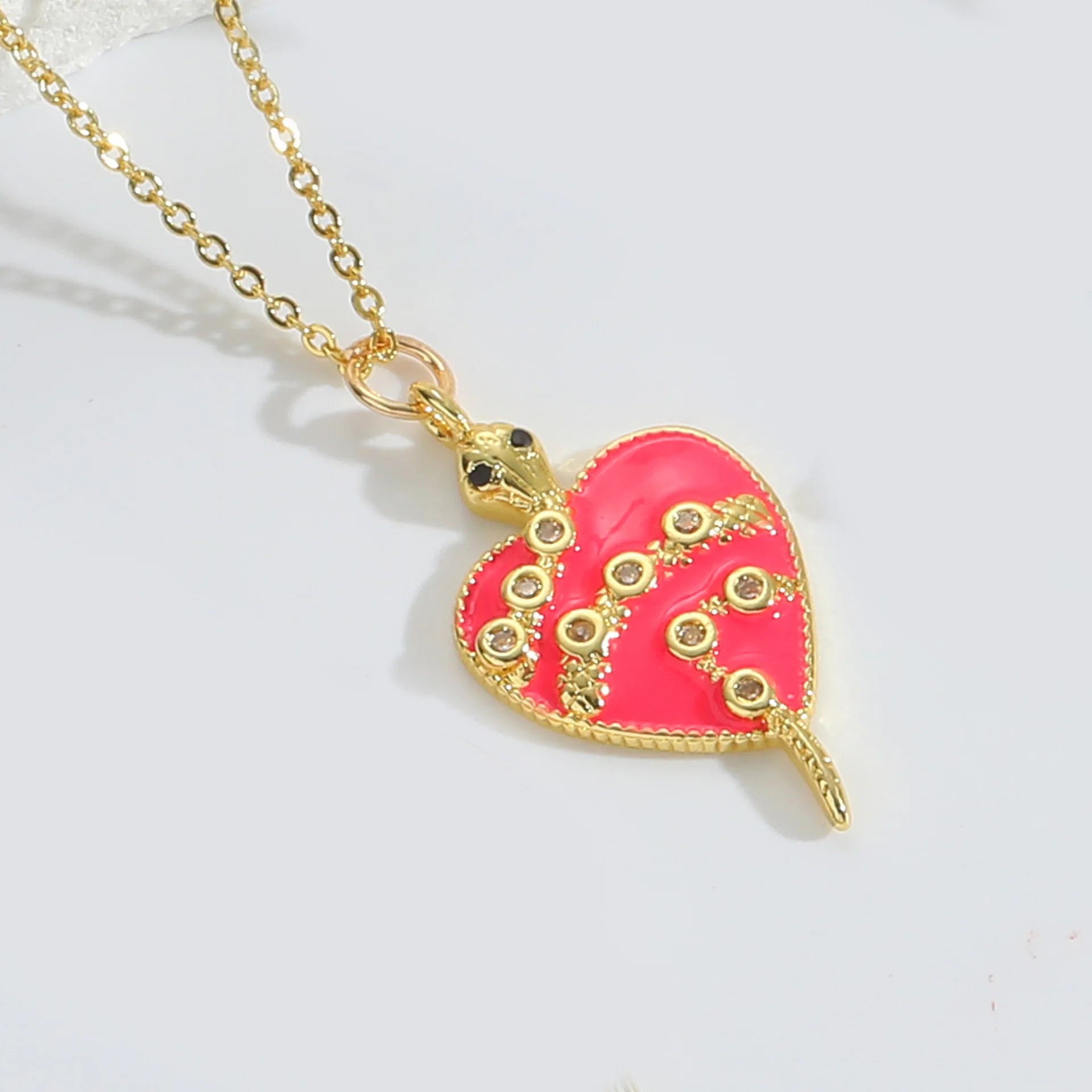 Innovative 18K Gold Plated Copper Heart Necklace with Zircon Pendant Colorful Vintage Style Chain for Women Party Jewelry Gift