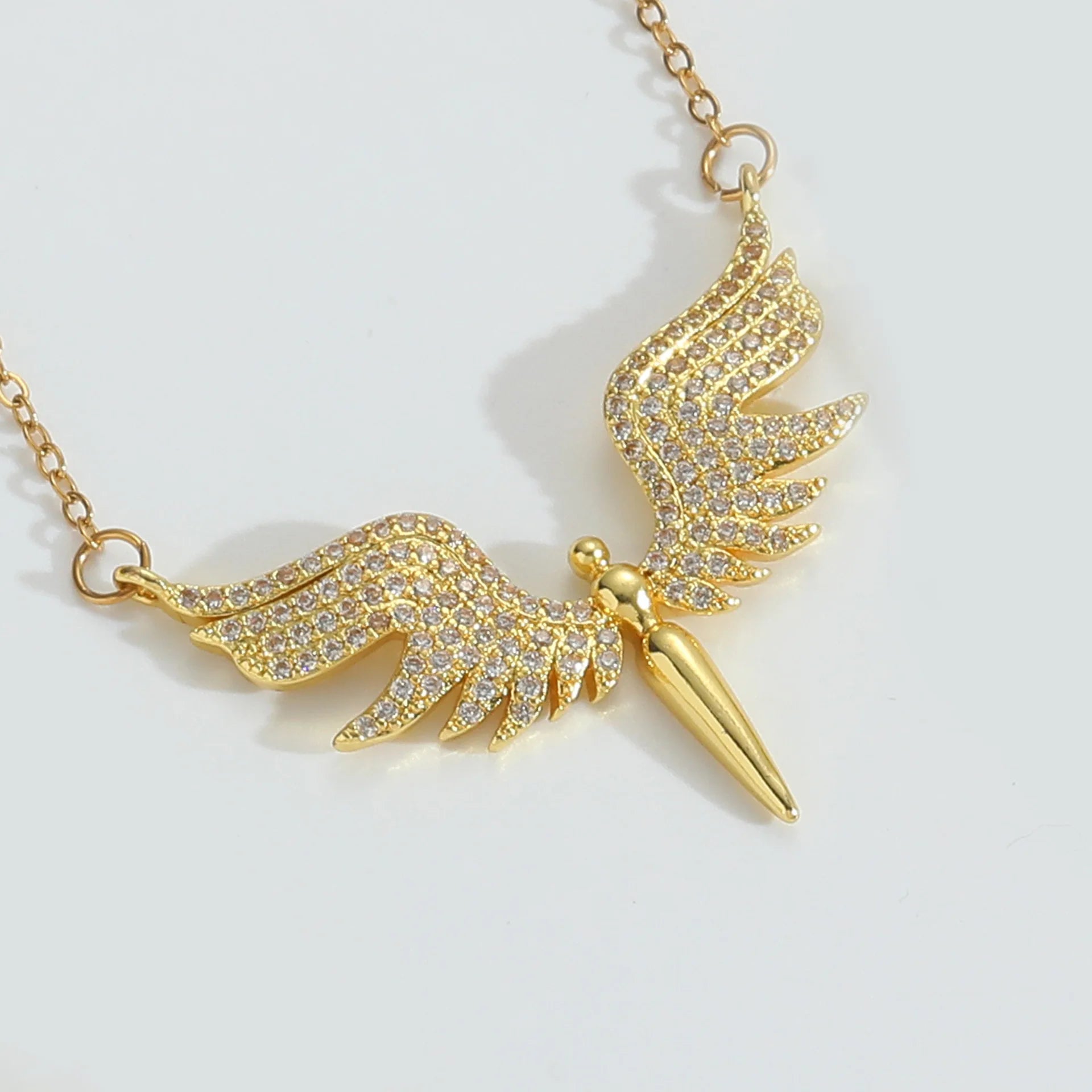 Elegant 14K Gold Plated Angel Wing Pendant Necklace With Premium Copper Rope Chain for Women and Girls