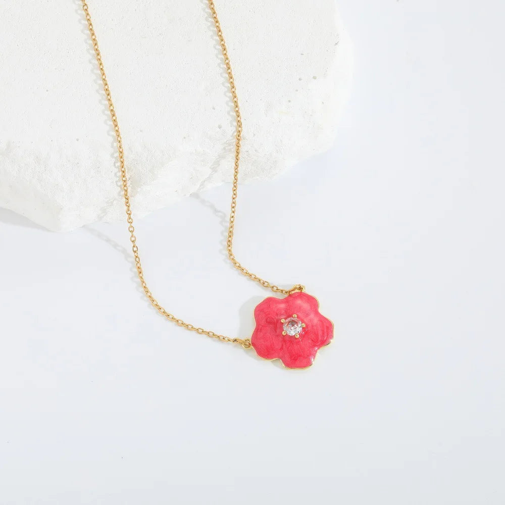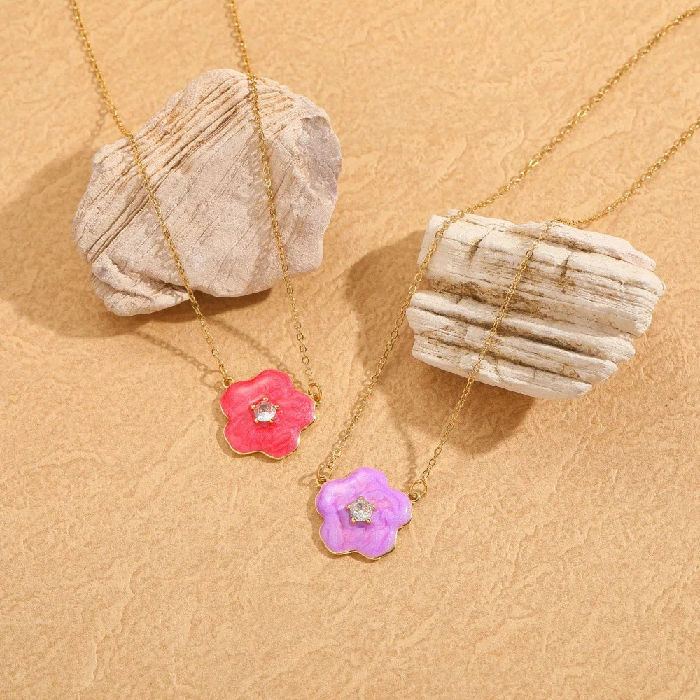 High Quality Women's Resin Flower Necklace with Zircon Copper Beaded Bracelet Inspired Europe United States Frangipani Jewelry