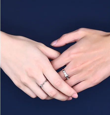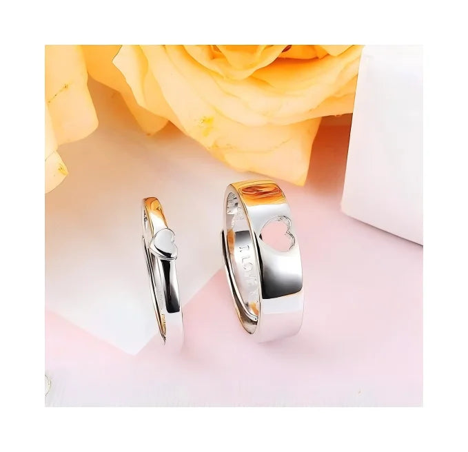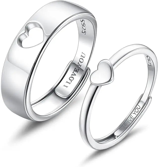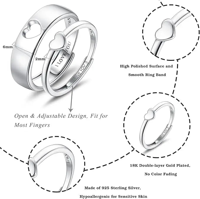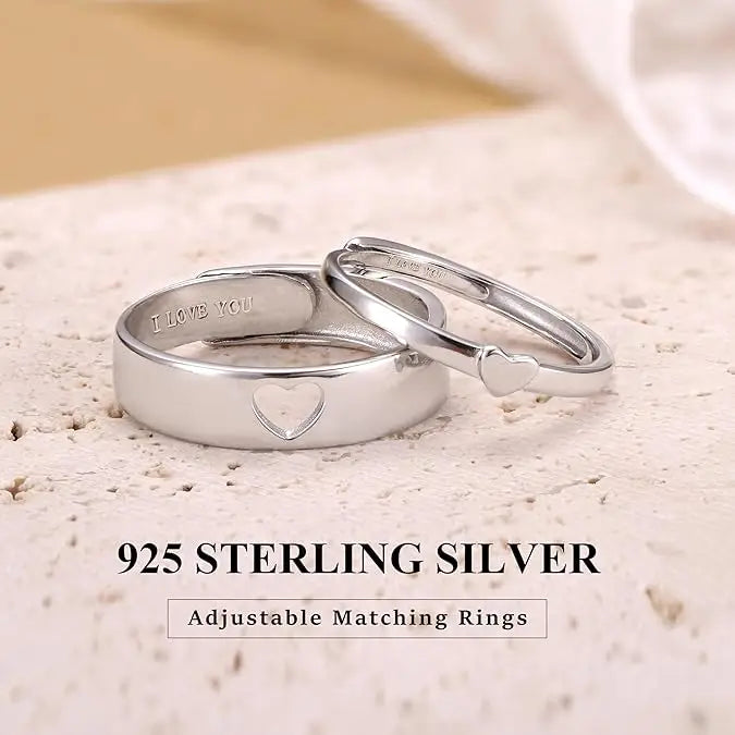 Adjustable S925 Sterling Silver Couple Rings Matching Heart I Love You Engagement Wedding Ring Sets for Him and Her
