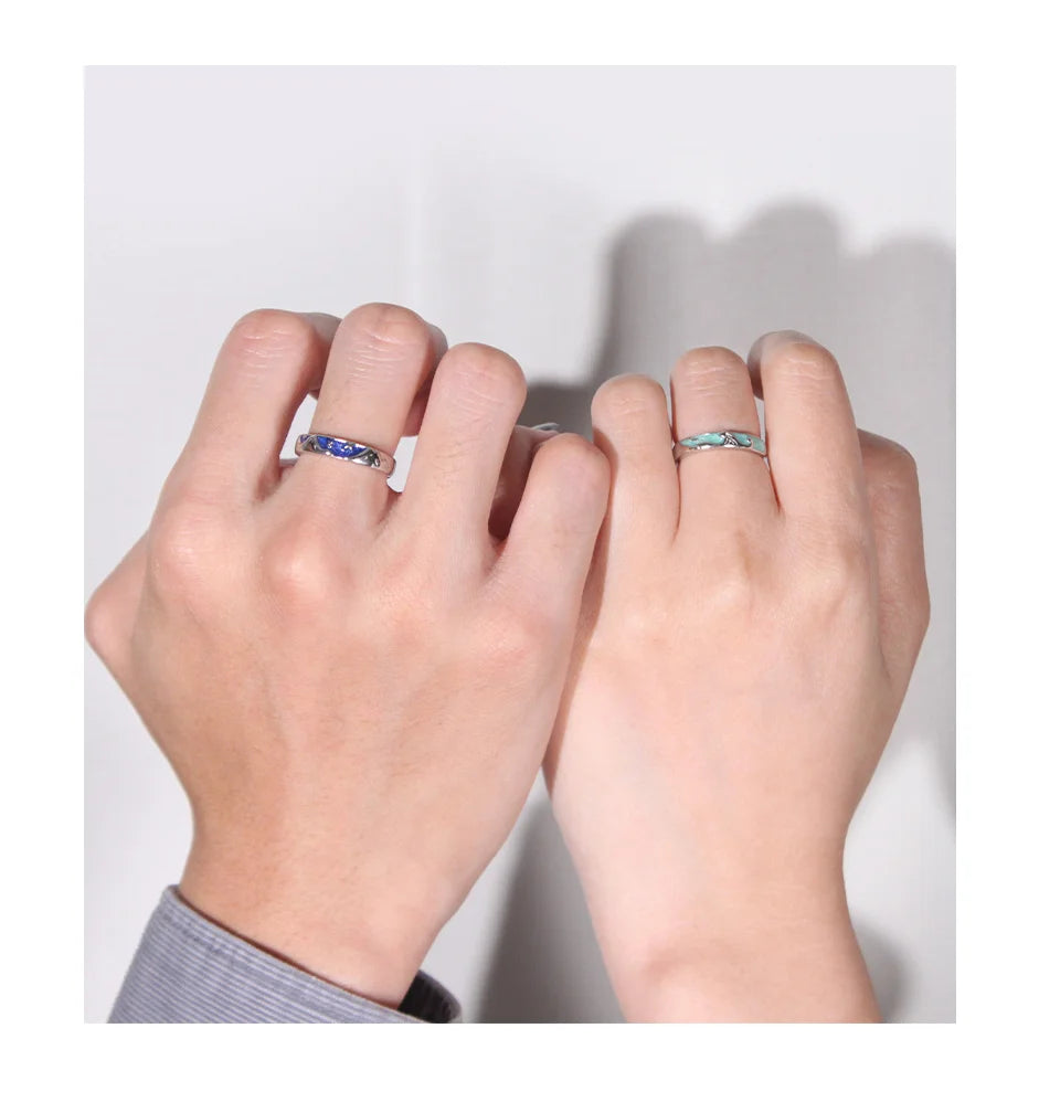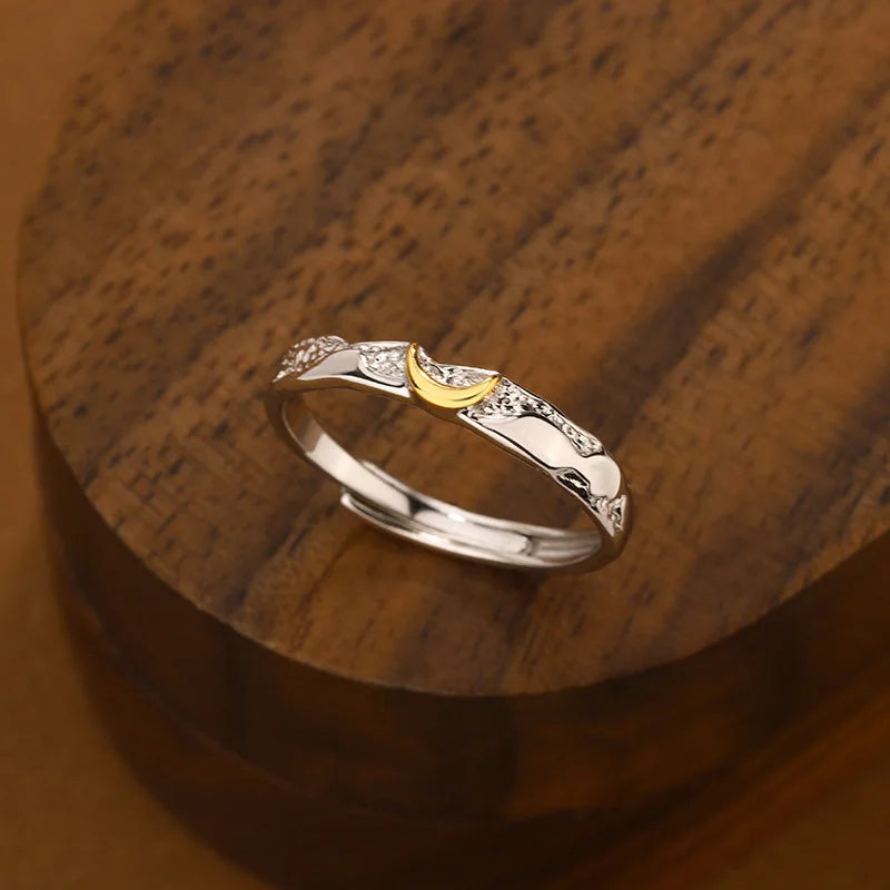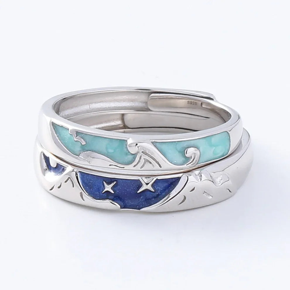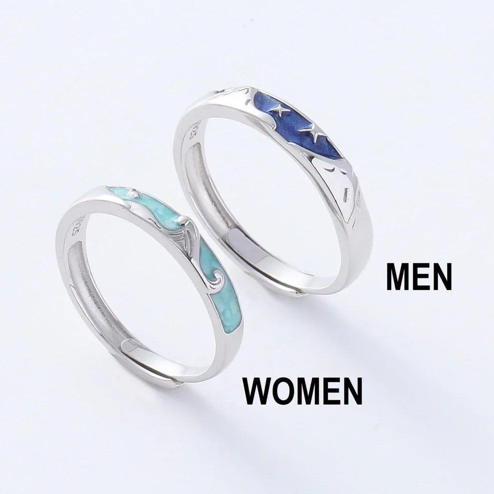 Adjustable 925 Silver Mountain Ocean Couple Ring Set Handcrafted Nature Inspired Rings for Valentine's Gift
