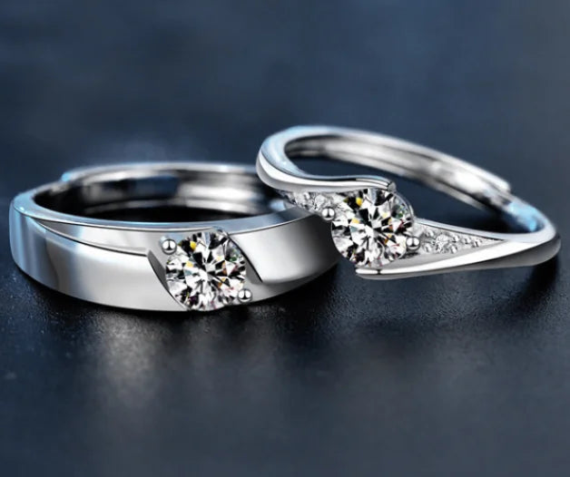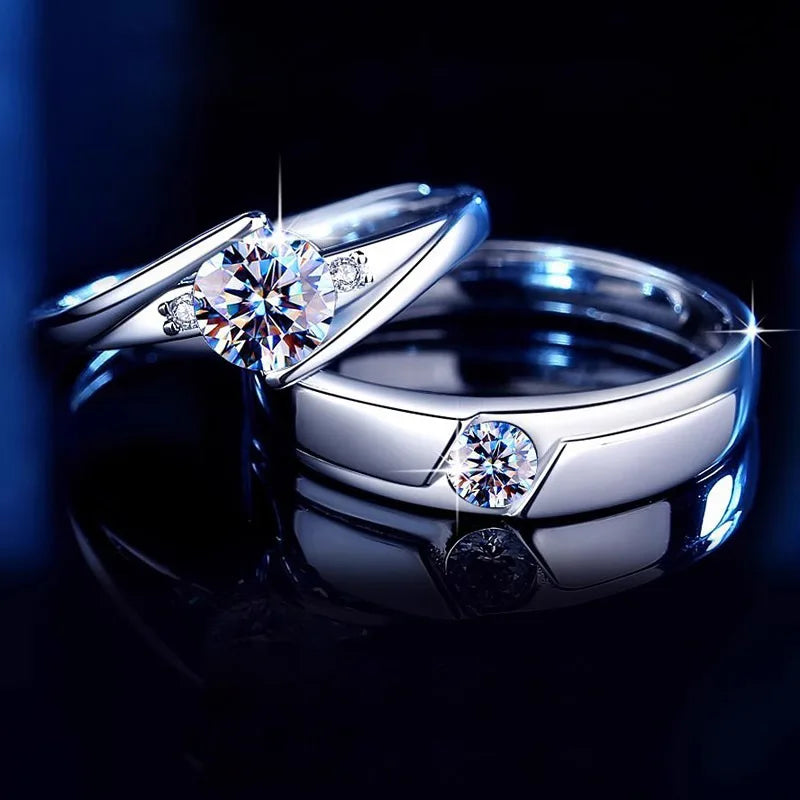 Adjustable S925 Sterling Silver Wedding Rings Couple Set Engagement Promise Moissanite Ring for Men Women