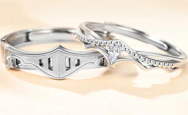 Fashionable Adjustable Knight Princess Cut Diamond Rings Zircon 925 Sterling Silver Casual Rings for Couple