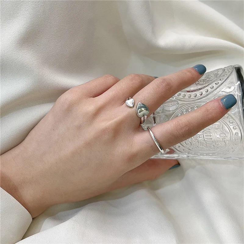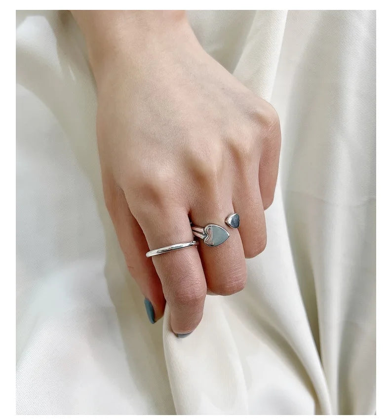 High Quality S925 Sterling Silver Rings Split Glossy Double Heart Ring Silver Fine Jewelry Fingers Luxury Rings for Women