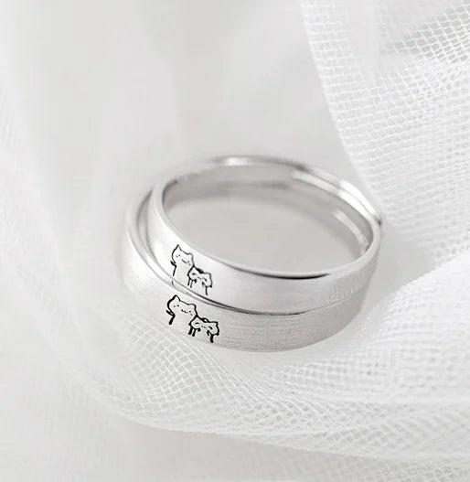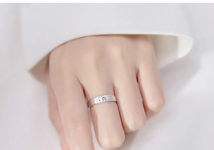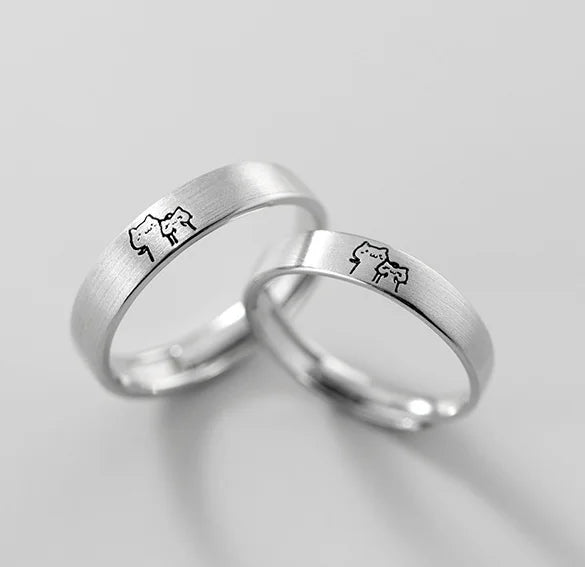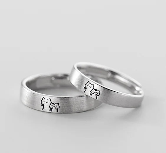 Adjustable Cute Animal 925 Sterling Silver Rings Romantic Cats Rings for Couples