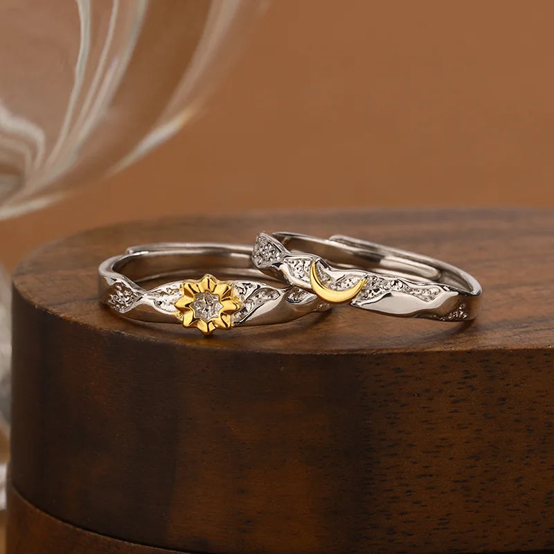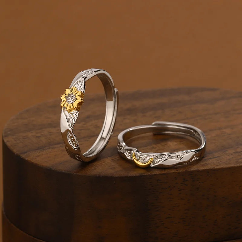 Adjustable 925 Sterling Silver Rings Couple Set Minimalist Romantic Sun and Moon Ring for Valentine's Gift