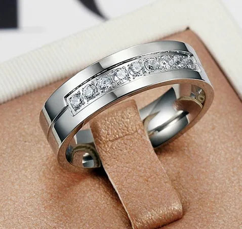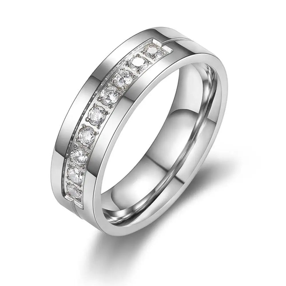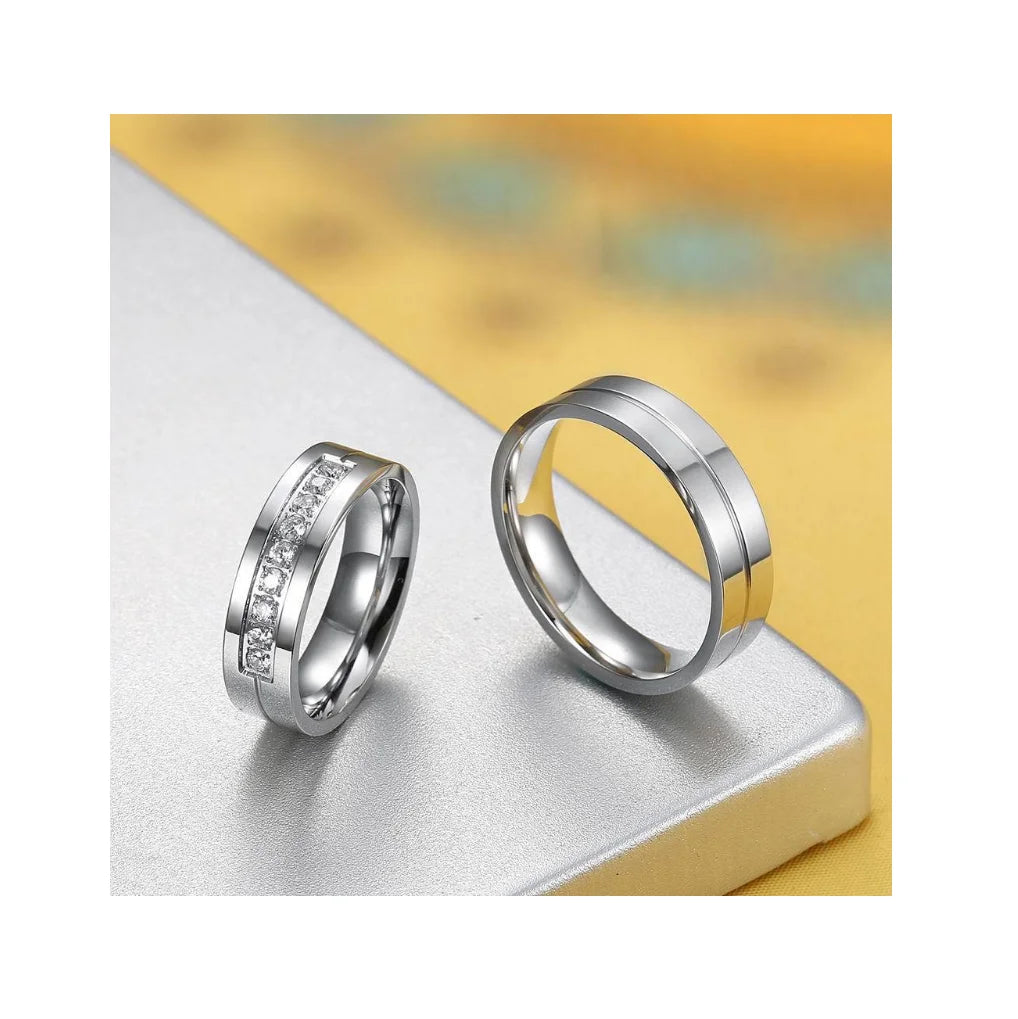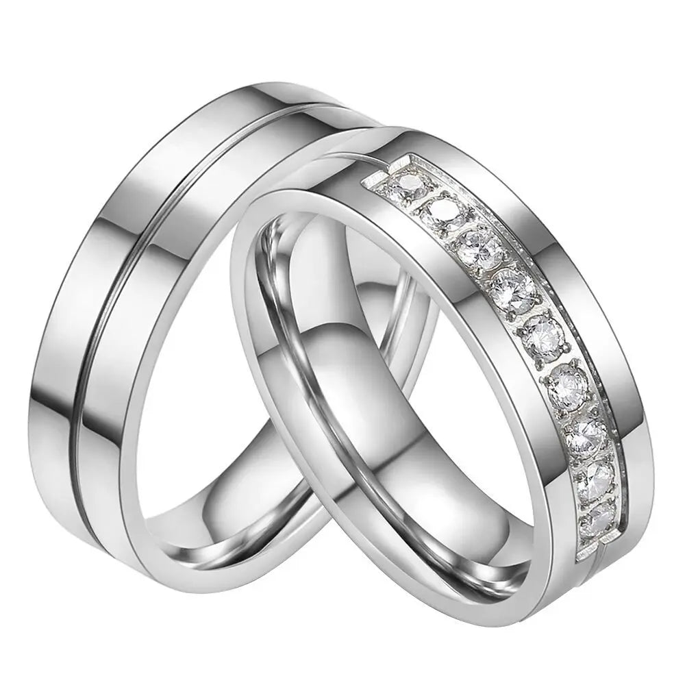 Fashionable Siver Plated Couple Titanium Ring Stainless Steel Cubic Zirconia Hand Ring Set for Couples