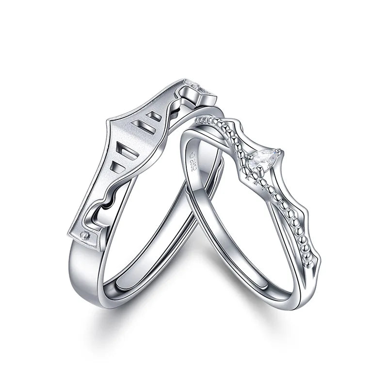 Adjustable S925 Sterling Silver Rings Couple Set Engagement Promise Rose Little Prince Ring for Men Women