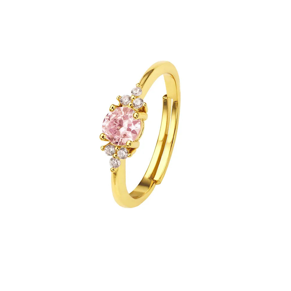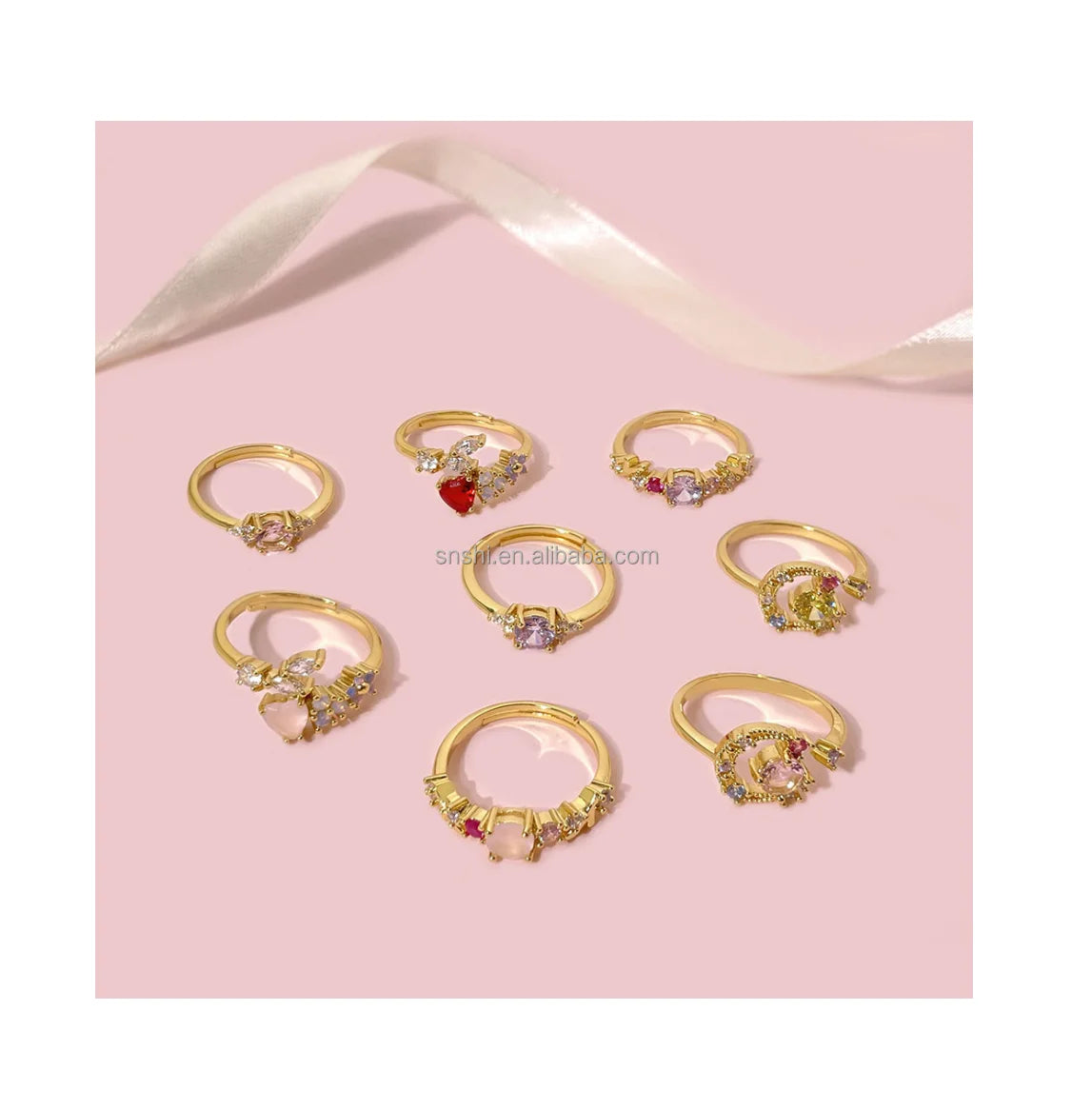 18K Gold Plated Classic Style Elegant Heart-Shaped Gemstone Ring for Women Fashionable Colorful Accessory for Valentine's Day