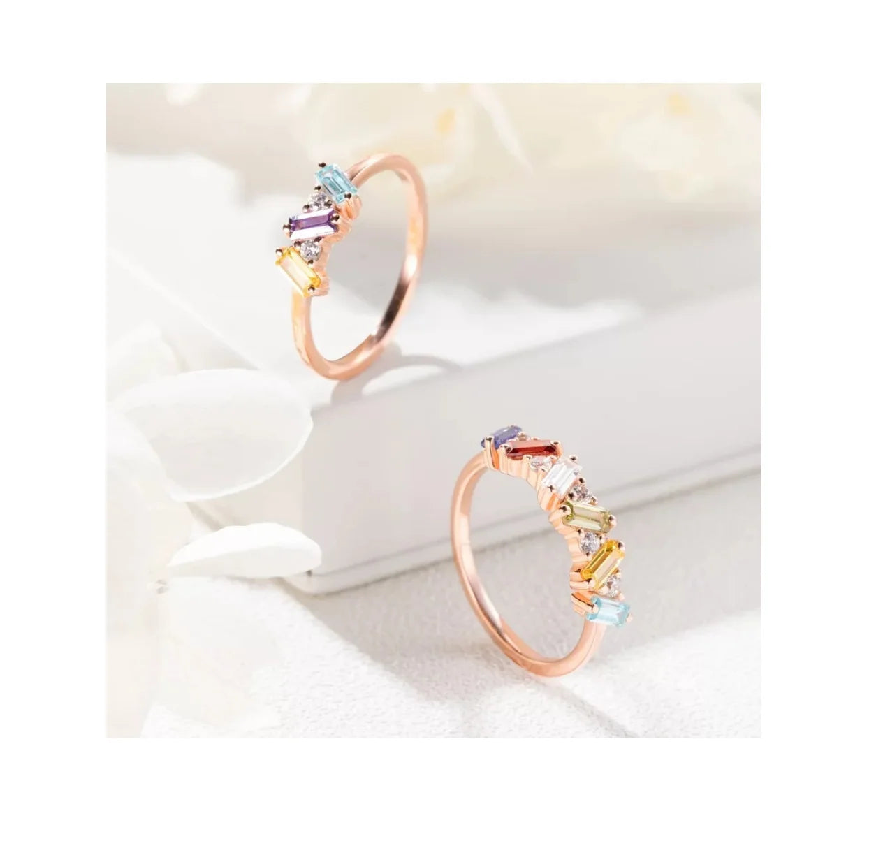 Trendy Exquisite 925 Sterling Silver Zircon Colorful Stones Ring Plated Sterling Silver Zirconia Ring for Fashion Women