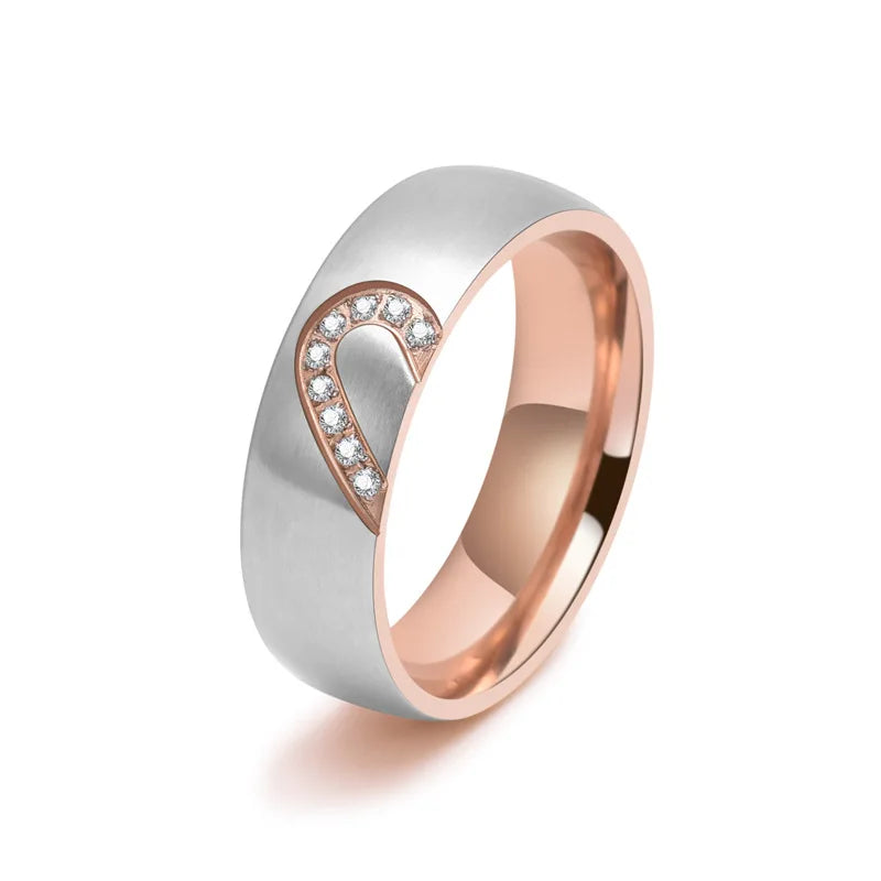 High Quality Waterproof Personalized Couples Promise Ring Set Black+Rose Gold Zirconia Heart Love Valentines Ring