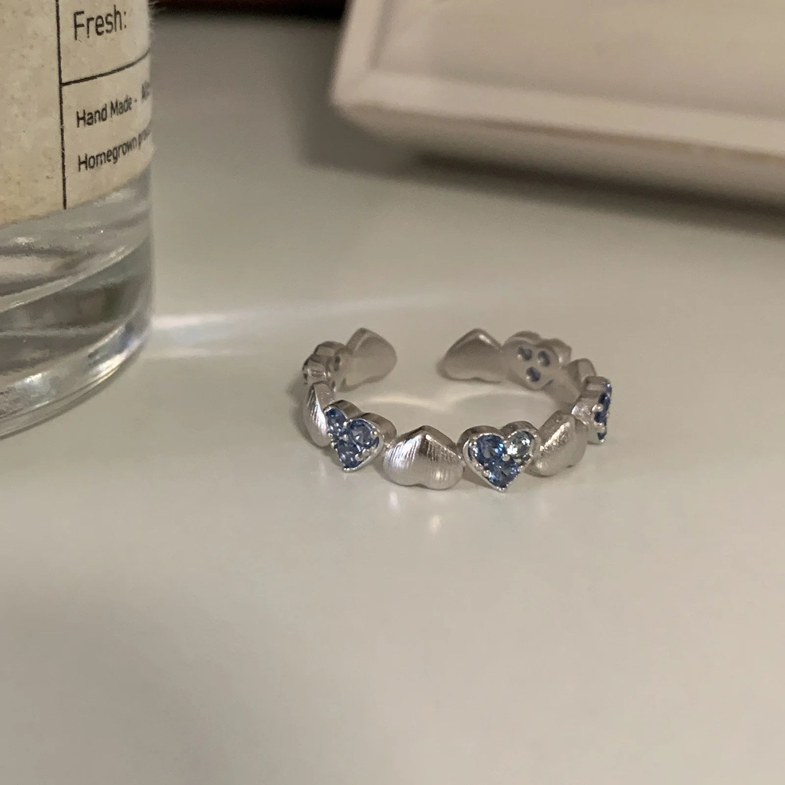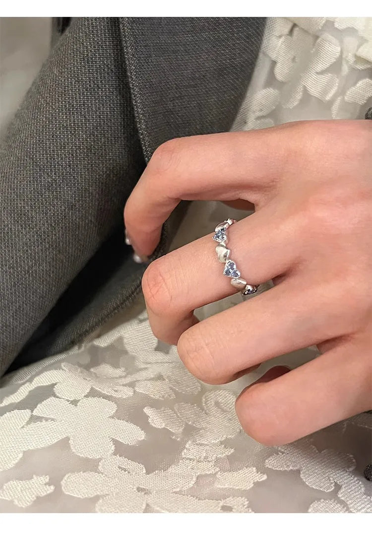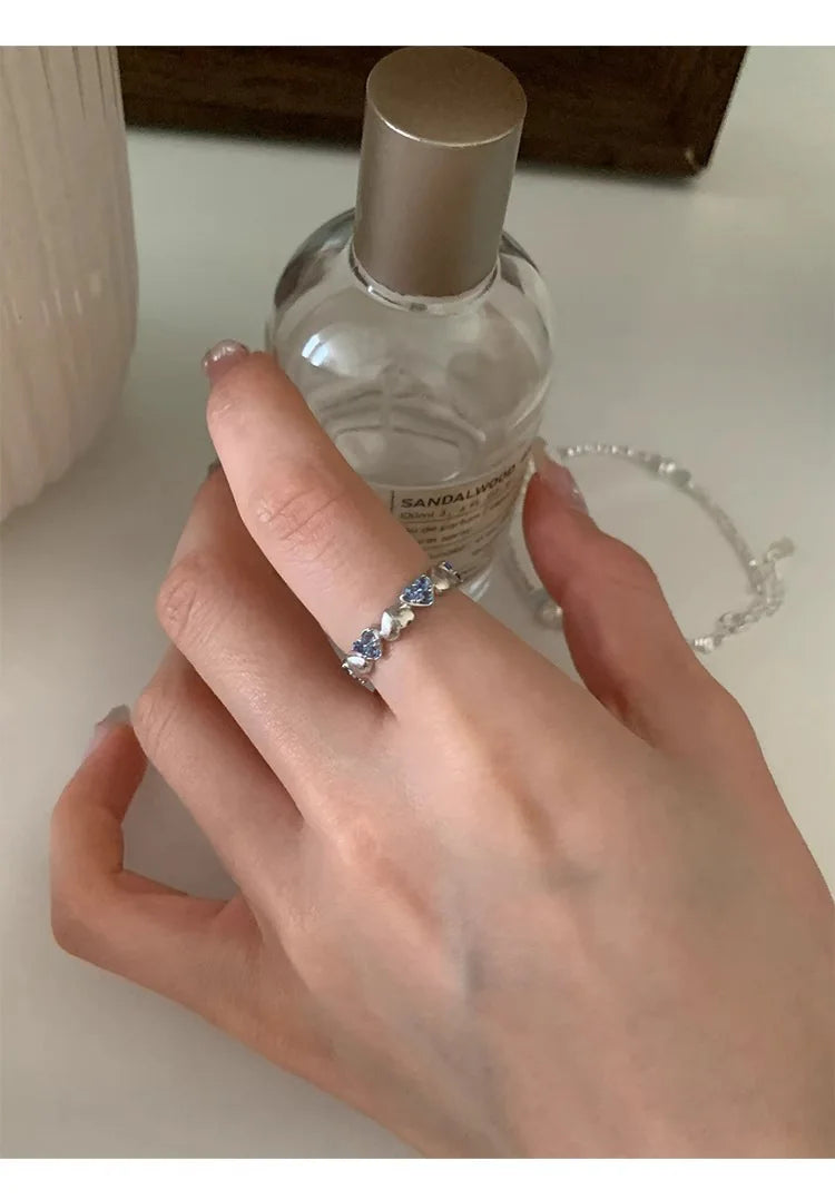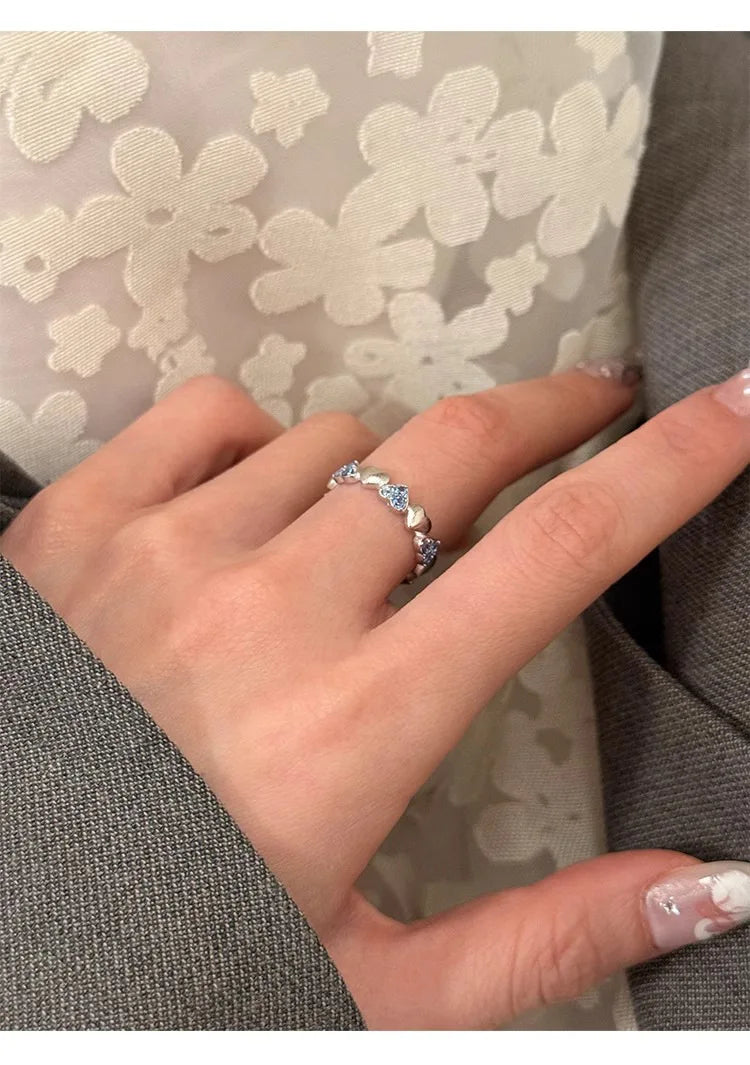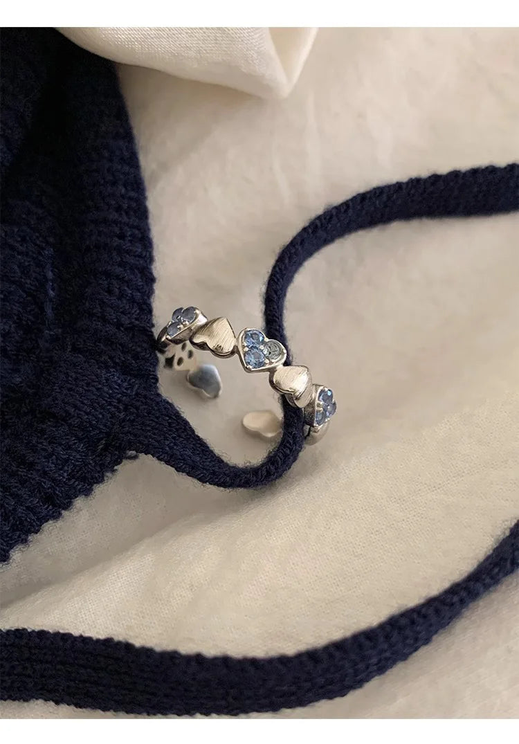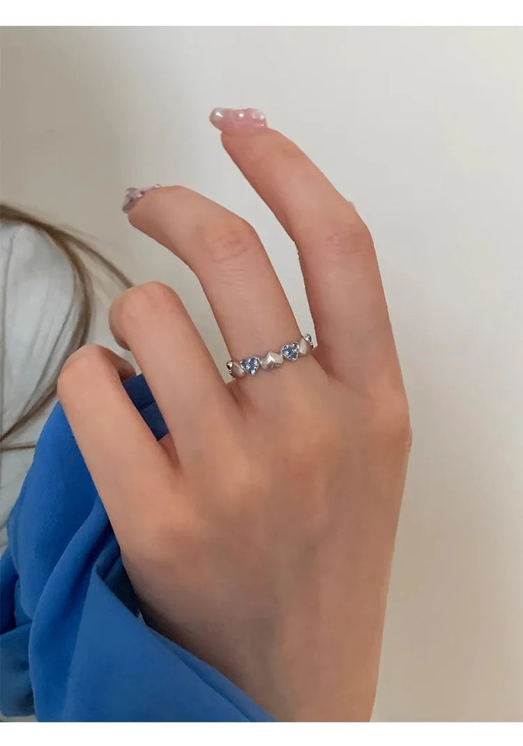 Vintage Silver with Blue Zirconia Ring Fashion Simple Heart Open End Ring for Women Gift