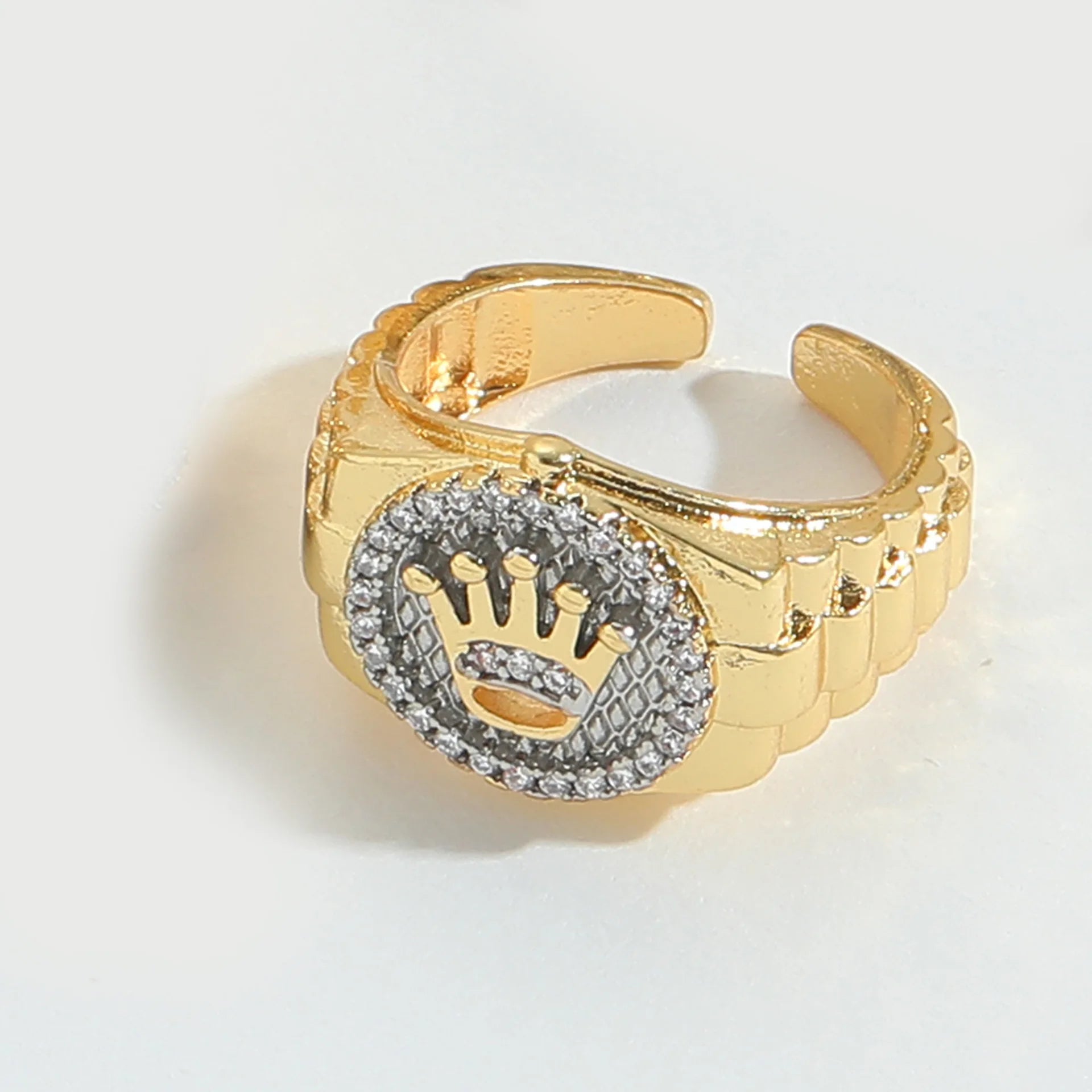 Chic Copper Gold Plated Crown Design Ring With Cubic Zirconia for Women