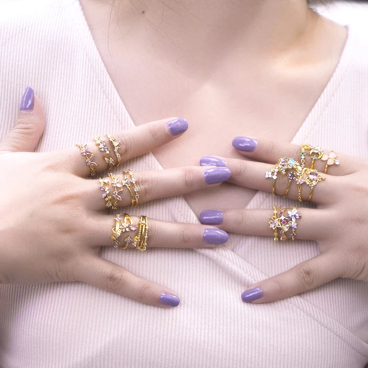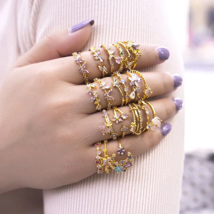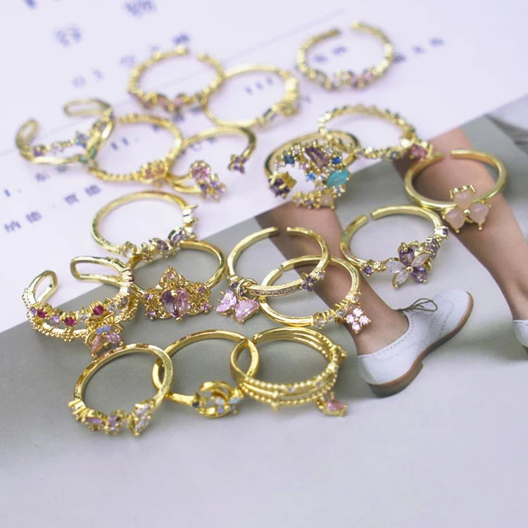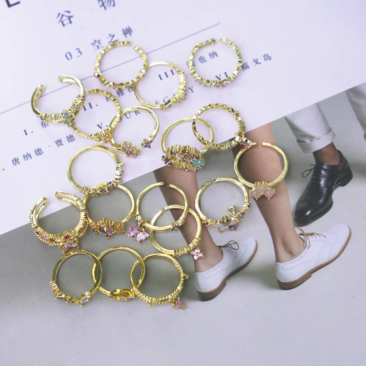 Adjustable Open Ring for Women Minimalist Zircon Butterfly & Leaf Rings Boho Stackable Jewelry for Engagement