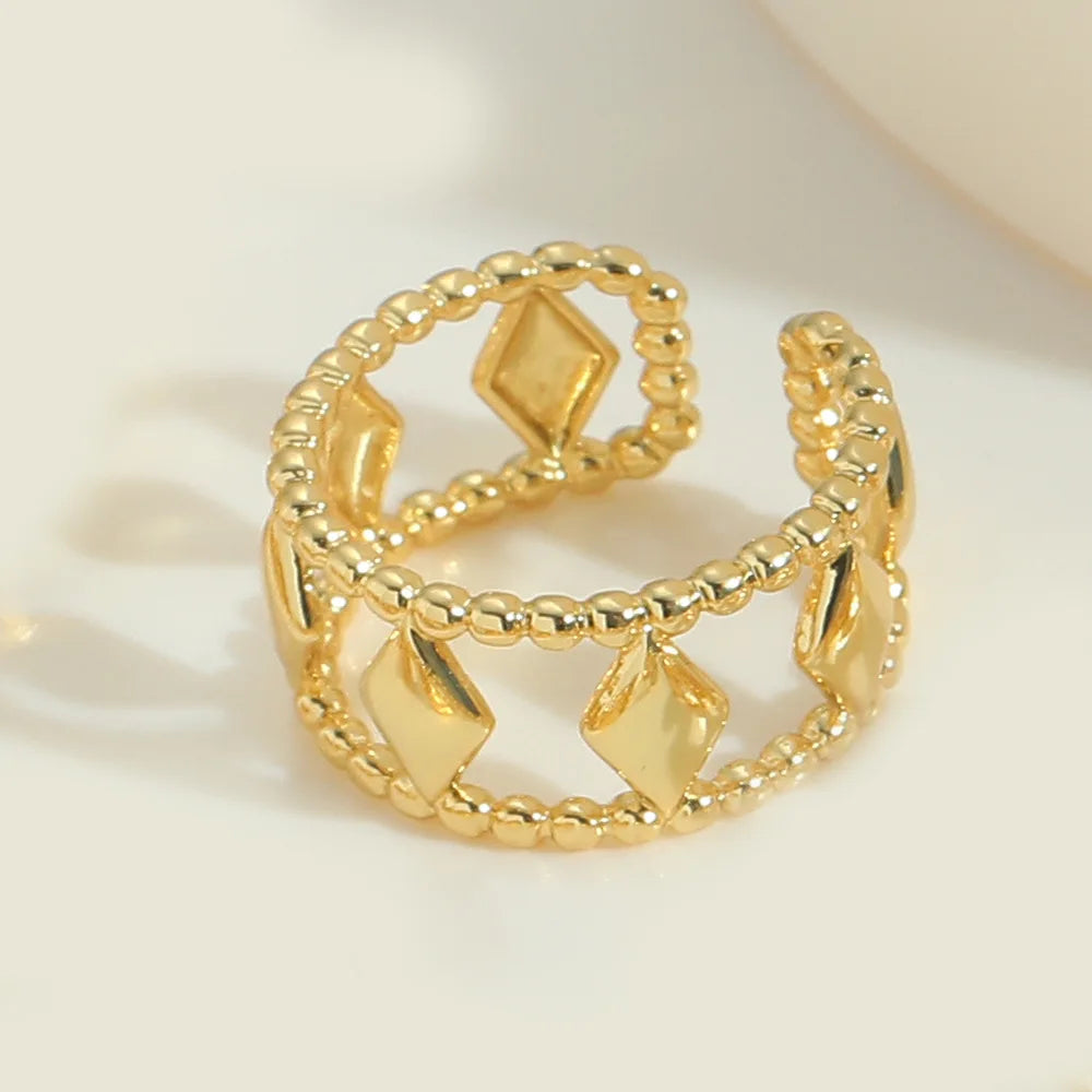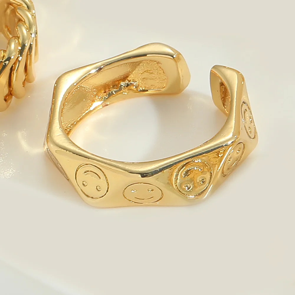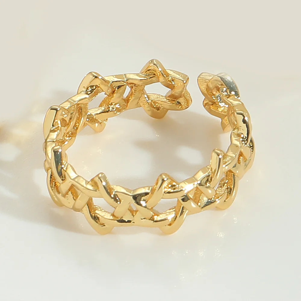Edgy 18K Gold Plated Copper Miami Cuban Chain Punk Style Ring With Adjustable Fit for Women and Girls