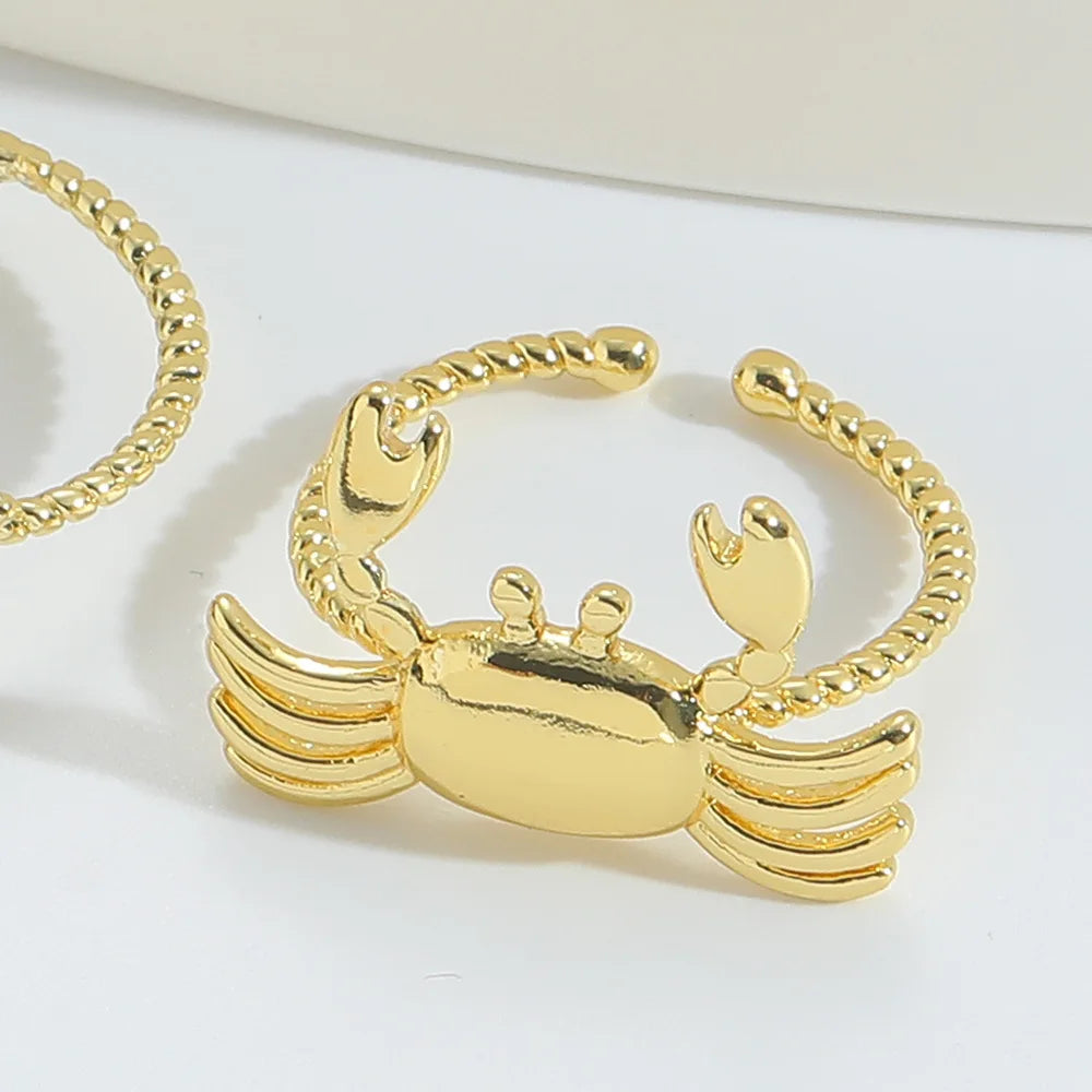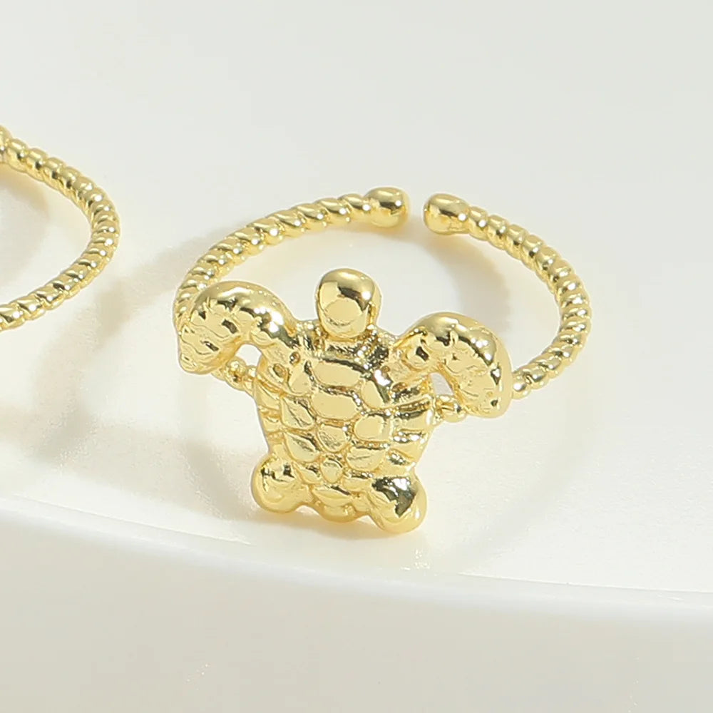 New Style Dainty Copper Sea Turtle Ring Hawaii Style Split Shank Fashionable Engagement Party Ring with Crab Heart Not Fade