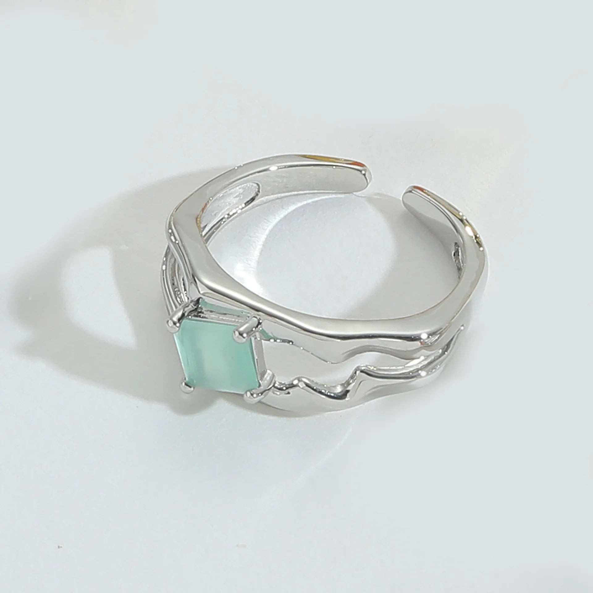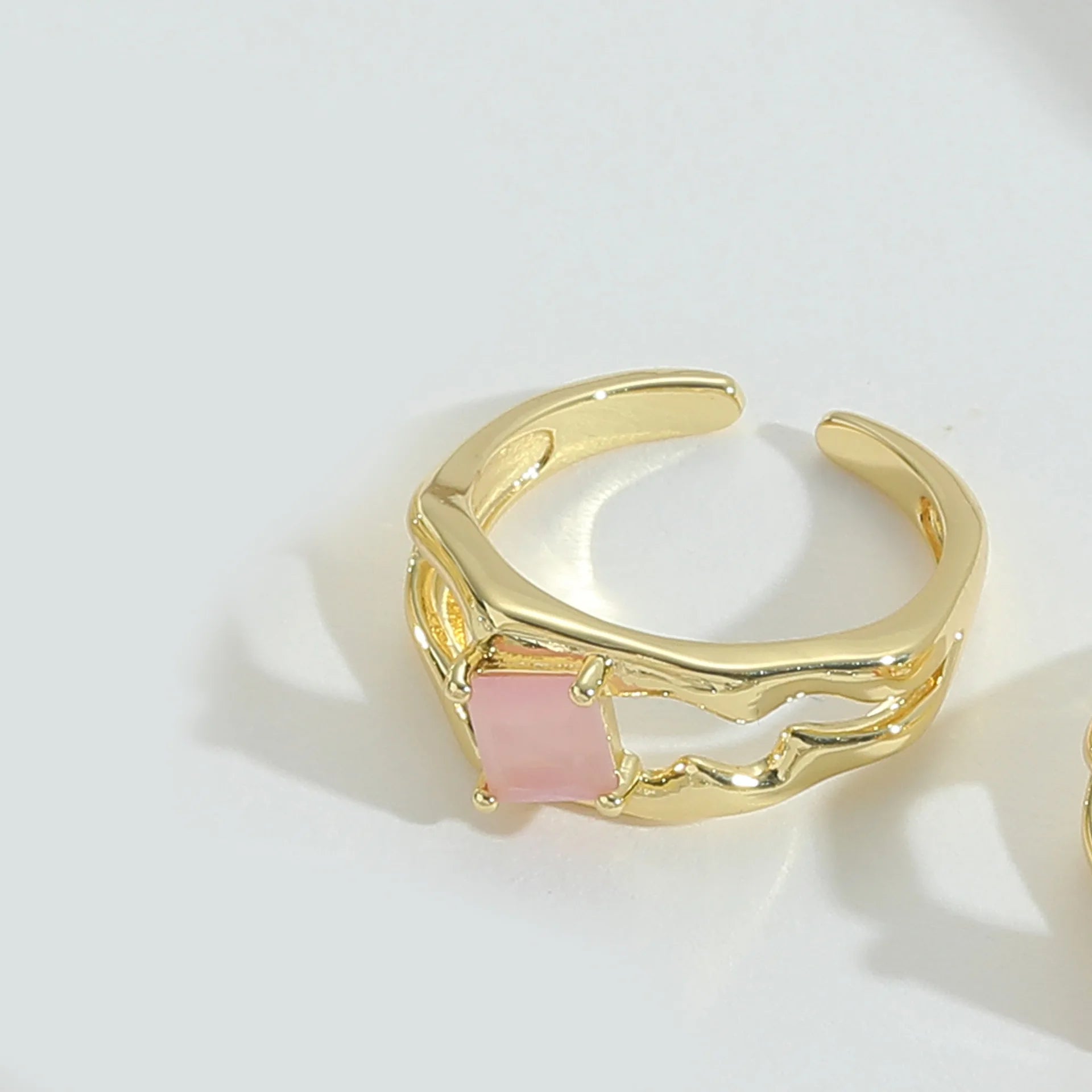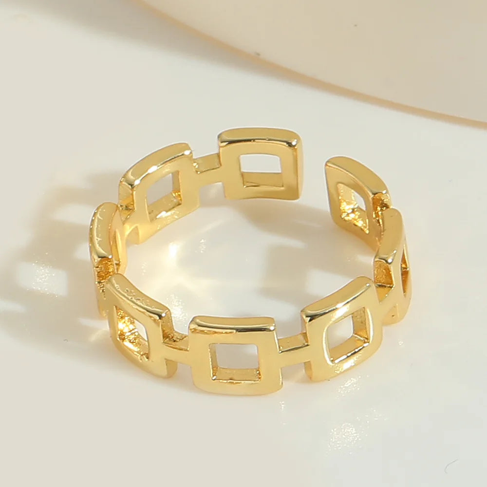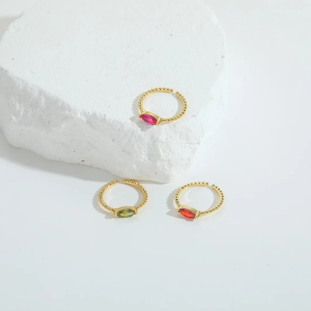 Fine Fashion Copper Gold Plated Women Opening Ring Minimalist Style Colourful Square Adjustable Finger Ring